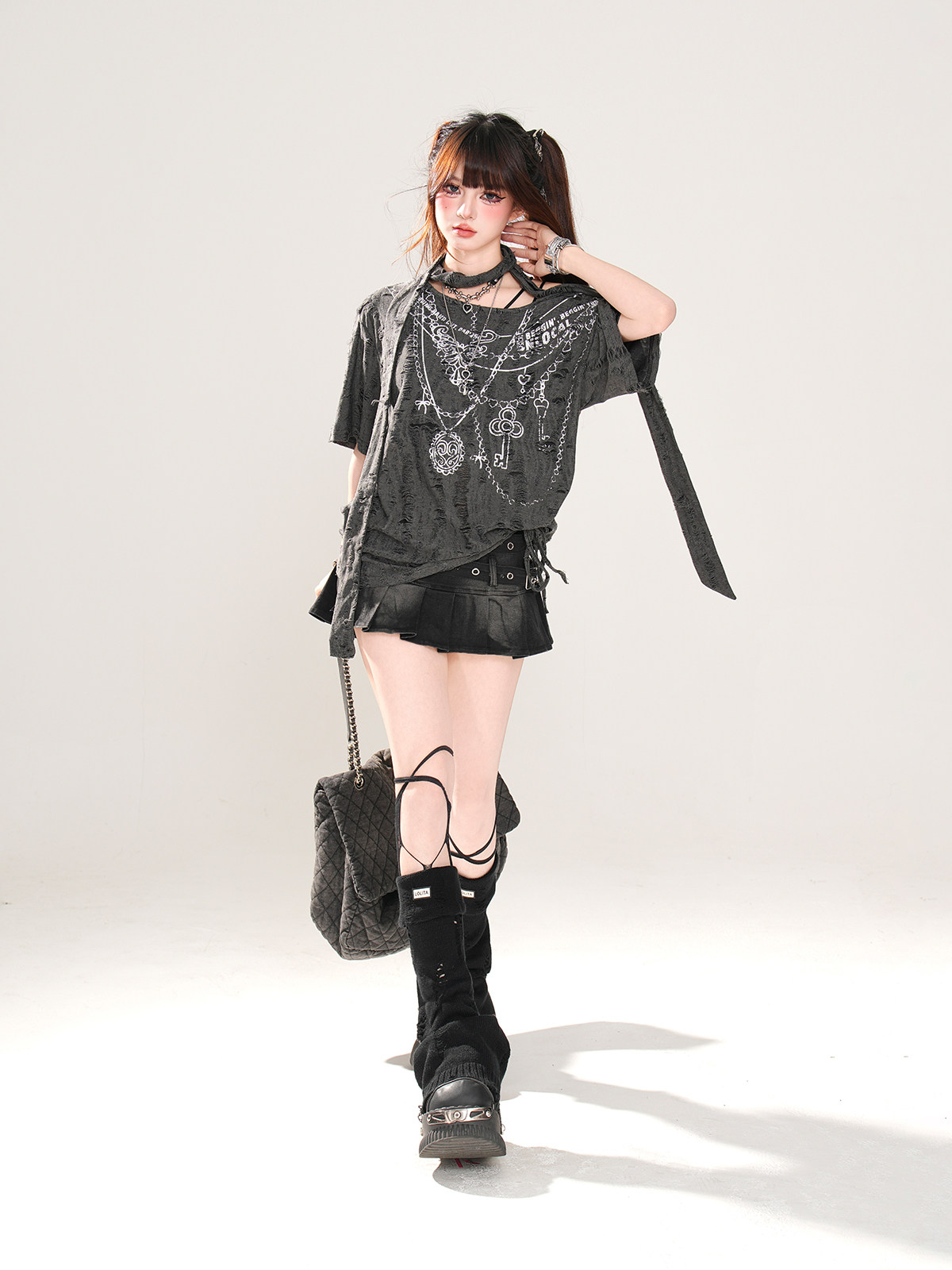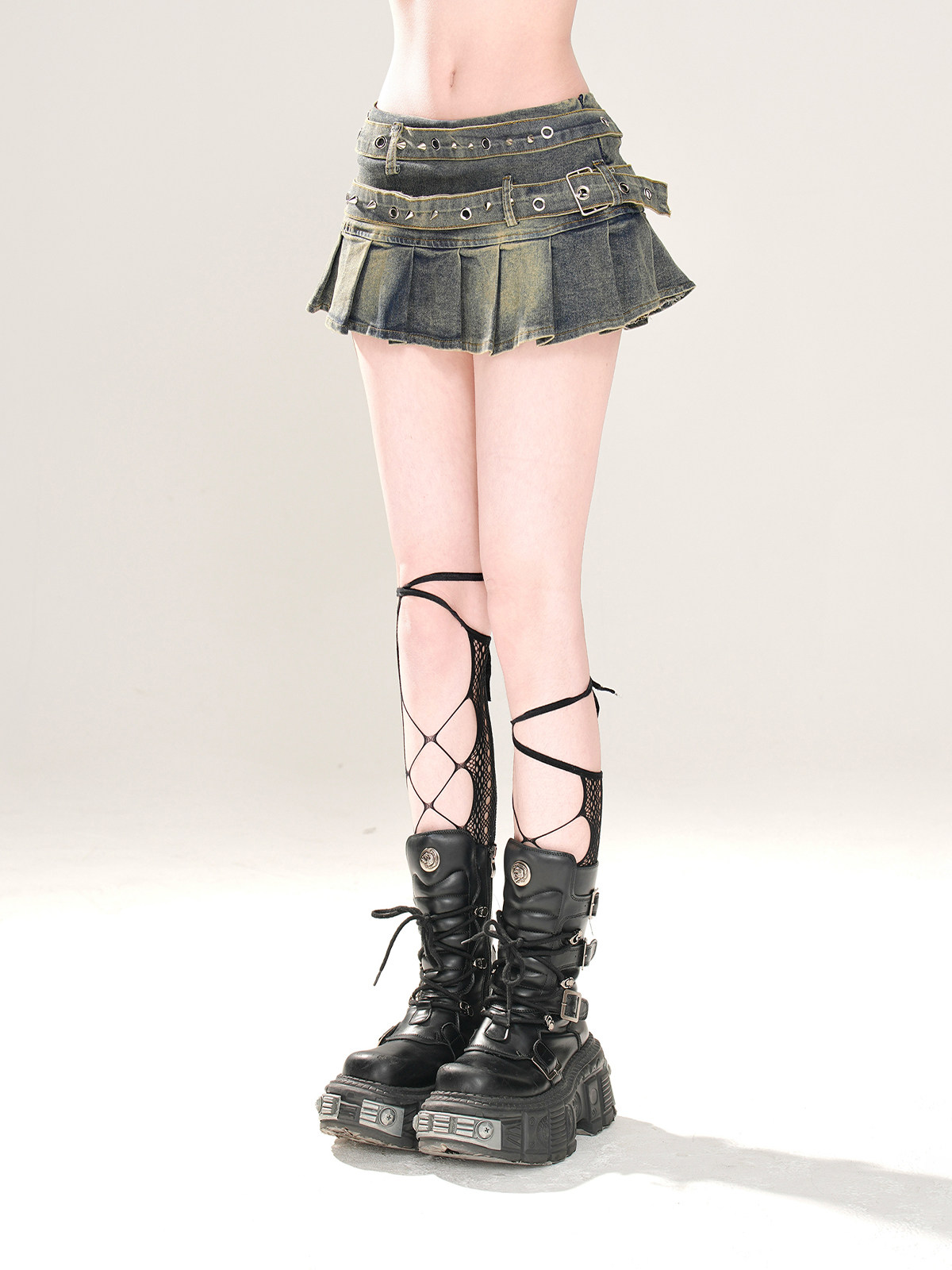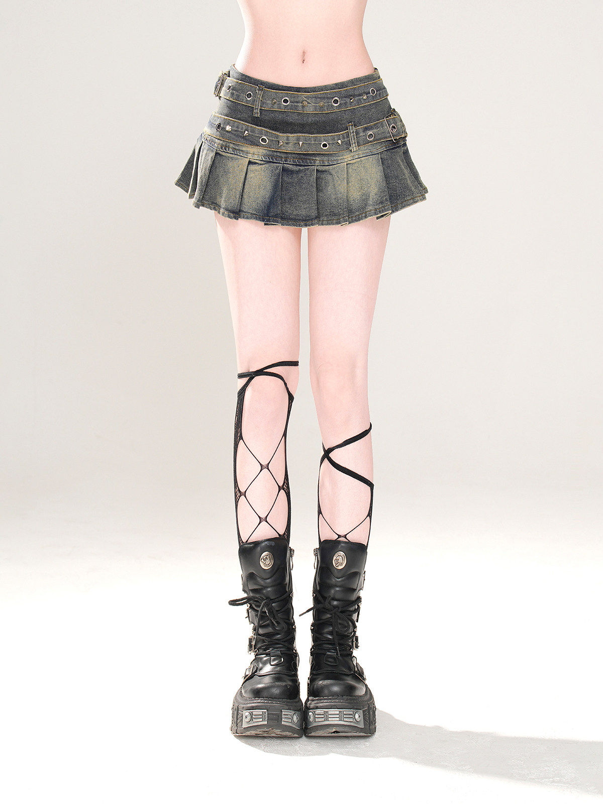 高階比例 美式辣妹牛仔半身裙女夏a字顯瘦百褶裙短裙
