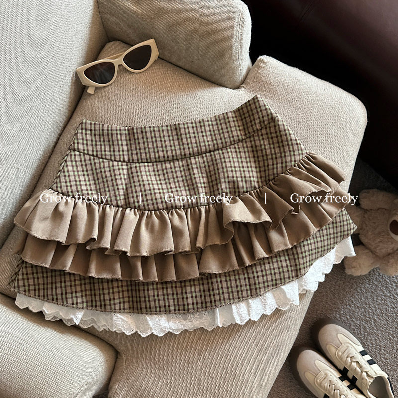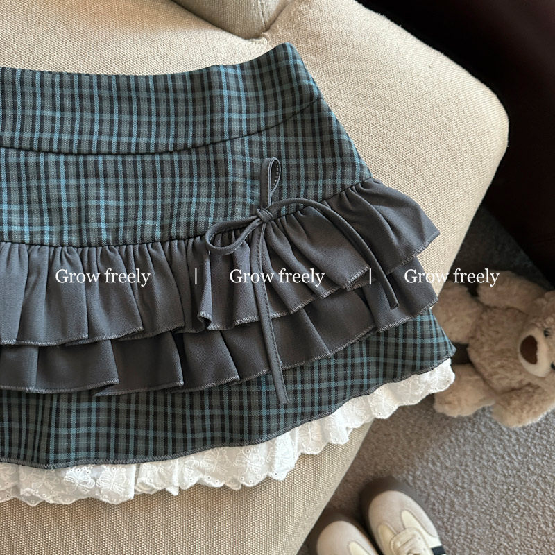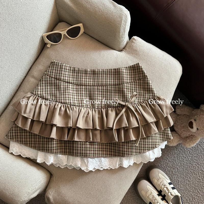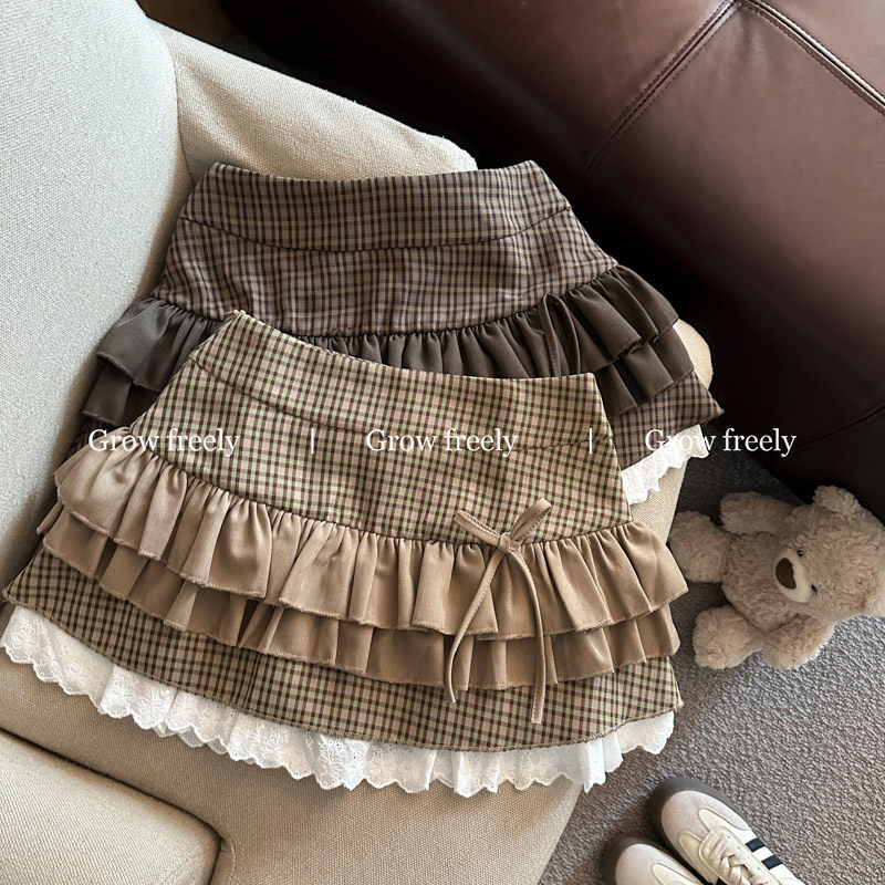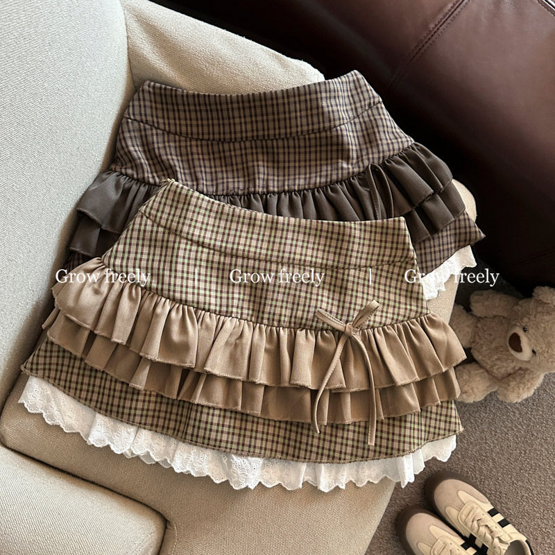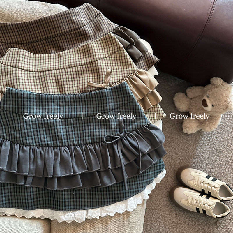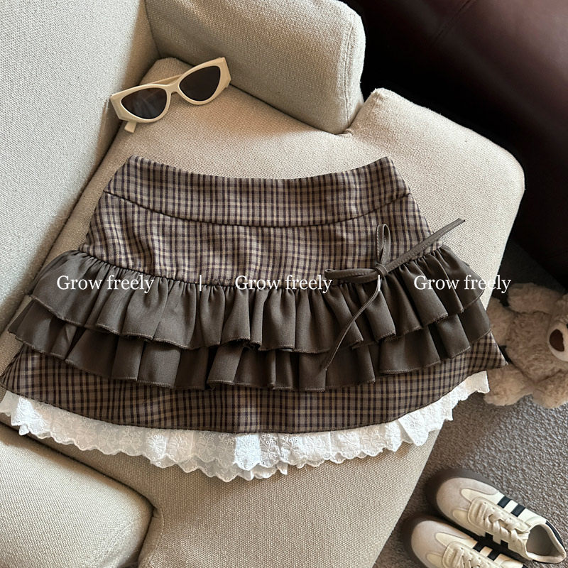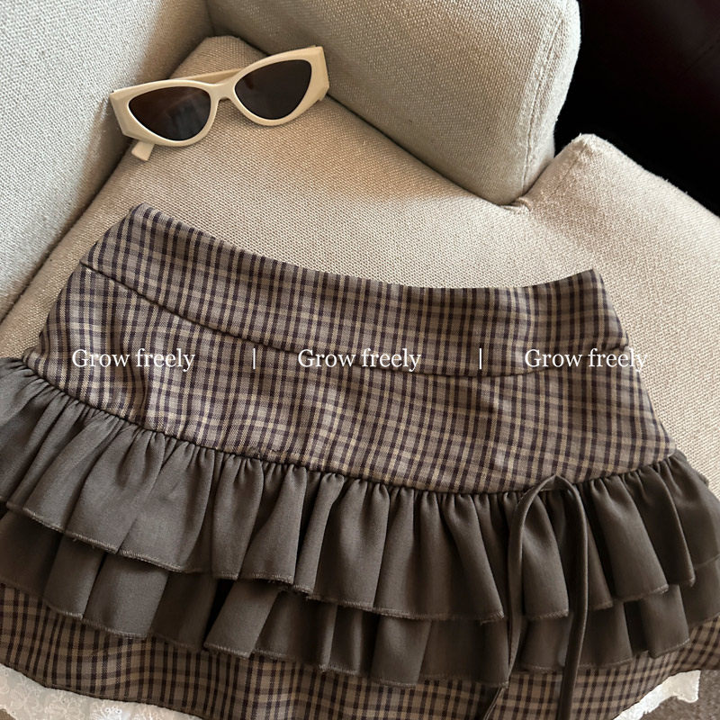 Grow freely 法式復古格紋芭蕾風半身裙女秋季辣妹蓬蓬蛋糕短裙子