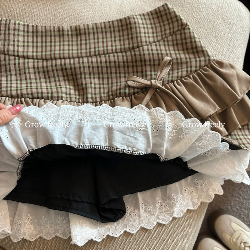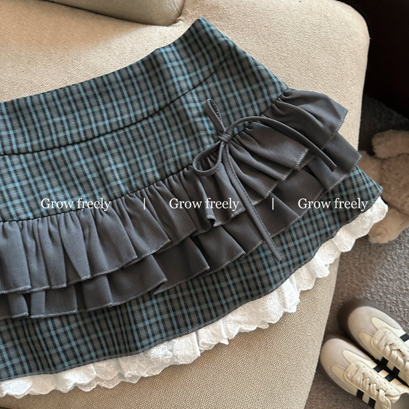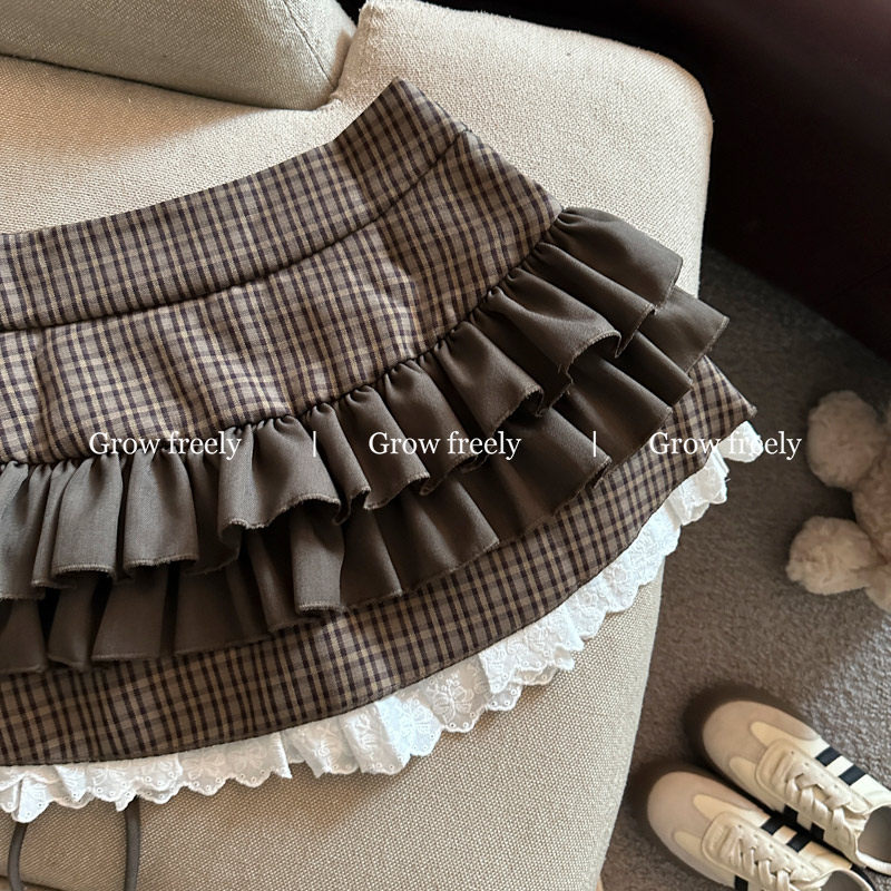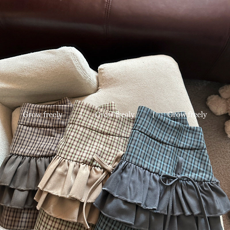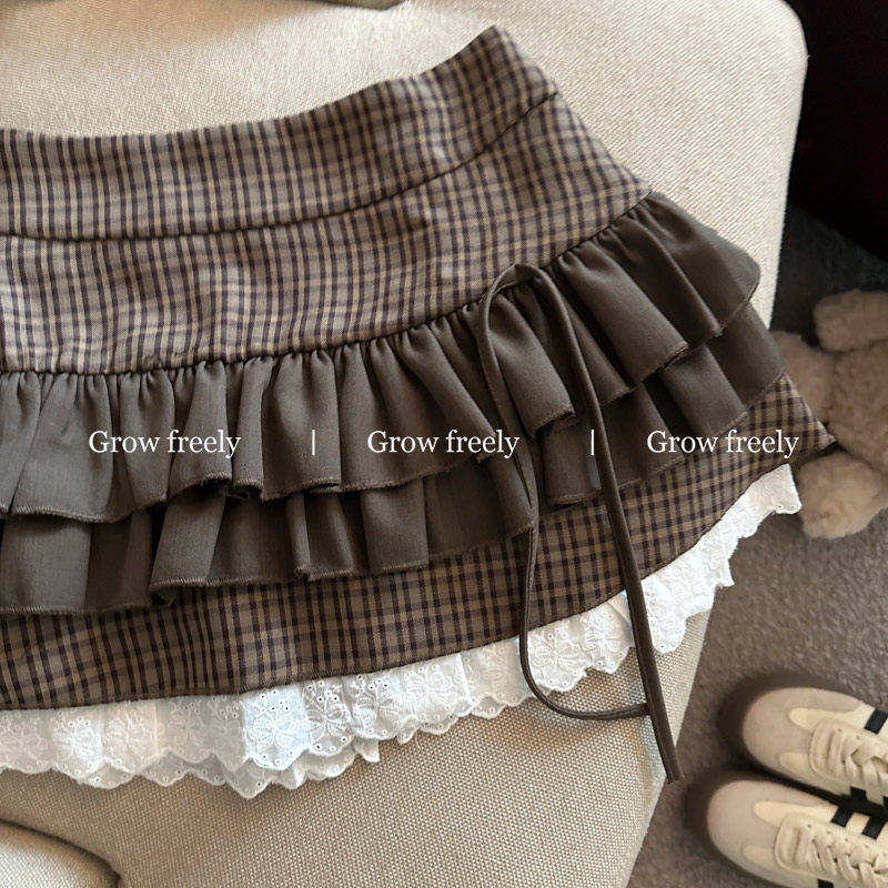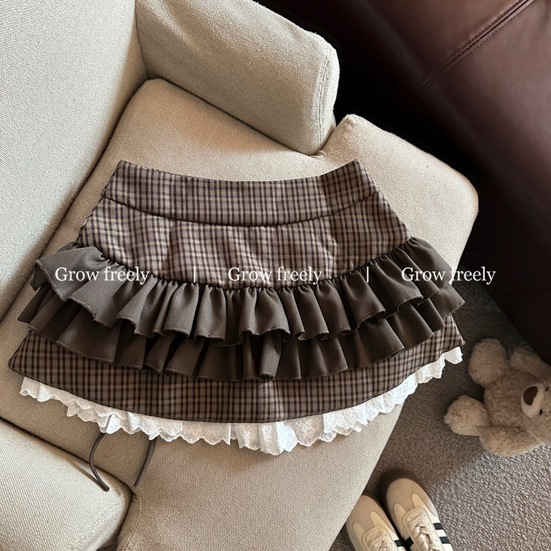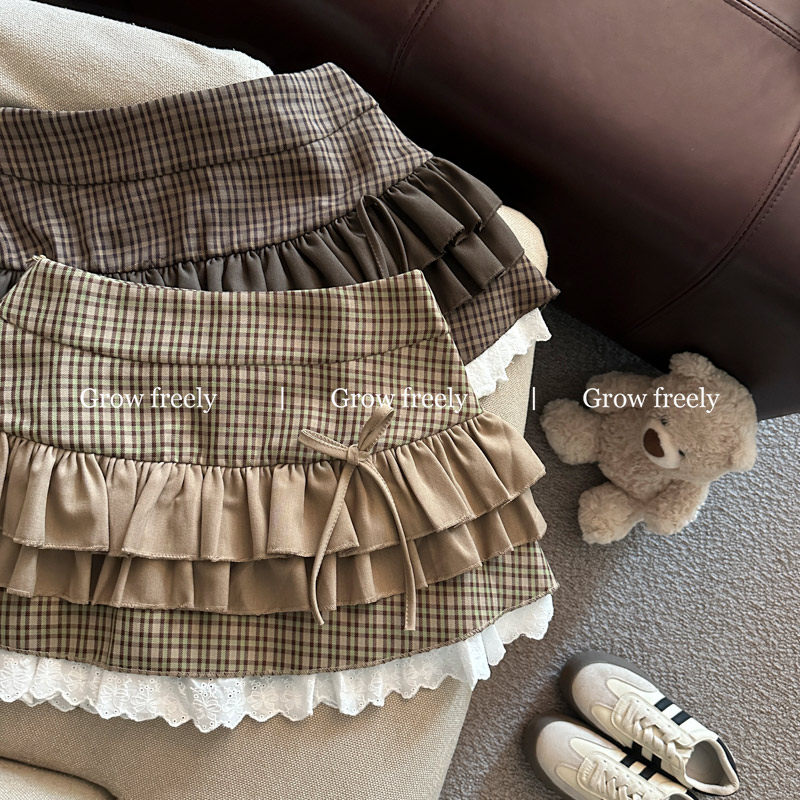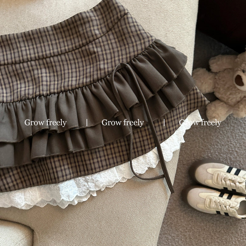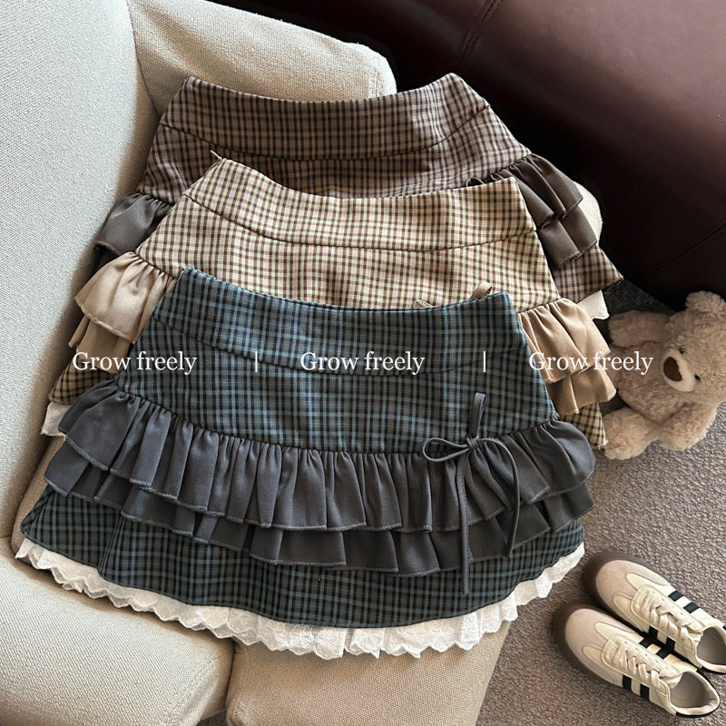 Grow freely 法式復古格紋芭蕾風半身裙女秋季辣妹蓬蓬蛋糕短裙子