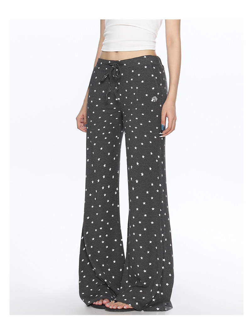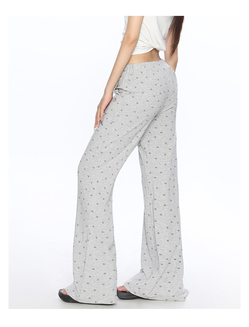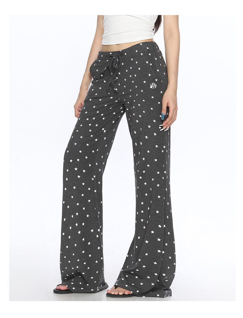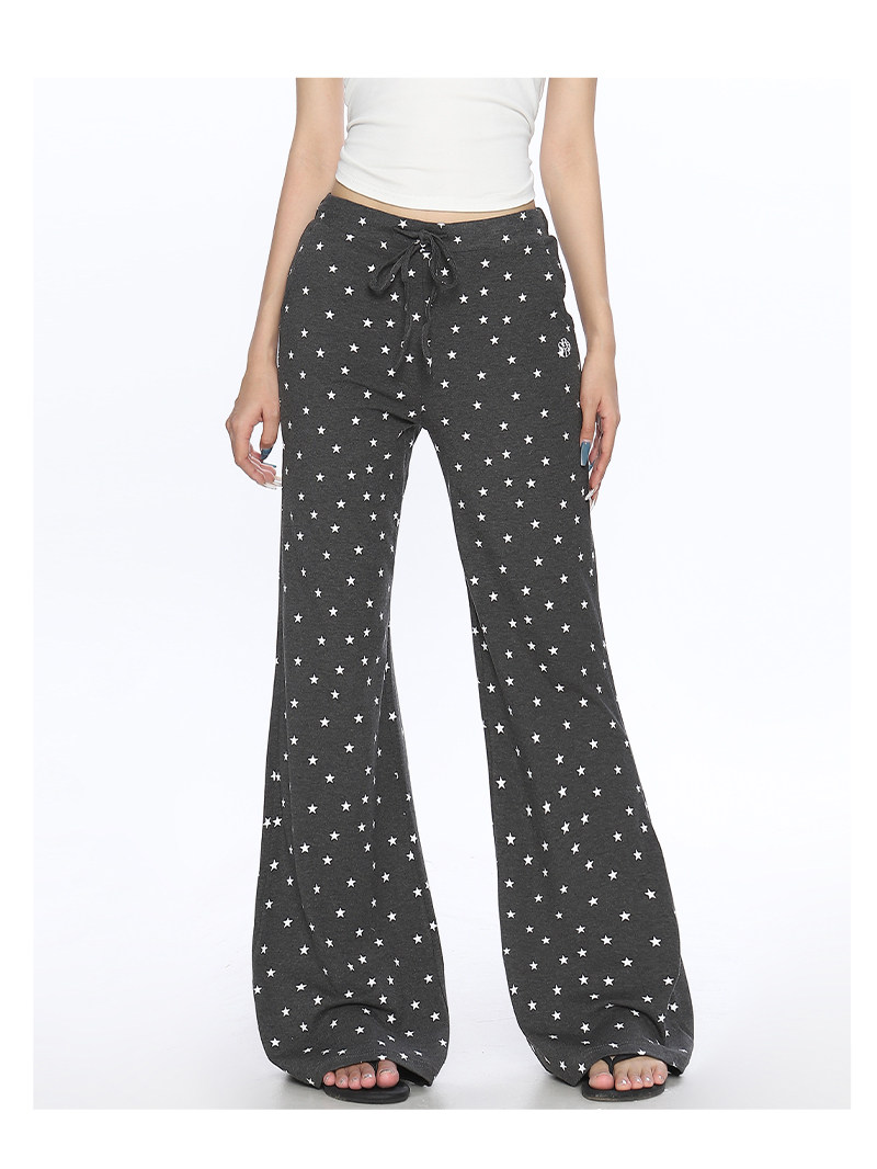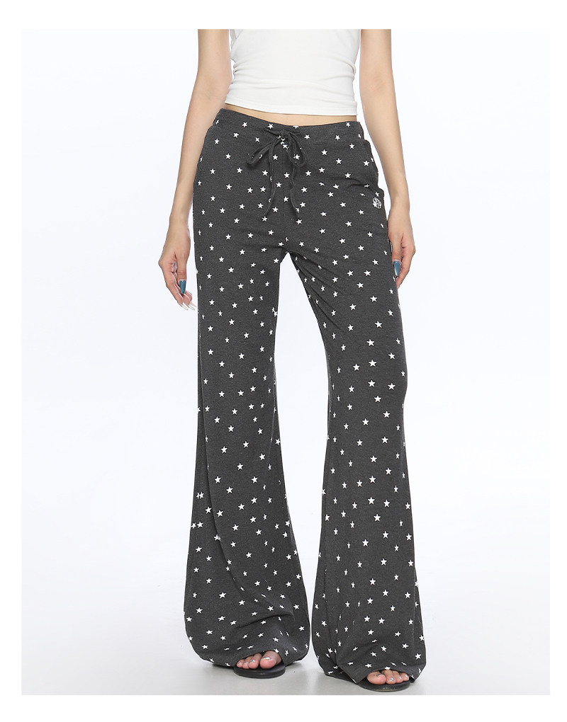 美式星星滿印微喇休閑褲女慵懶風百搭垂感拖地顯瘦長褲ins