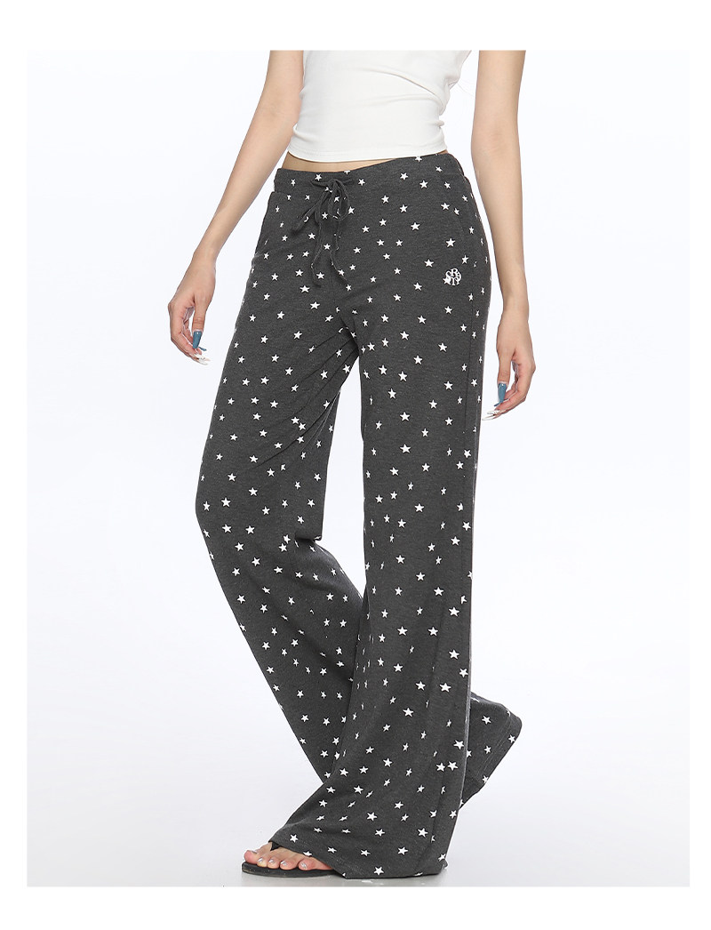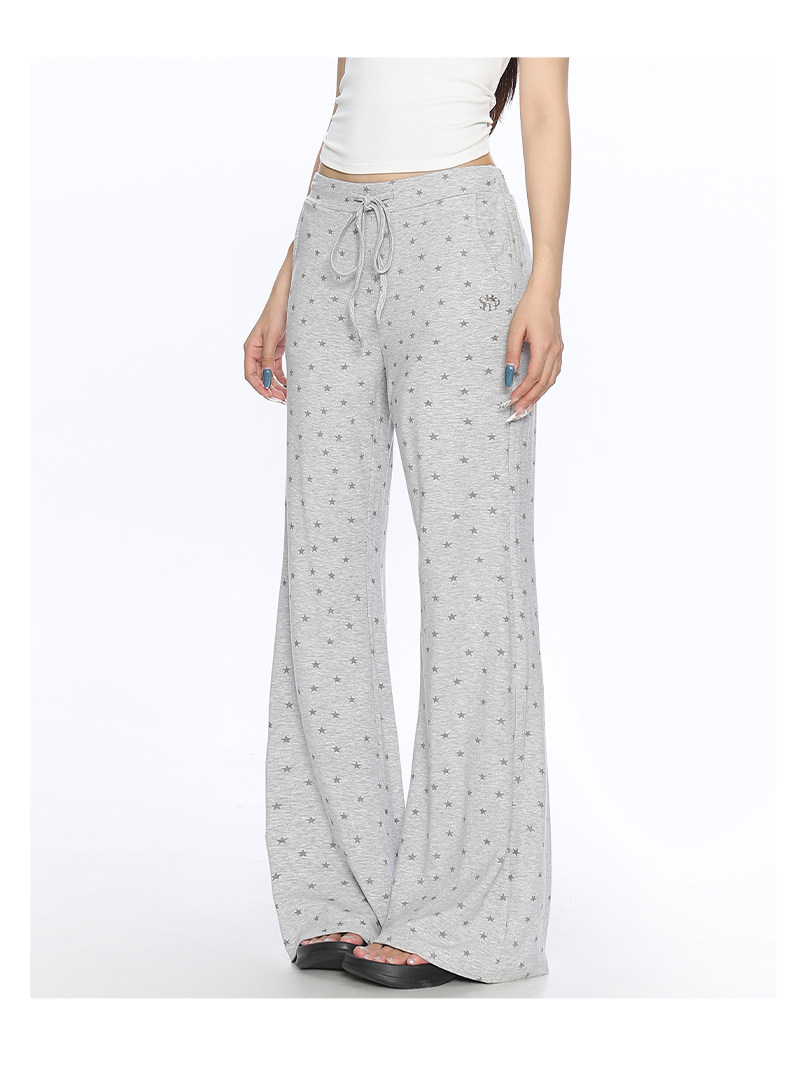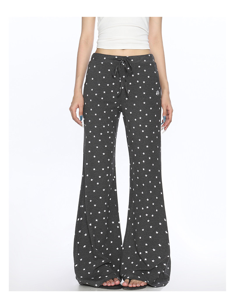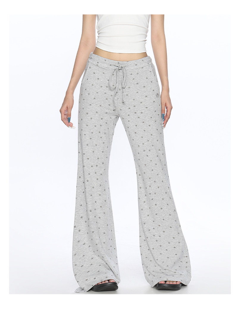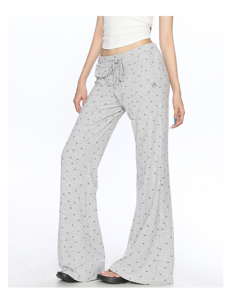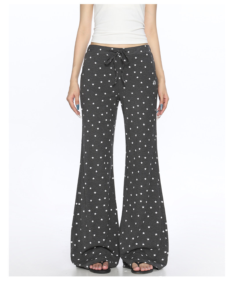 美式星星滿印微喇休閑褲女慵懶風百搭垂感拖地顯瘦長褲ins
