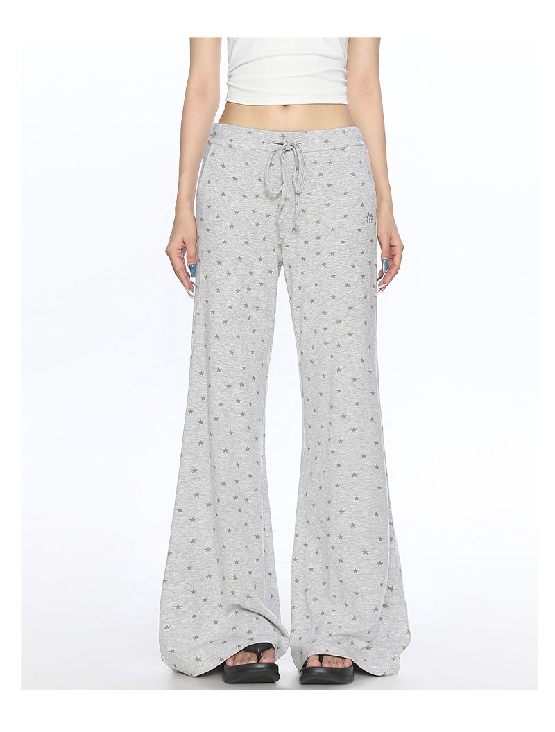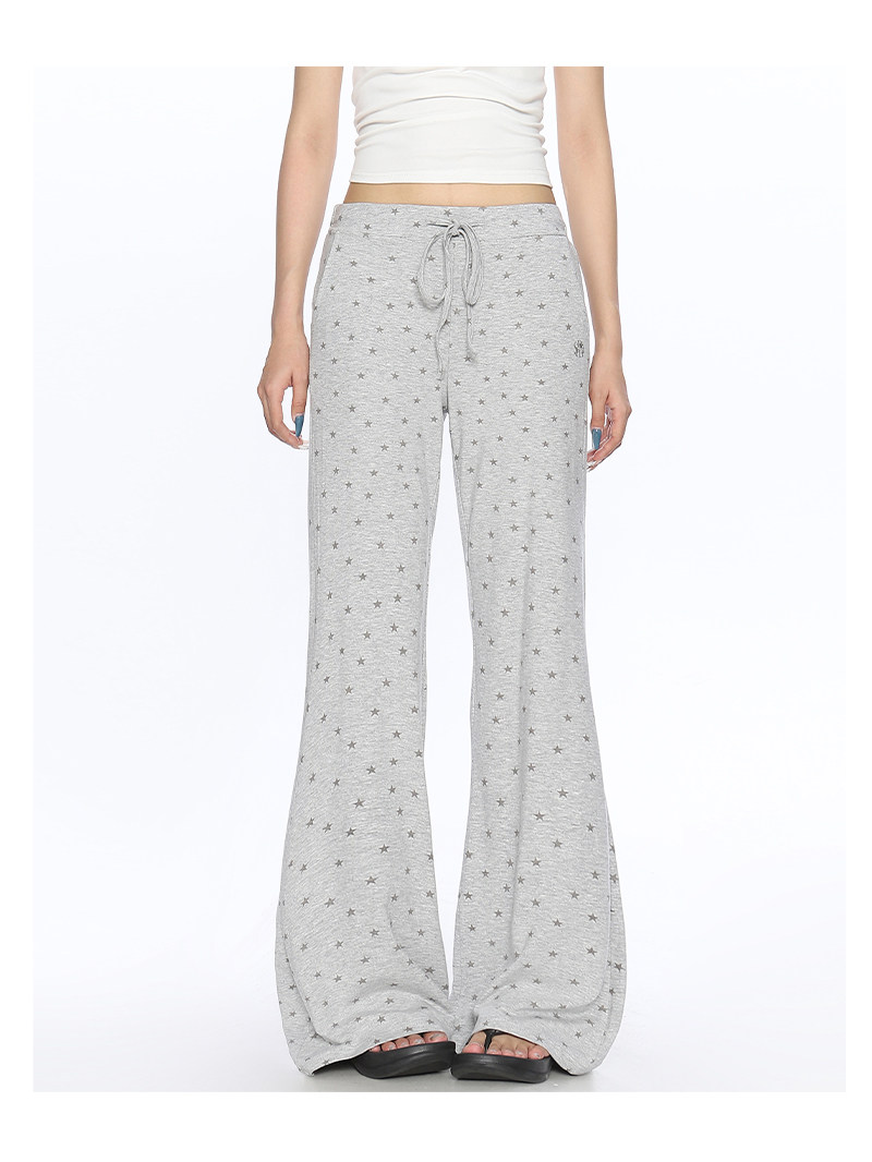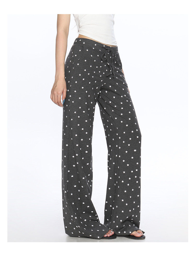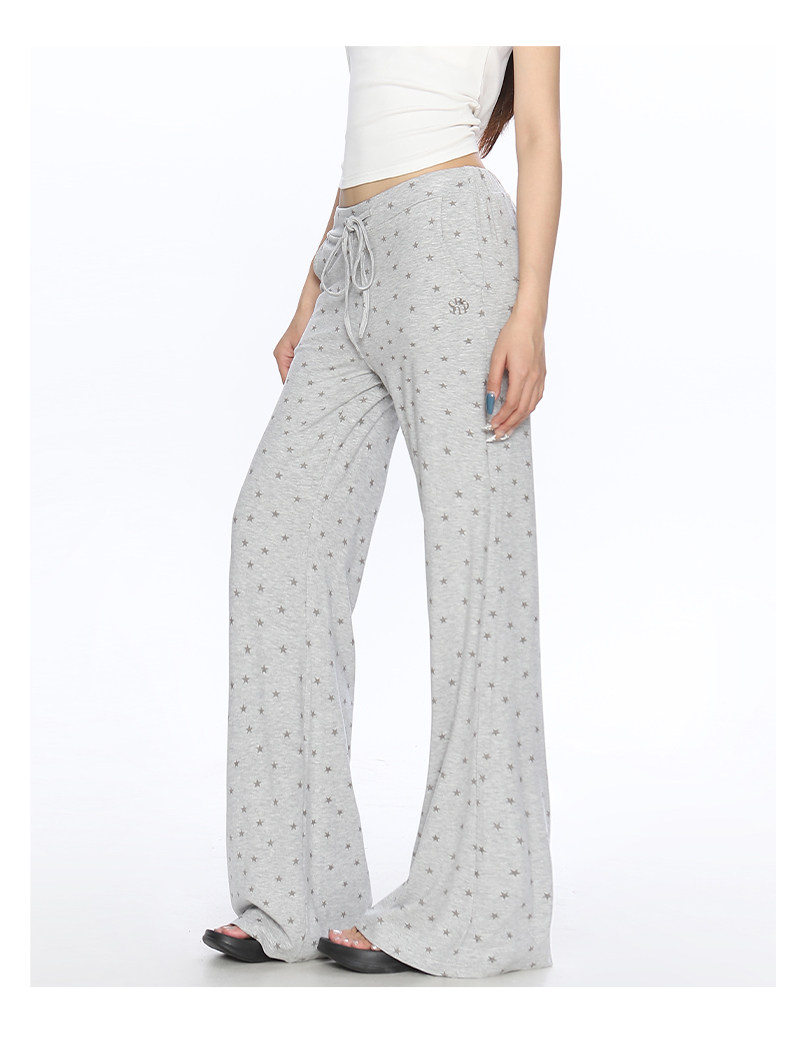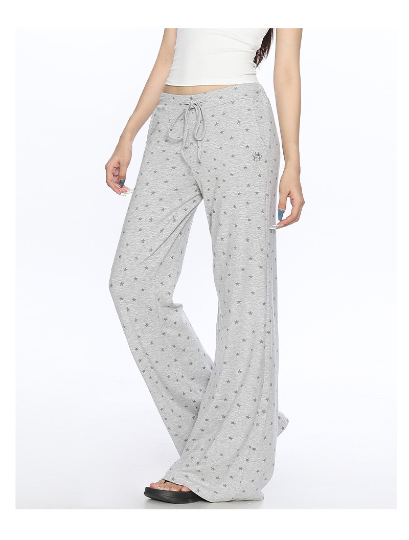 美式星星滿印微喇休閑褲女慵懶風百搭垂感拖地顯瘦長褲ins