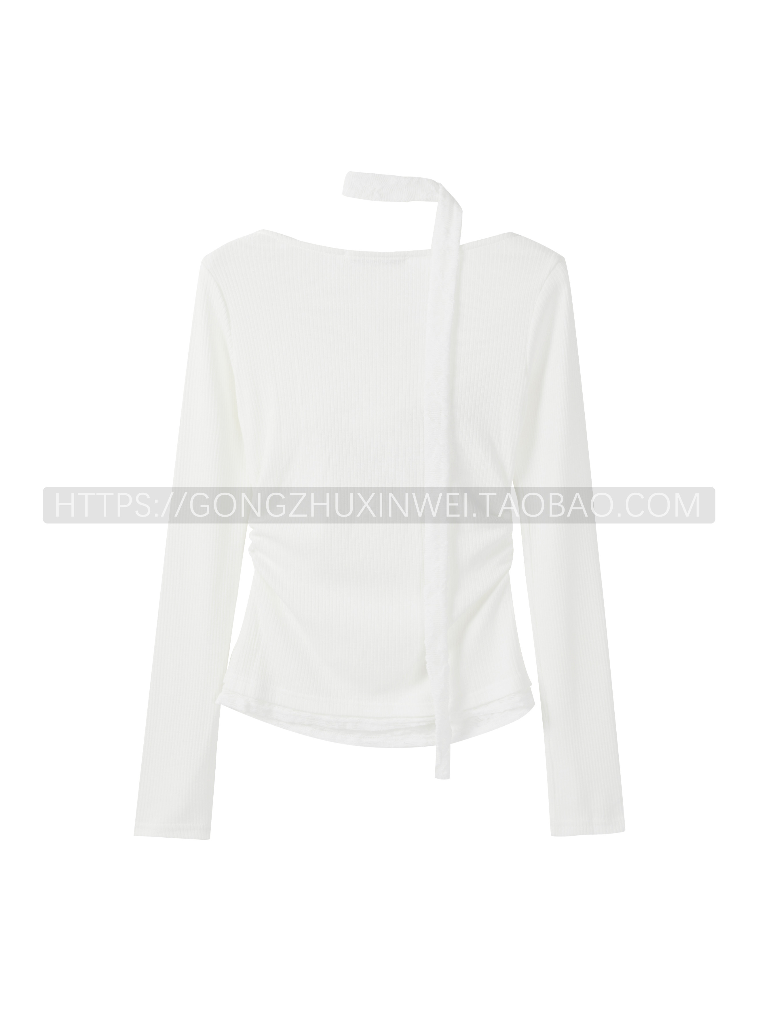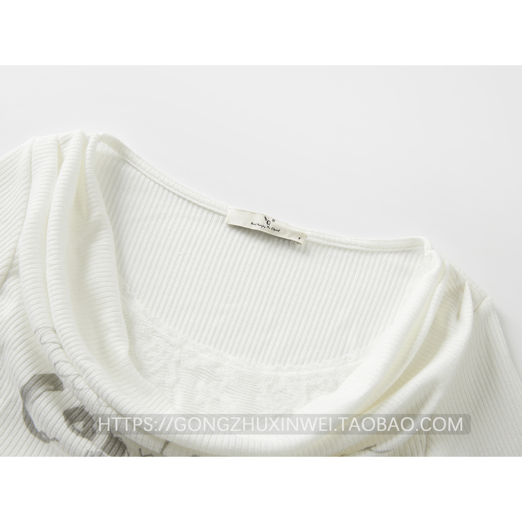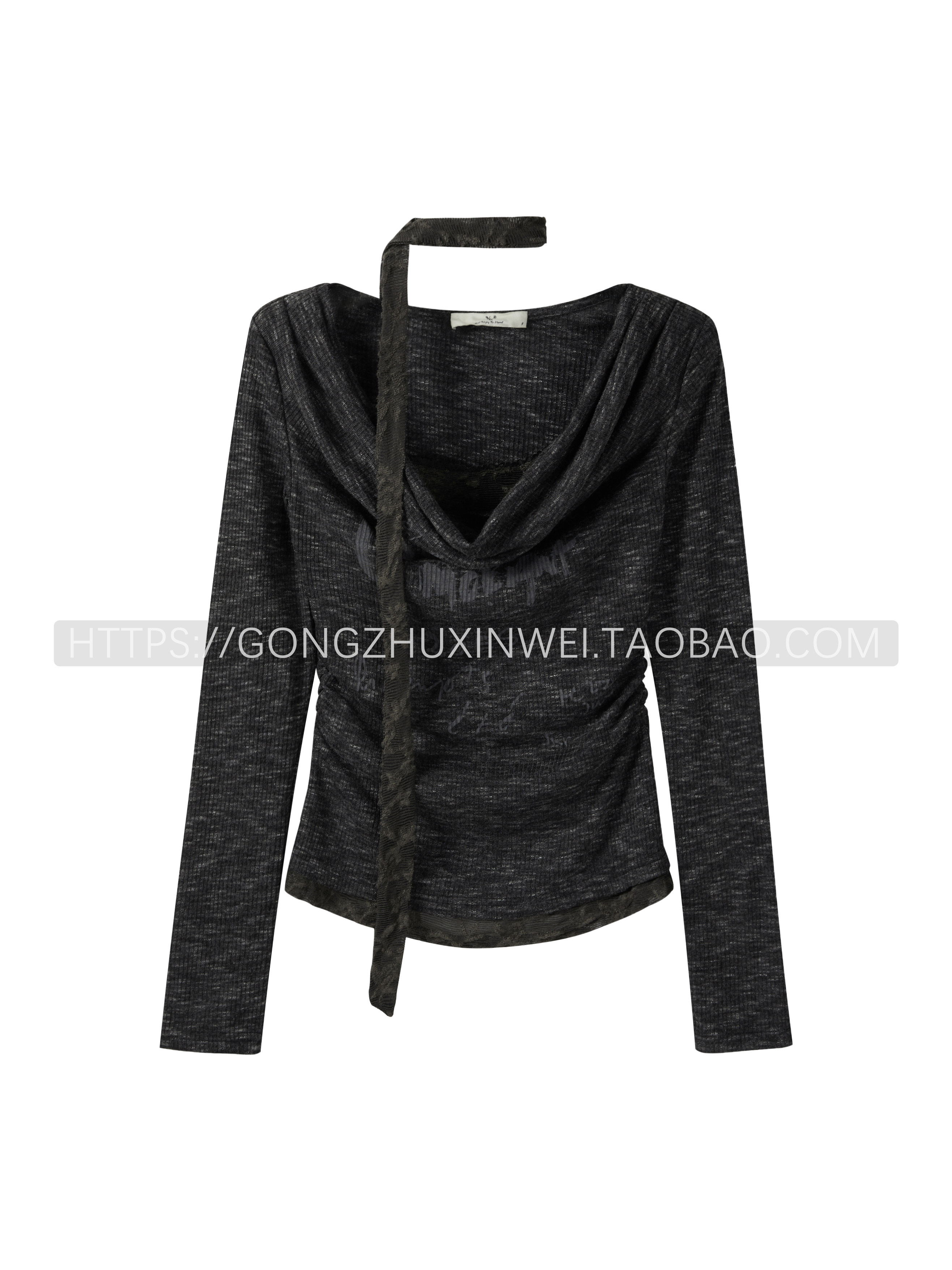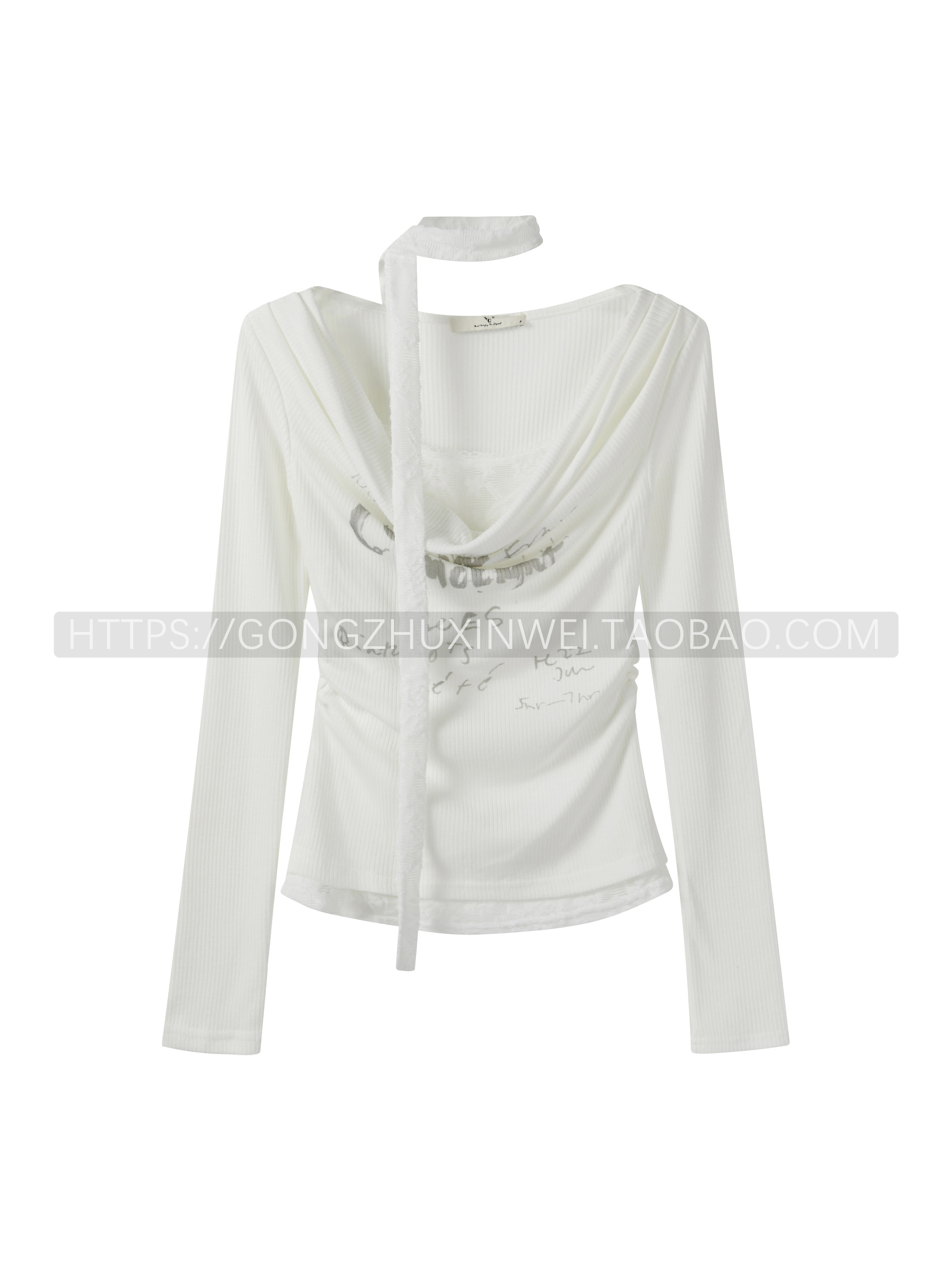假兩件蕾絲拼接字母印花長袖打底衫女秋季新款褶皺內搭掐腰上衣