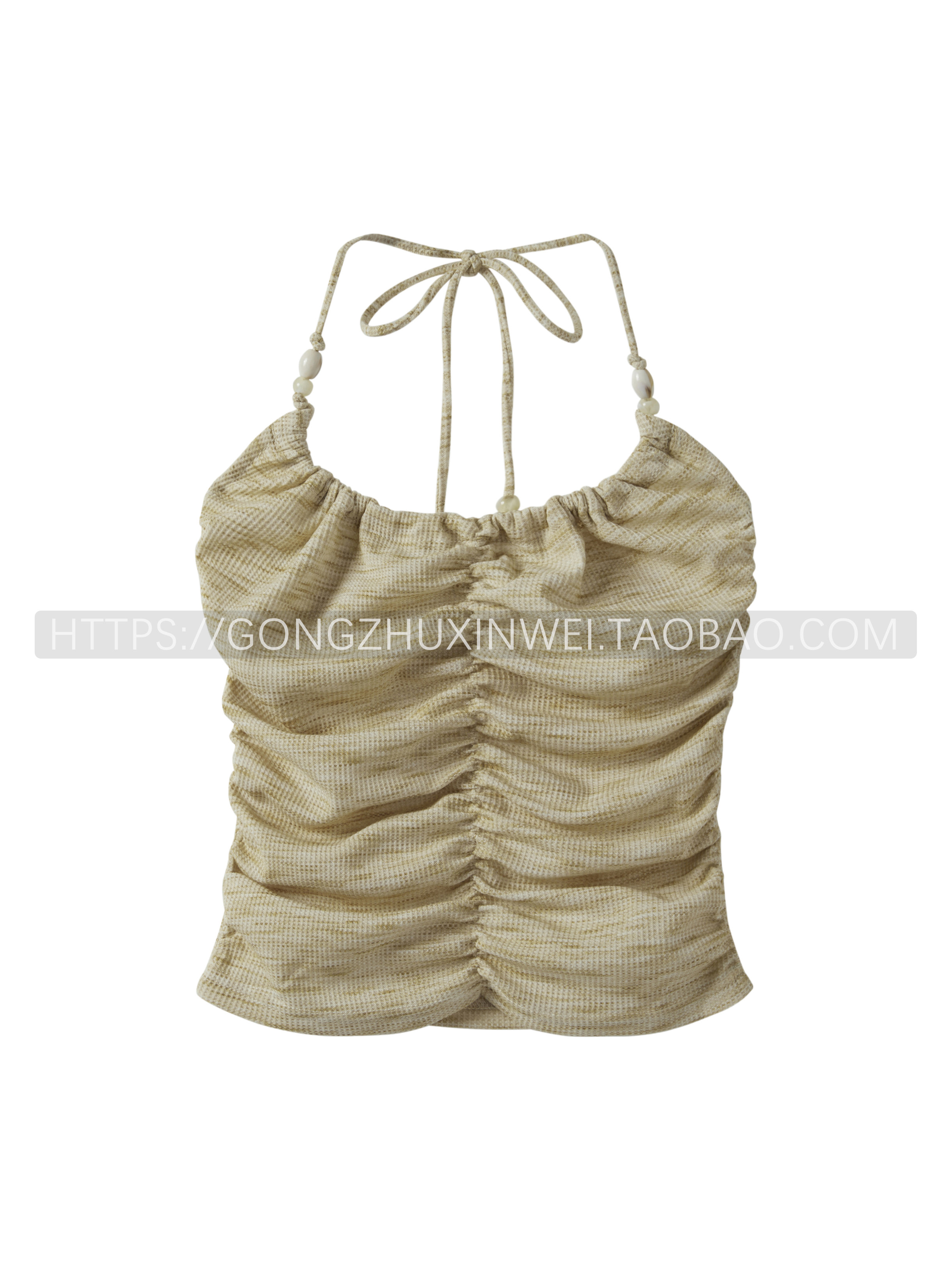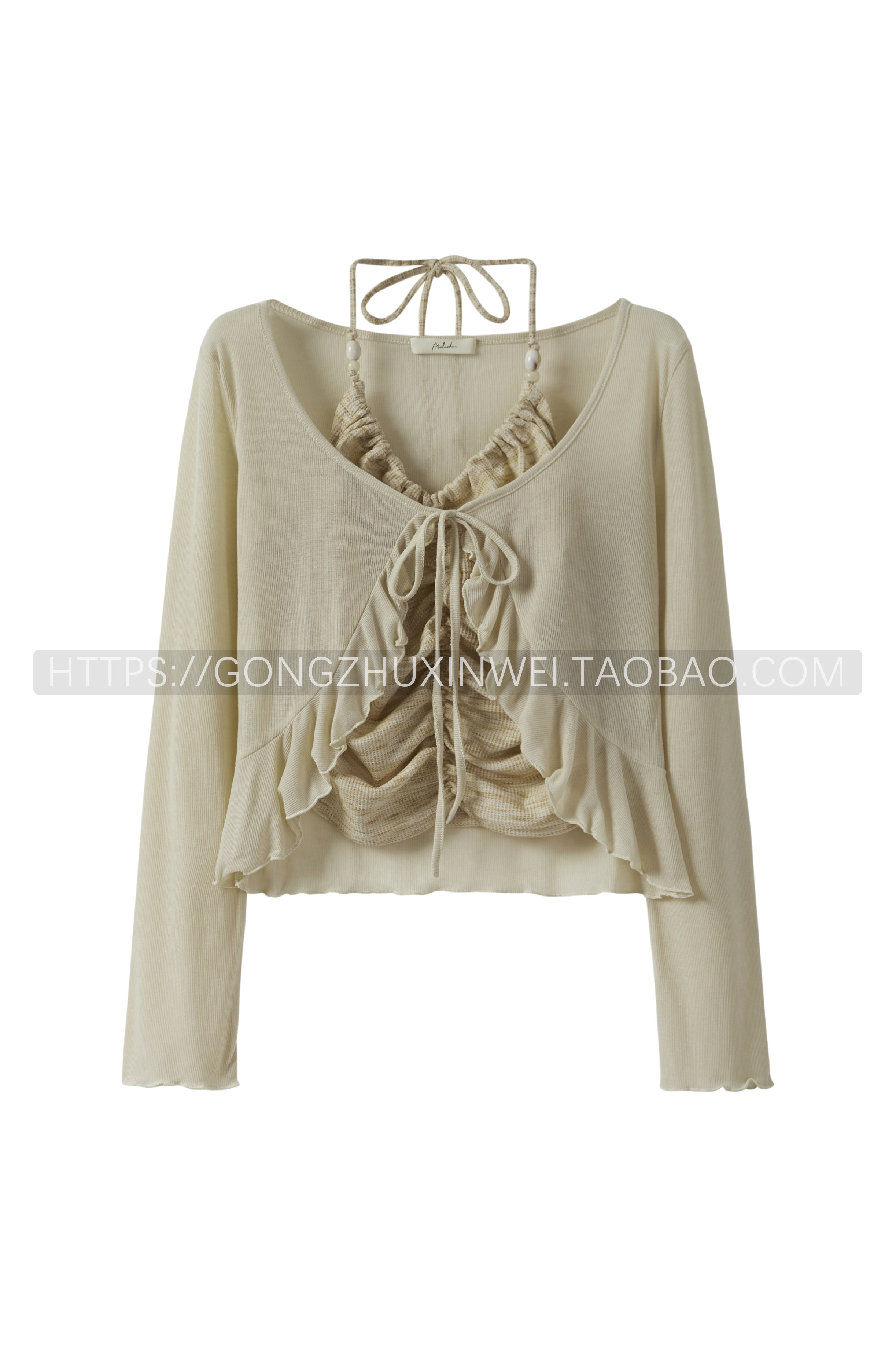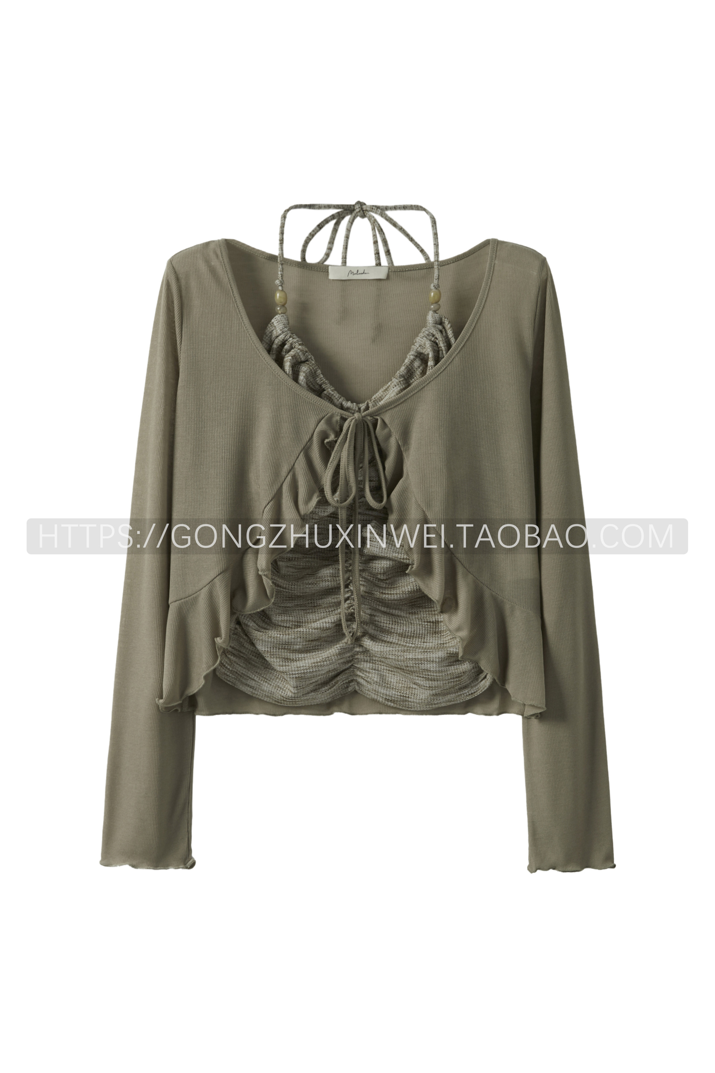 純欲甜辣扎染褶皺系帶掛脖吊帶背心荷葉邊長袖系繩開衫兩件套上衣
