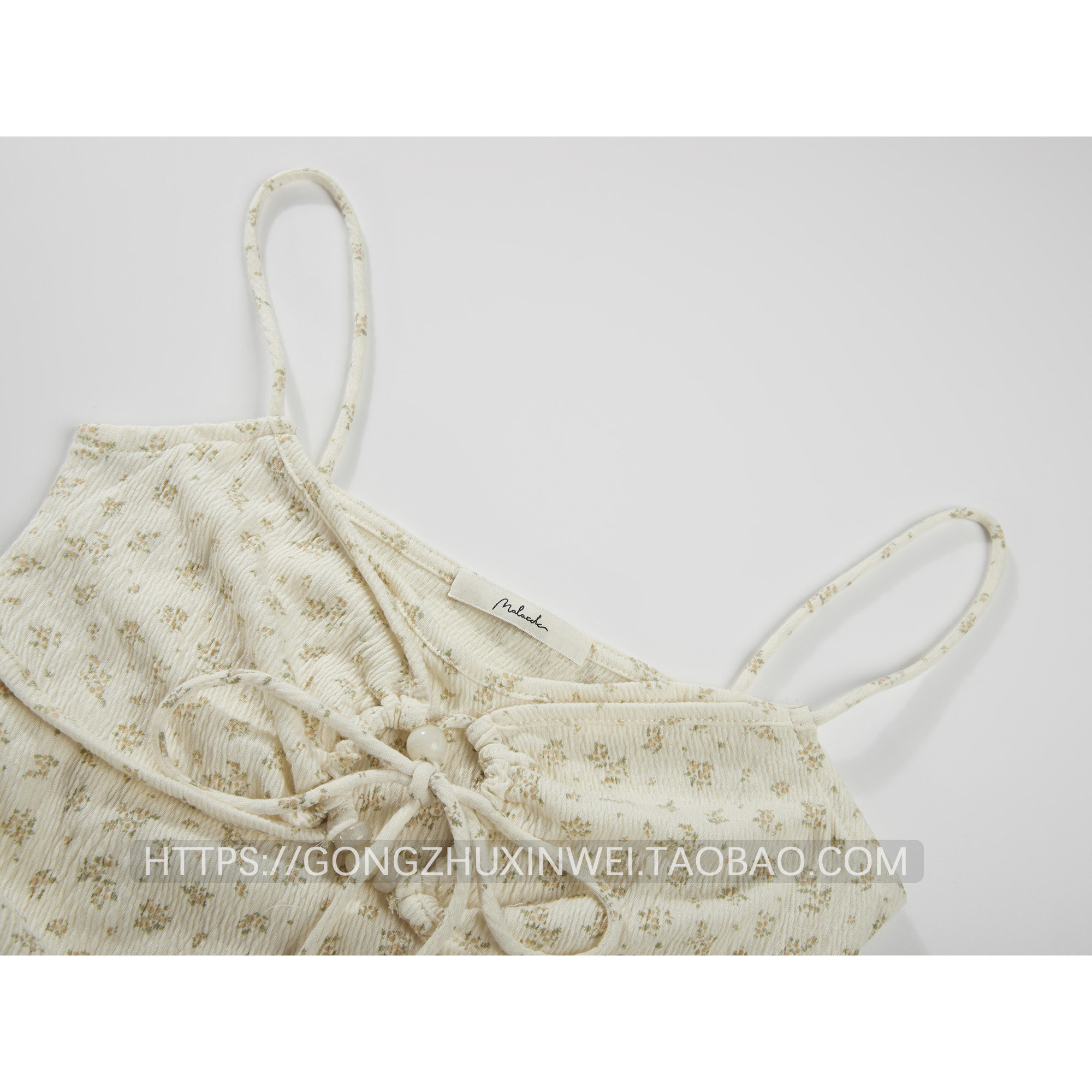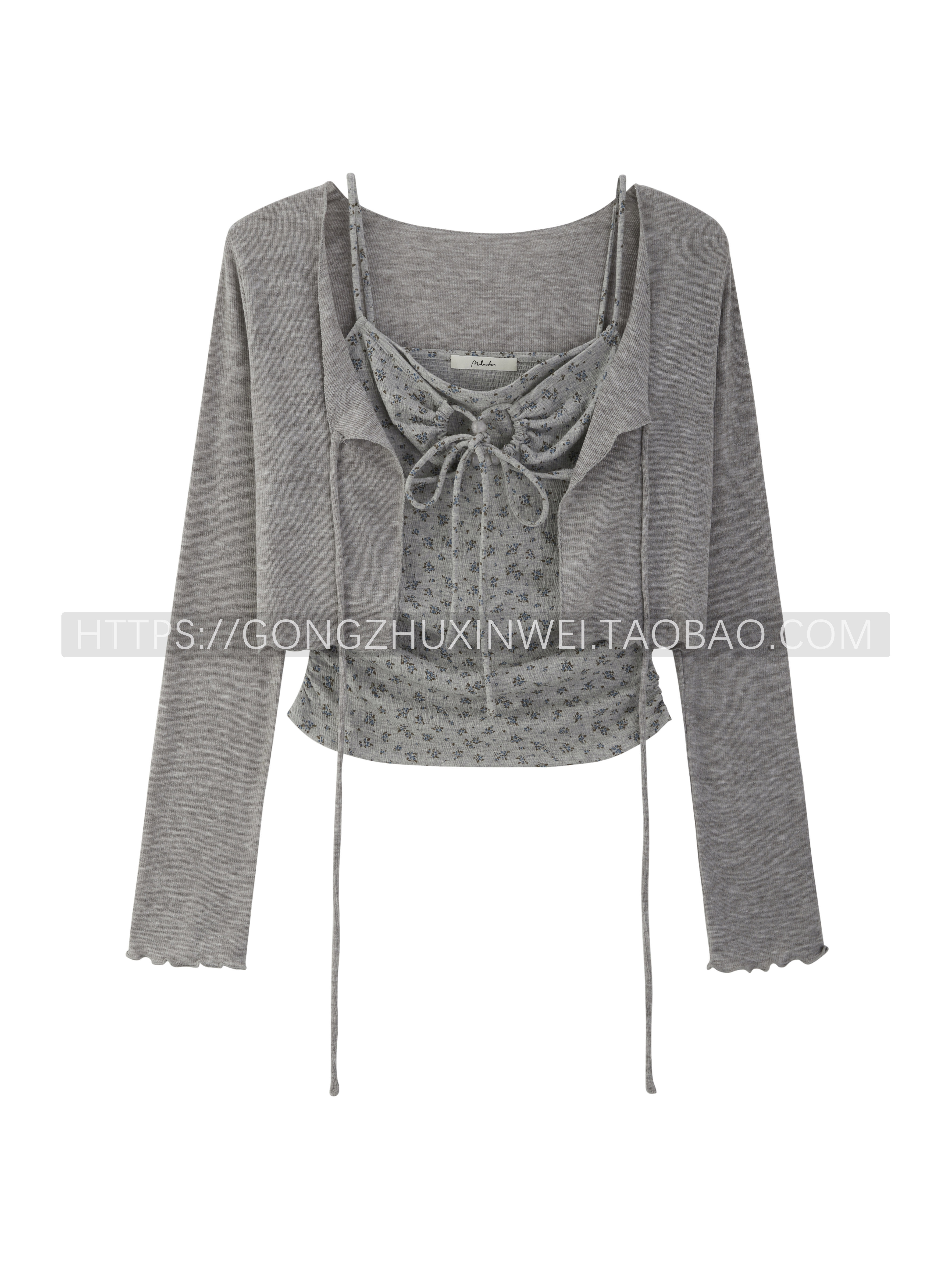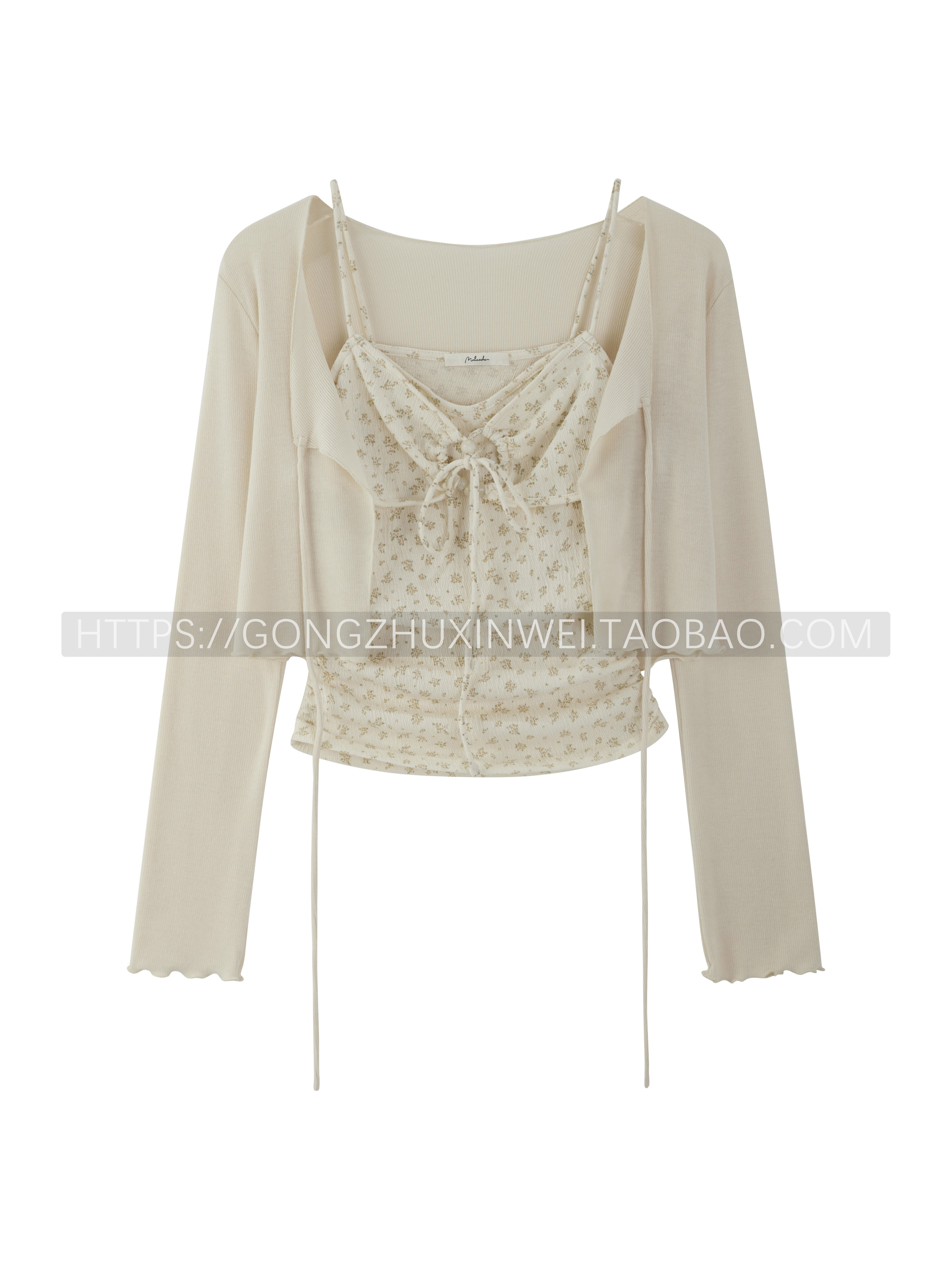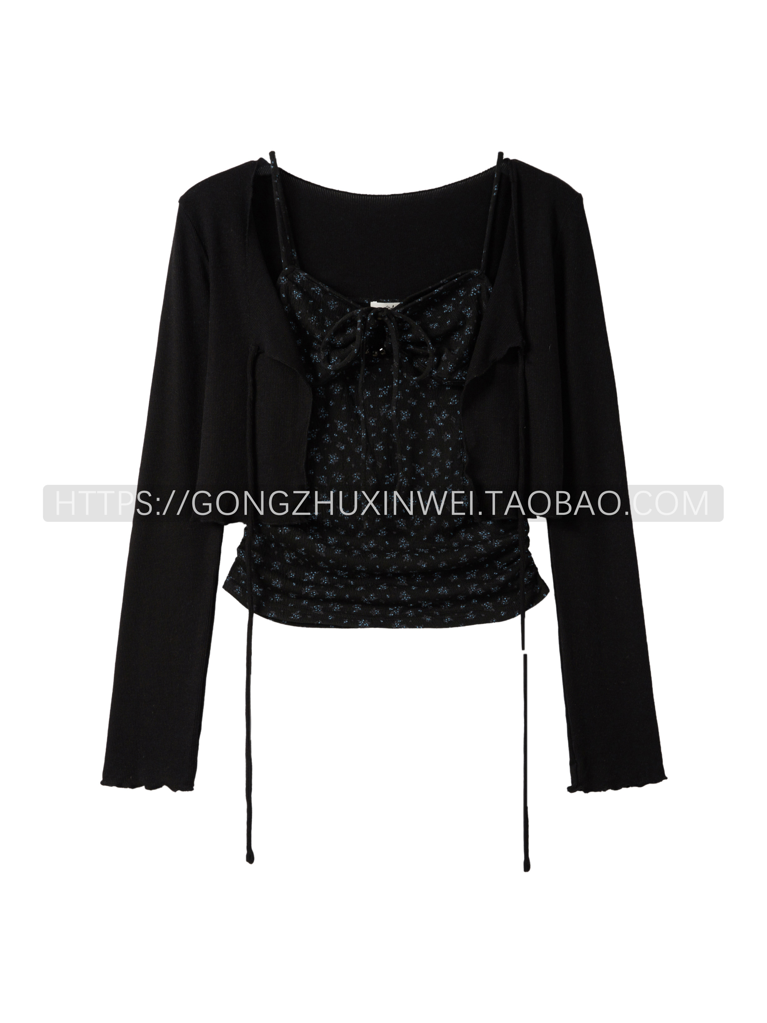 春夏新款純欲甜辣短款碎花系繩吊帶背心長袖開衫兩件套
