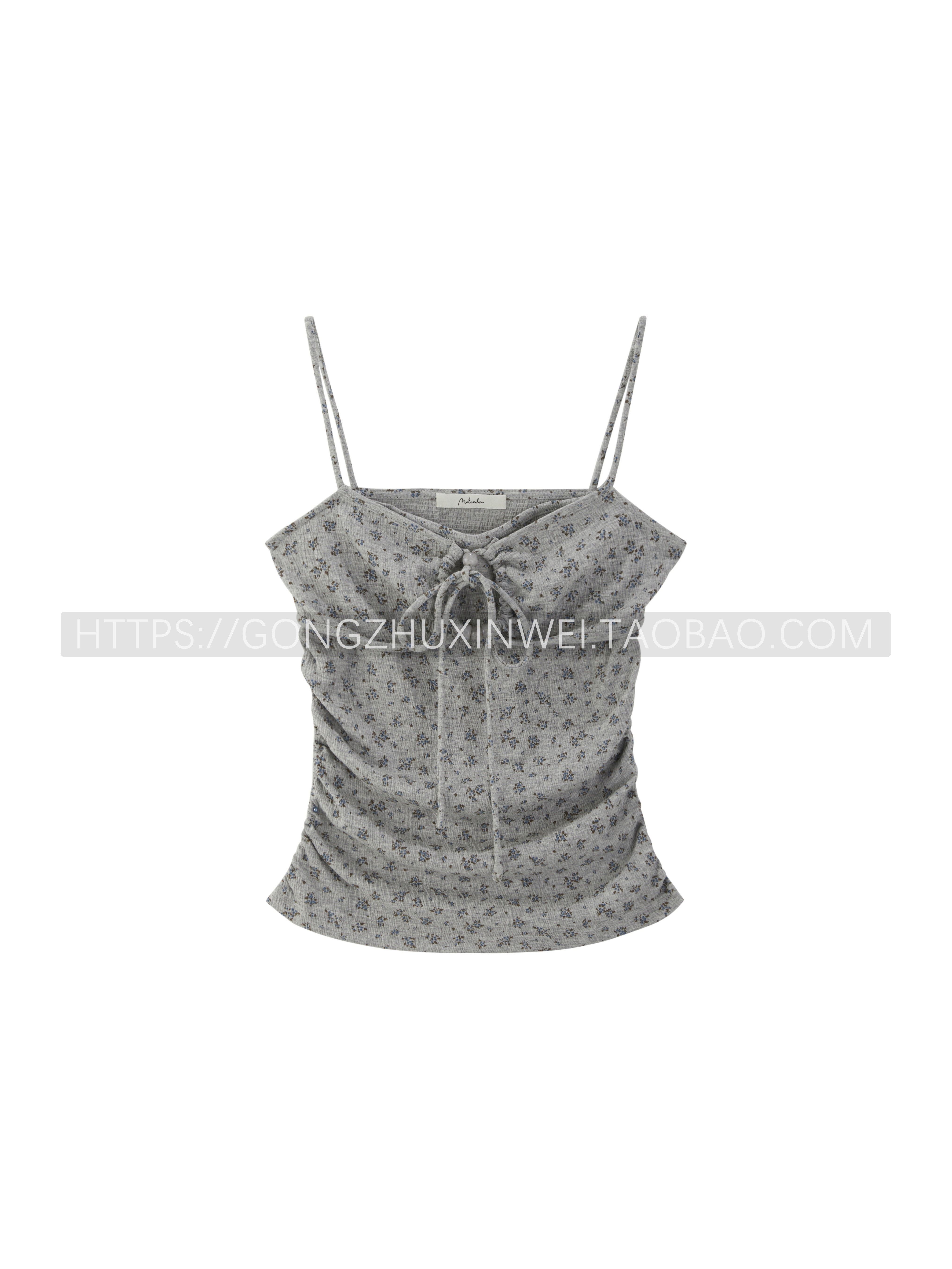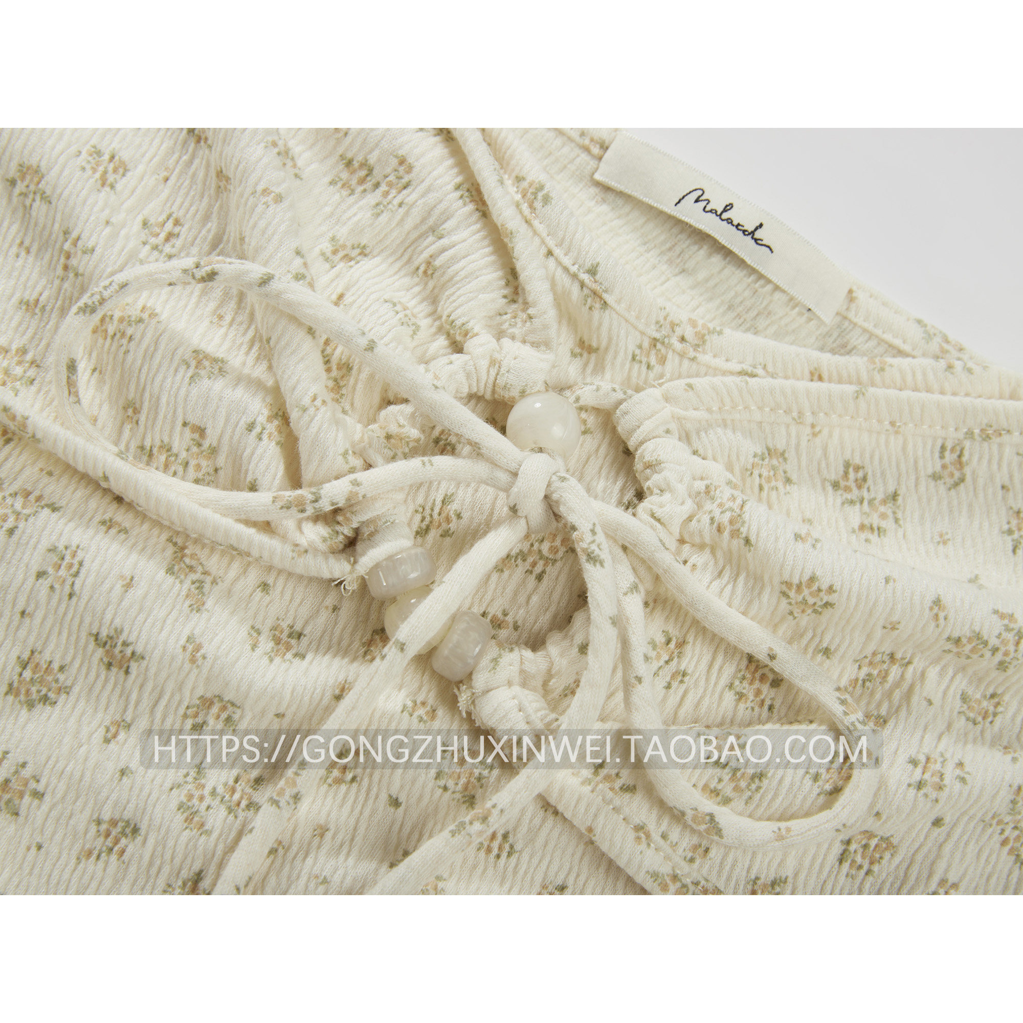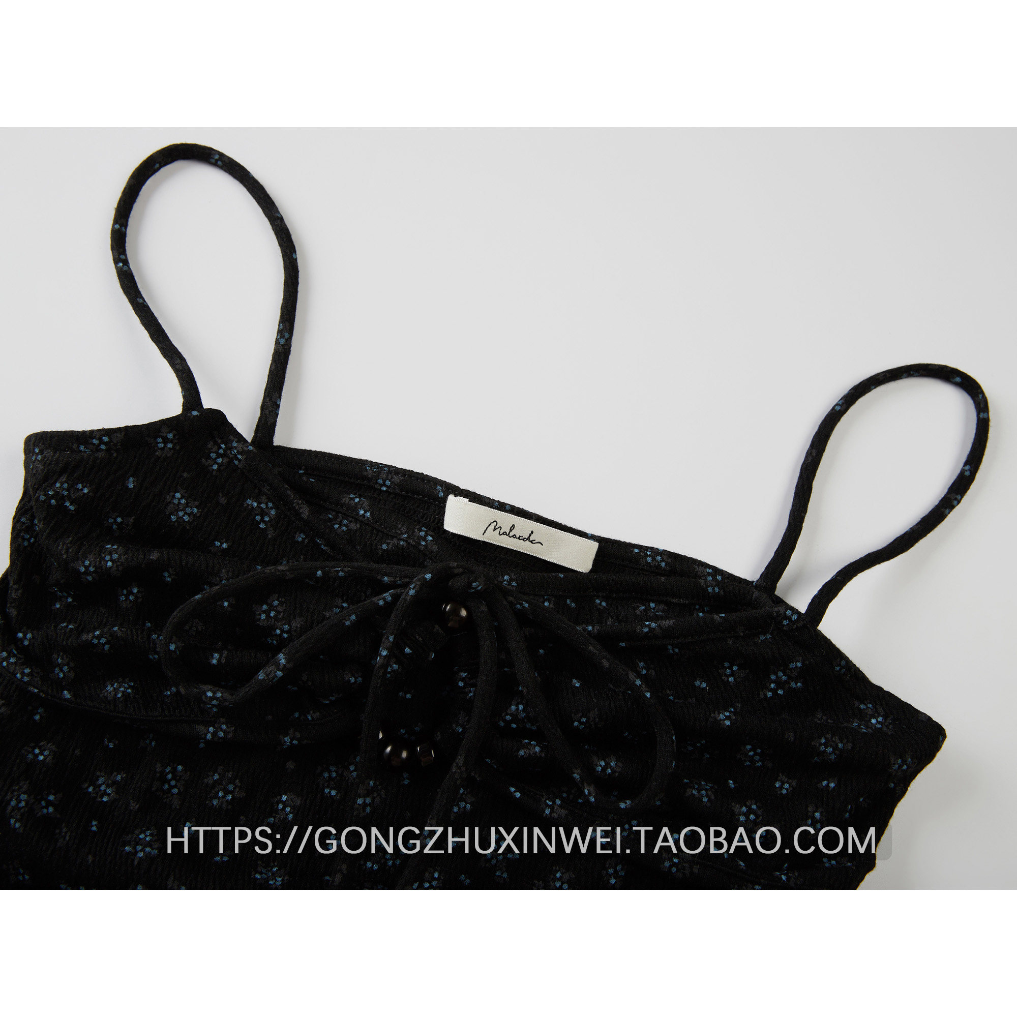 春夏新款純欲甜辣短款碎花系繩吊帶背心長袖開衫兩件套