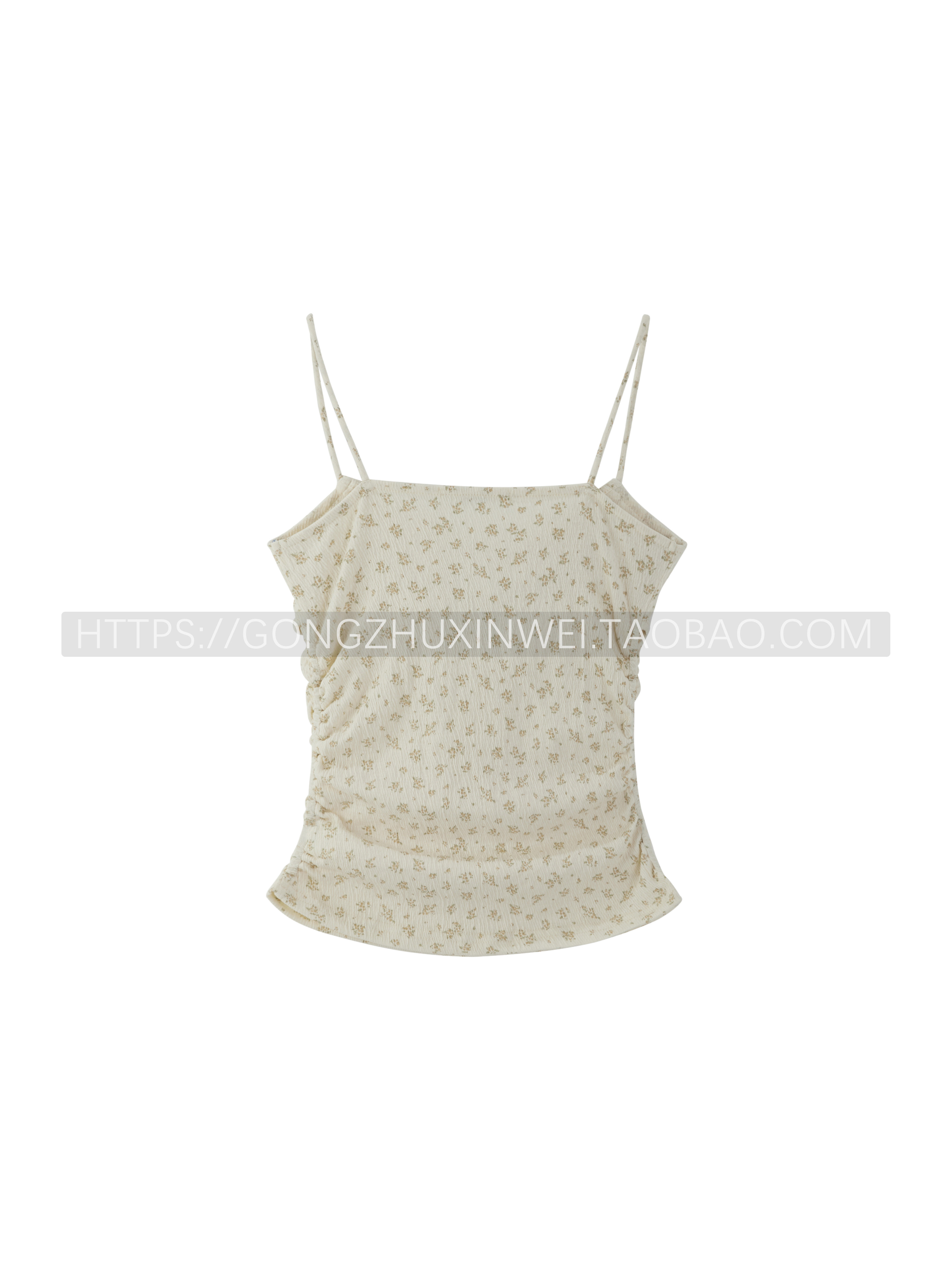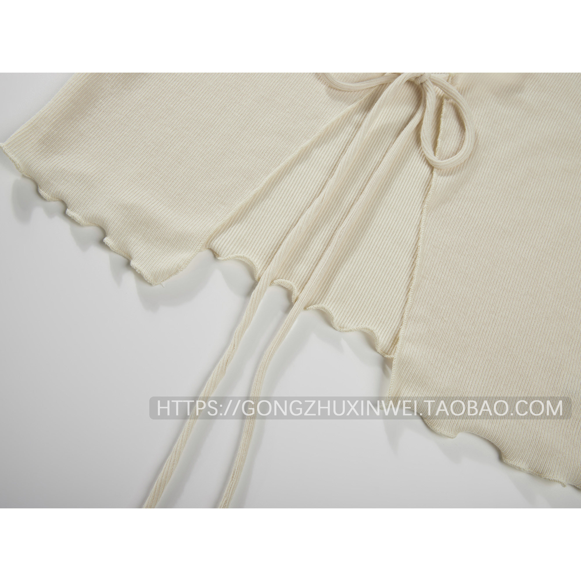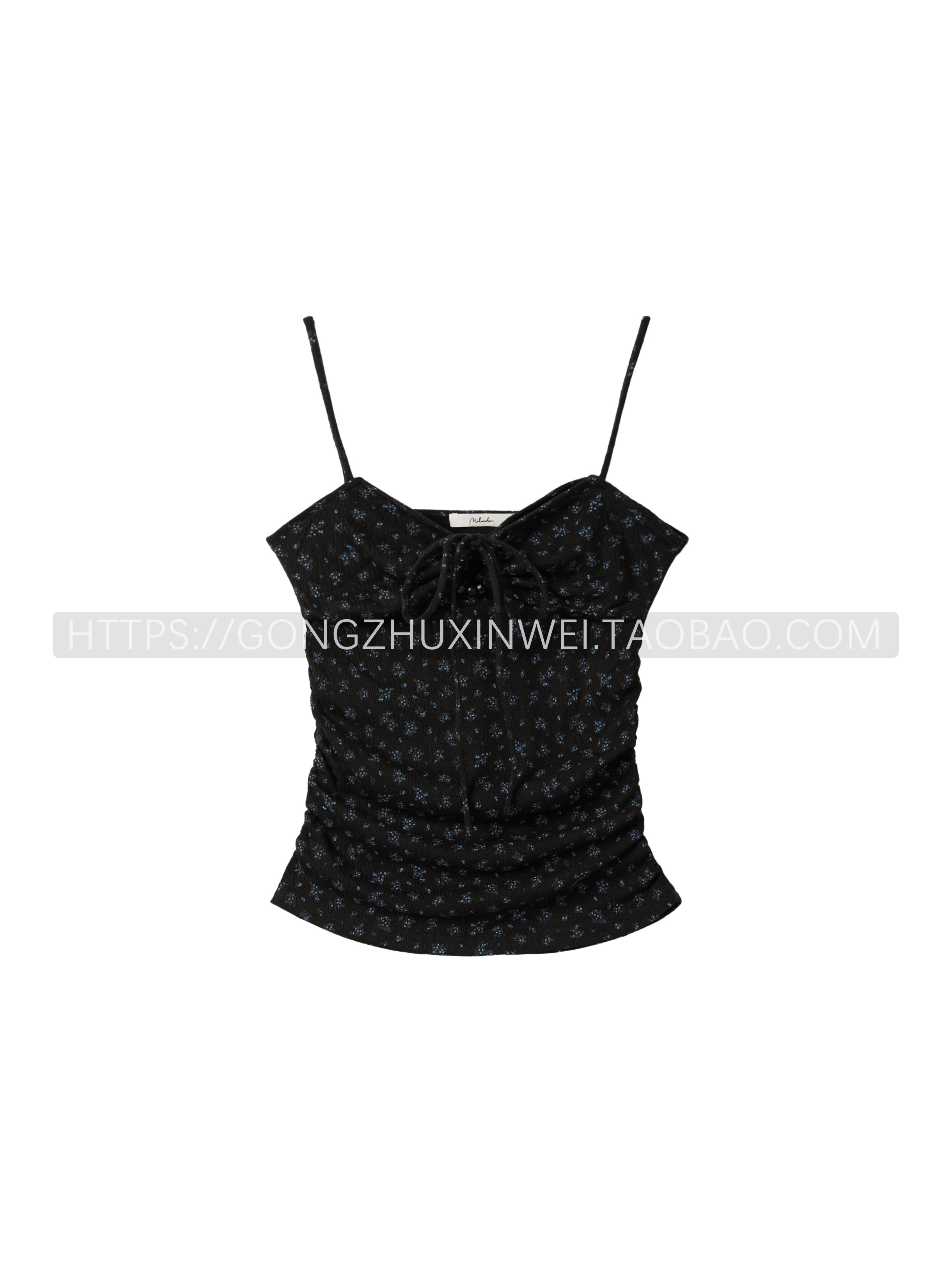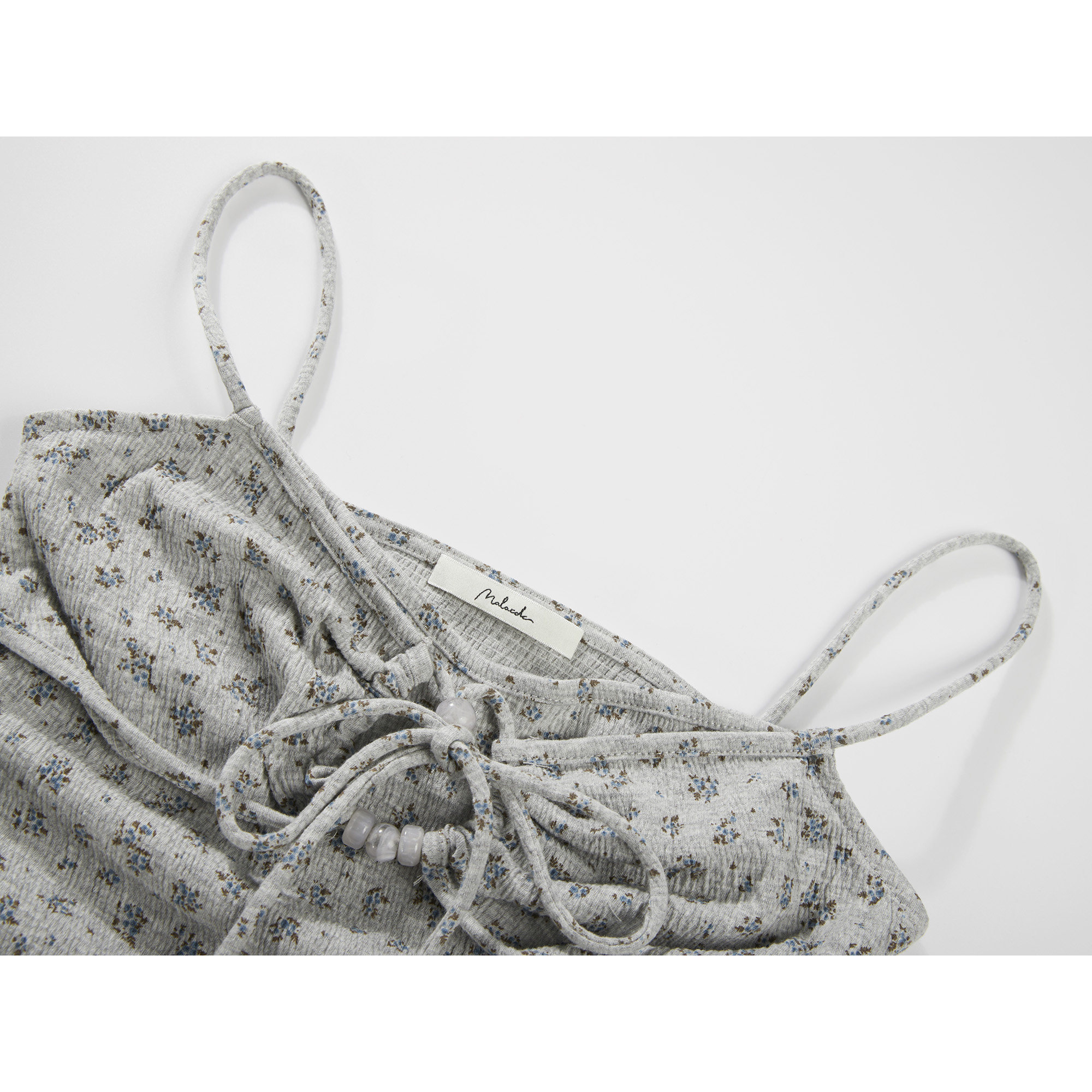 春夏新款純欲甜辣短款碎花系繩吊帶背心長袖開衫兩件套