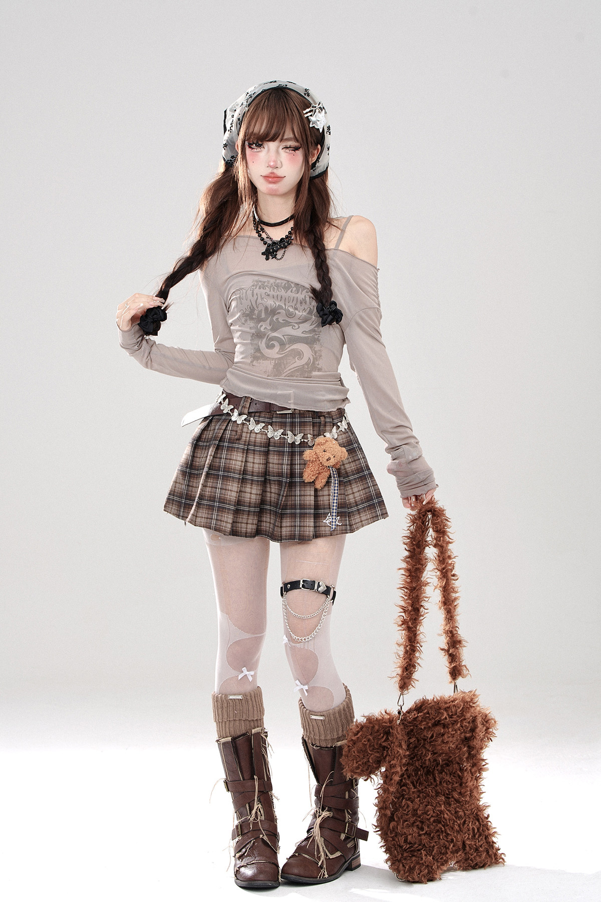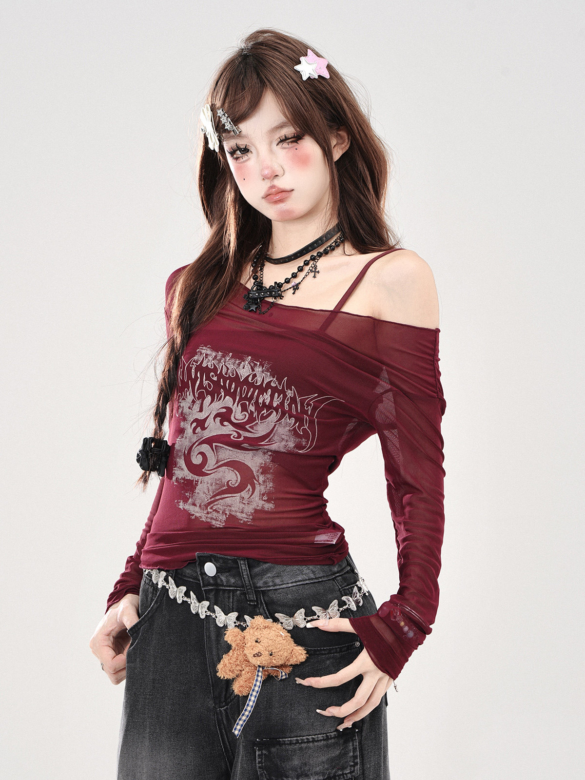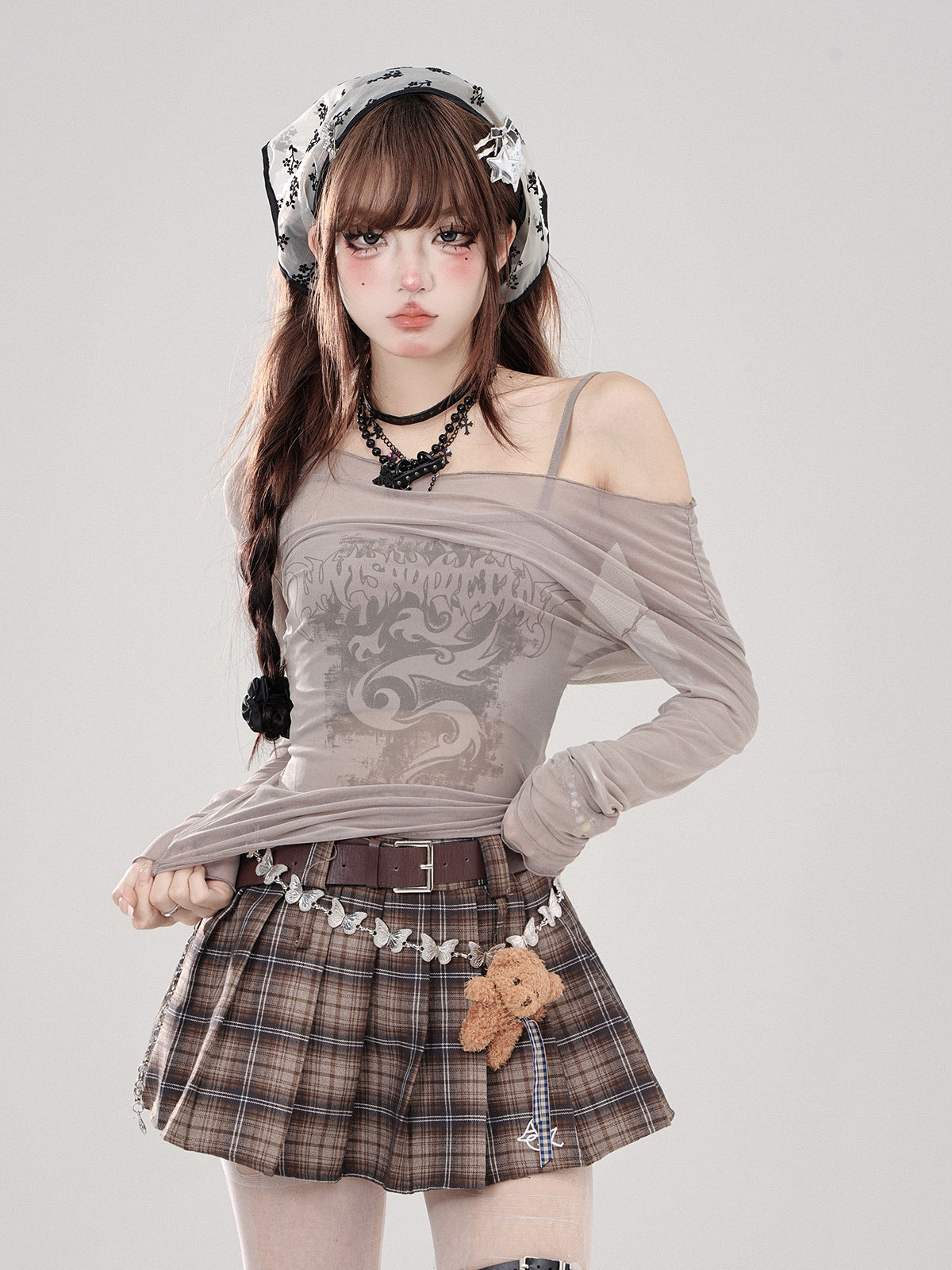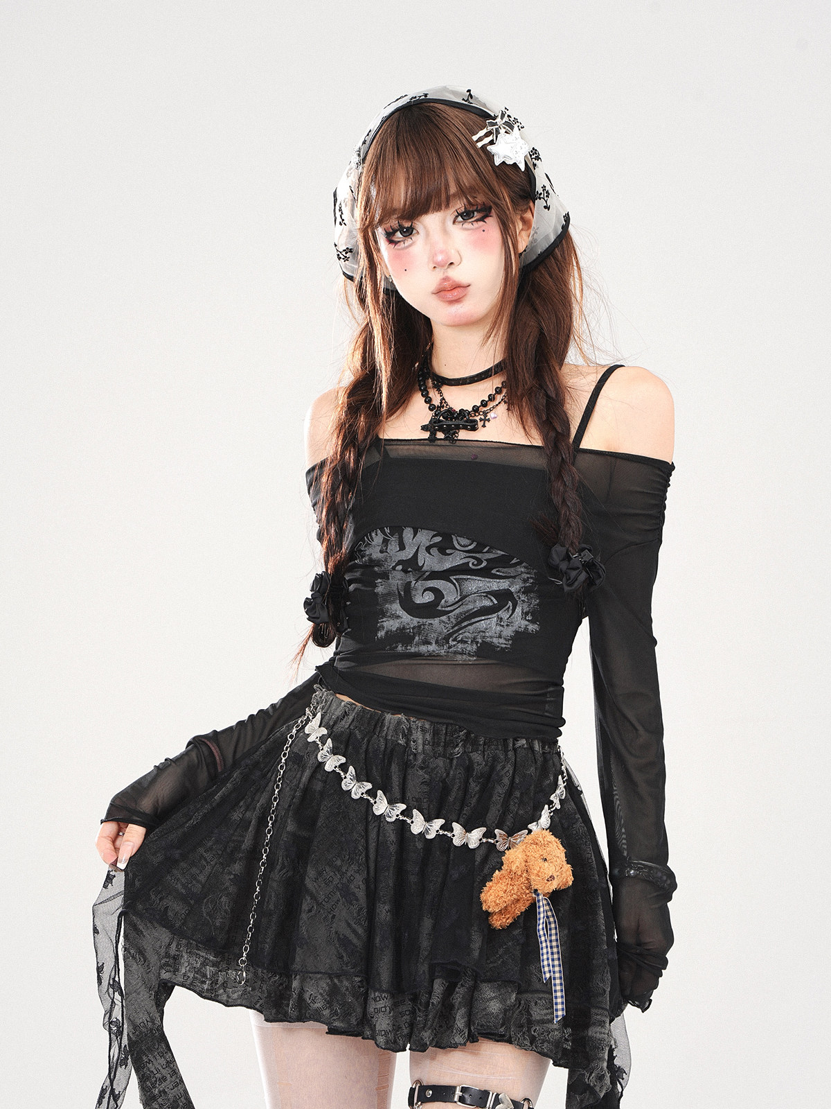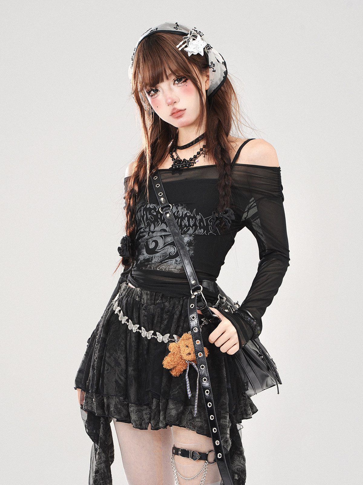 叛逆戀人 黑色冰絲輕薄罩衫女夏一字肩上衣防曬兩件套