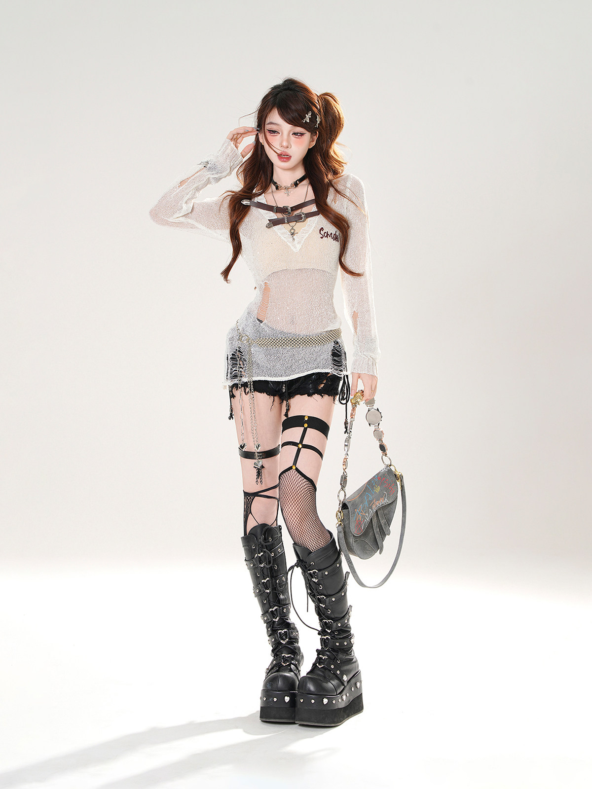 純欲密碼 絕美薄款網紗鏤空防曬罩衫女夏收腰顯瘦上衣