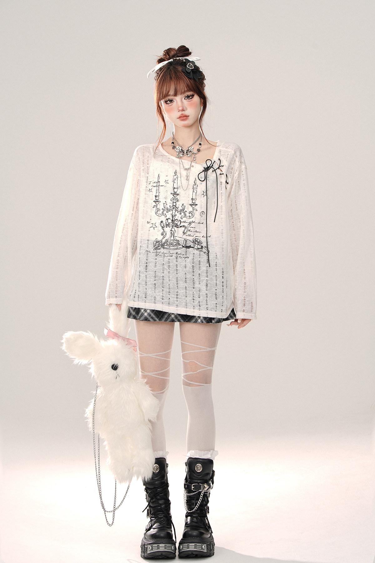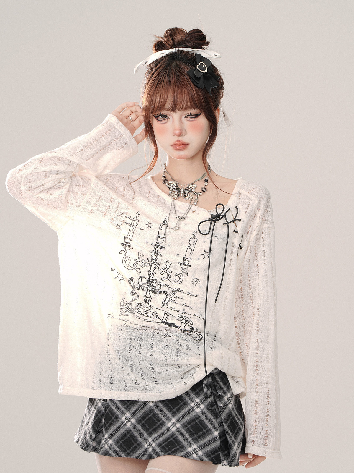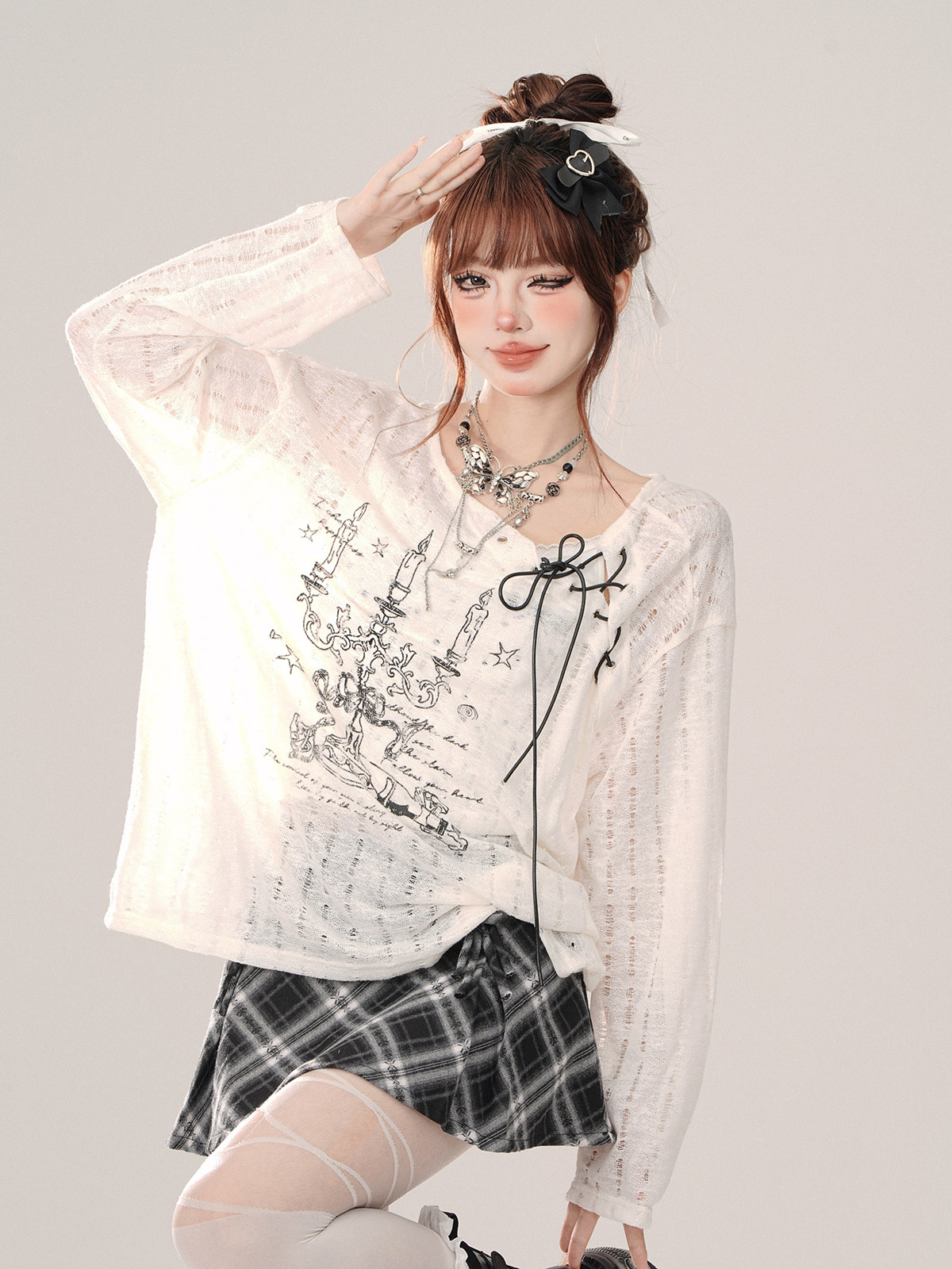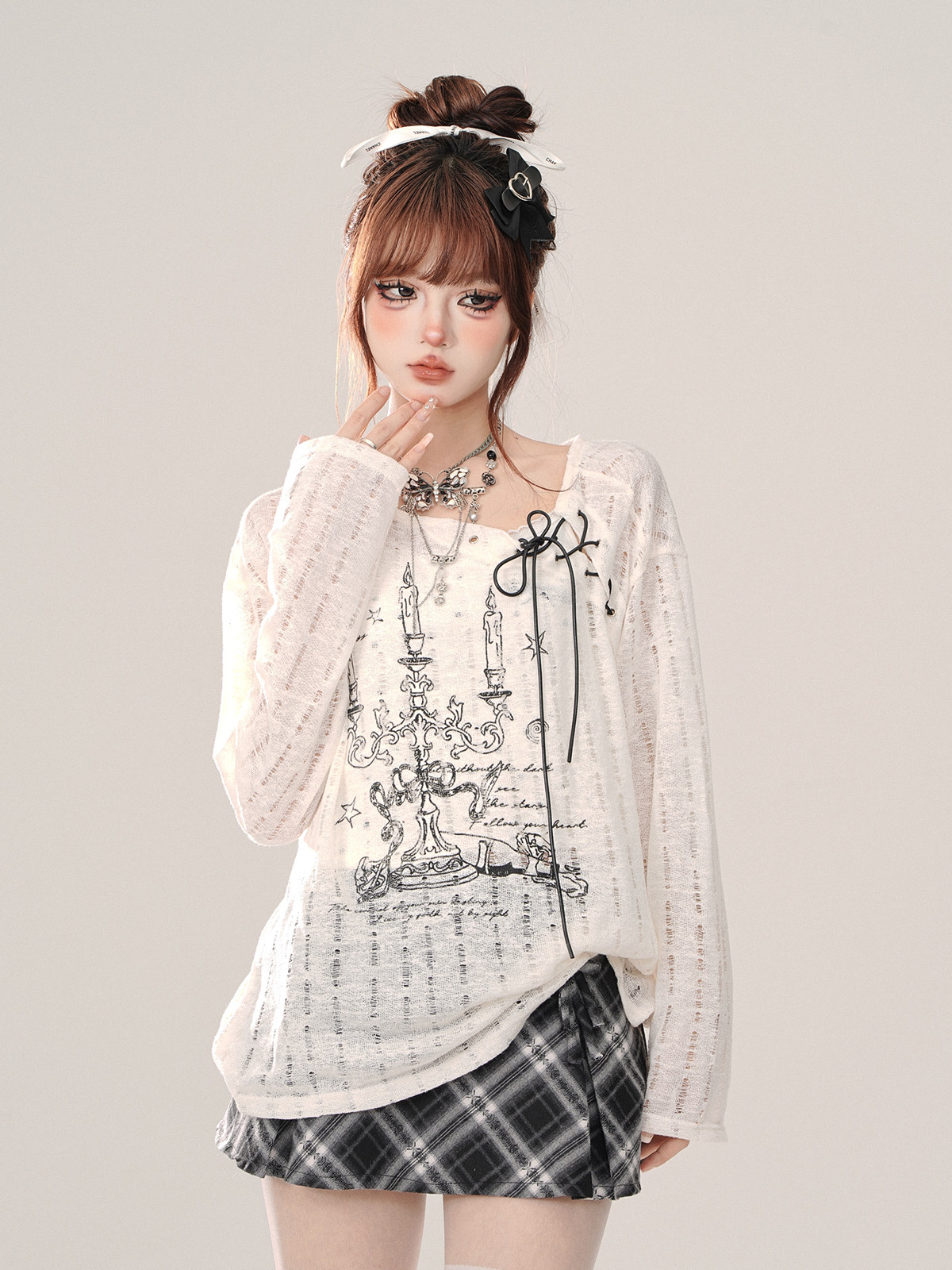 銀色山泉 薄款鏤空罩衫女夏季寬松長袖防曬衣白色上衣
