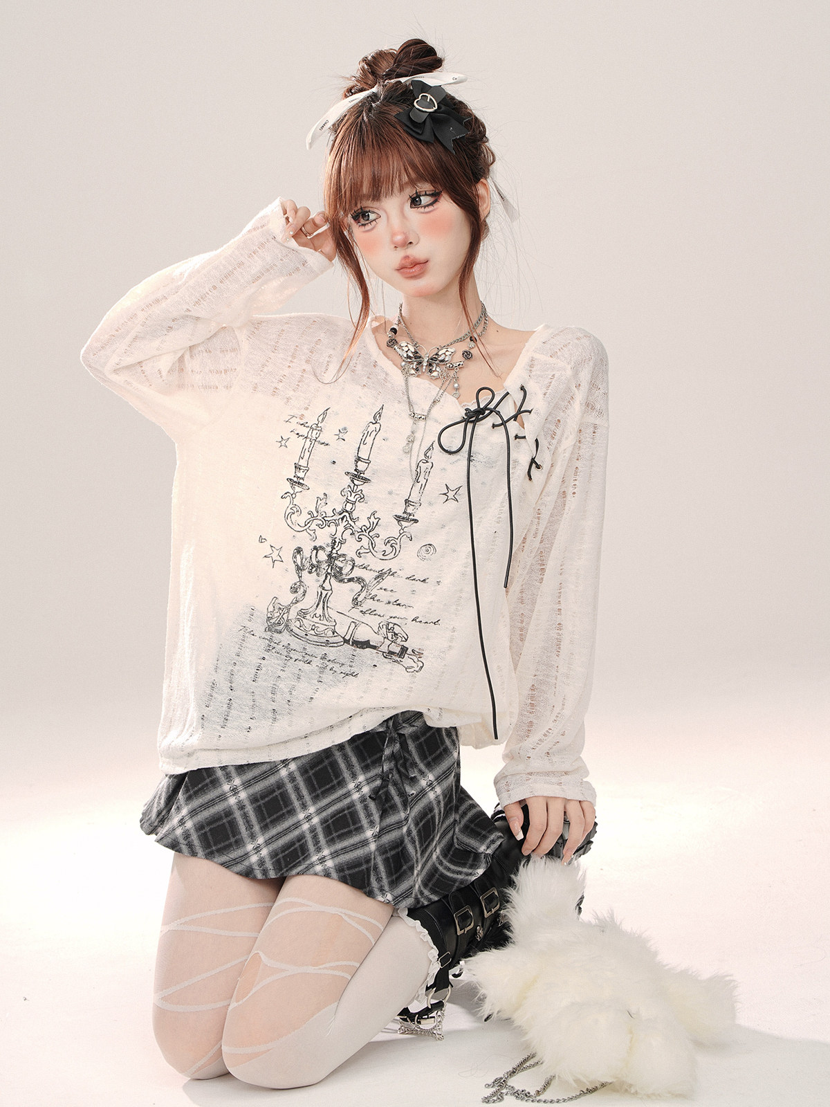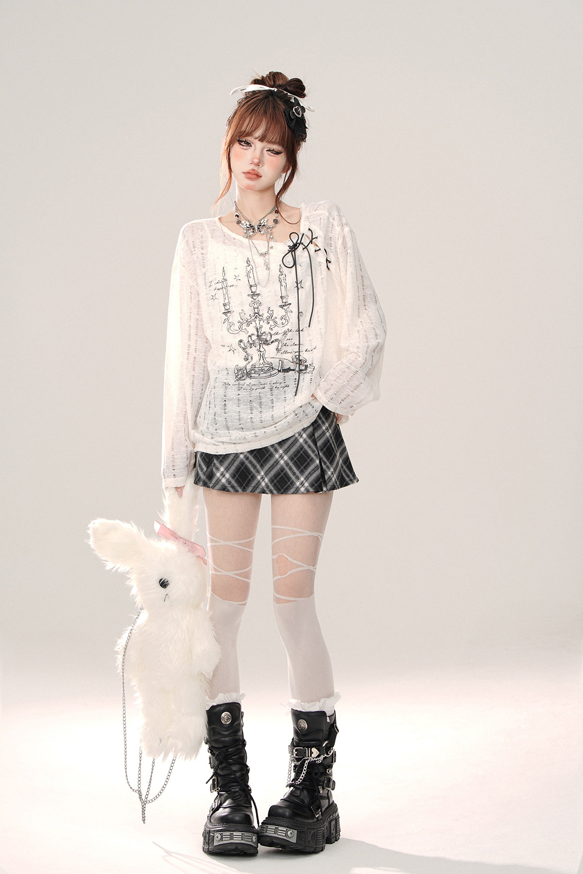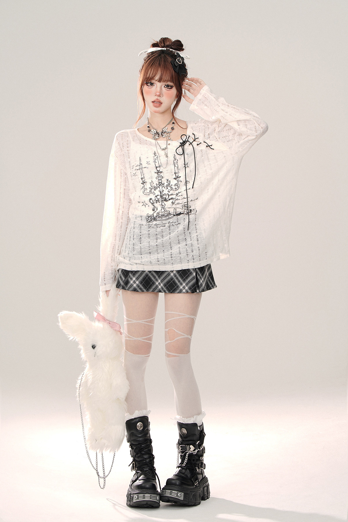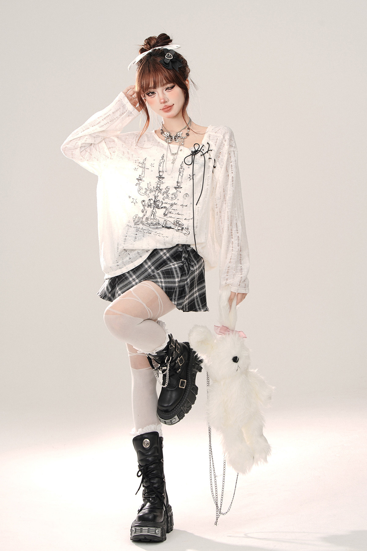 銀色山泉 薄款鏤空罩衫女夏季寬松長袖防曬衣白色上衣