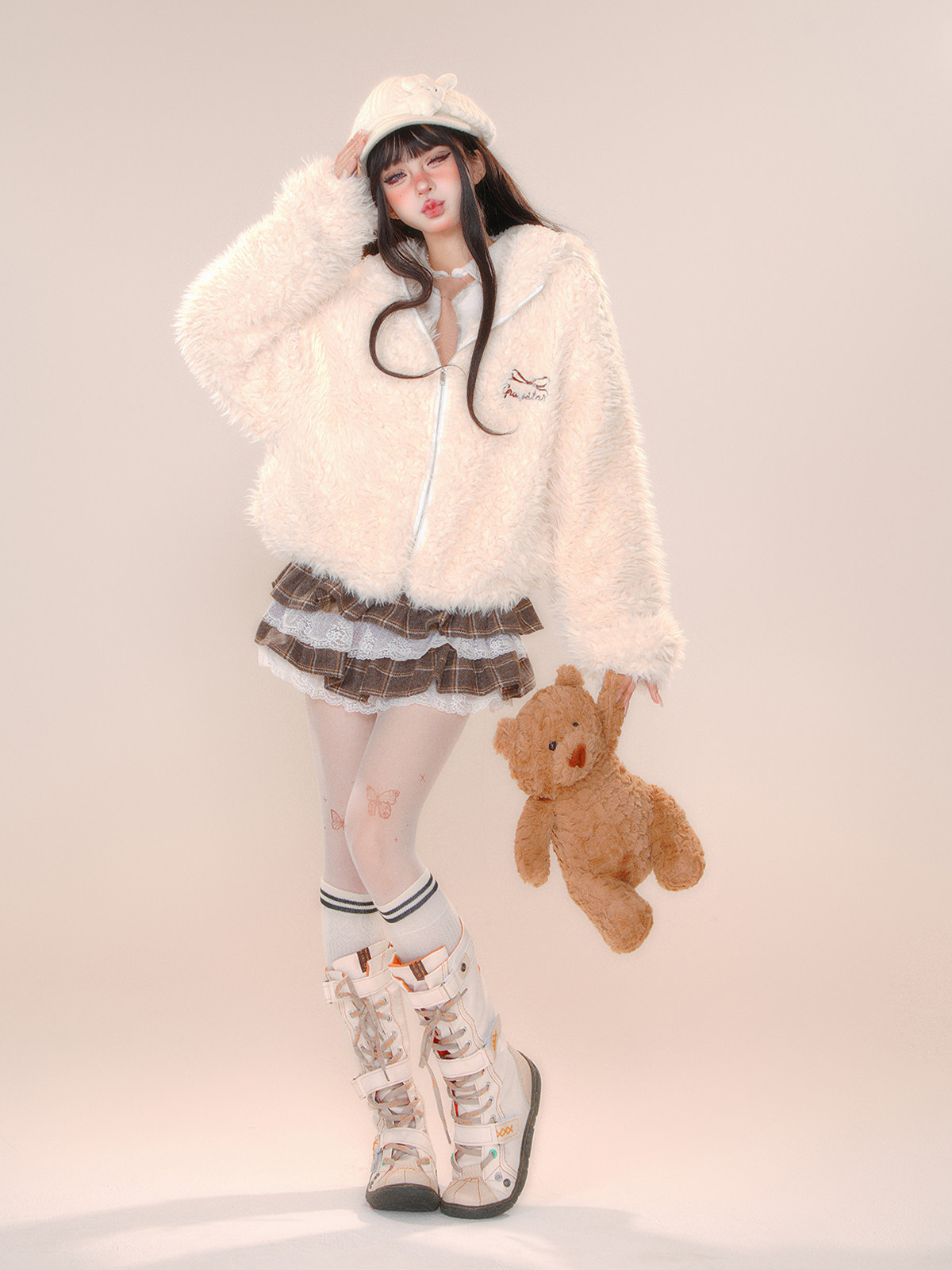 半熟花蕾 小個子蕾絲格紋甜辣半身裙女秋冬蛋糕裙短裙