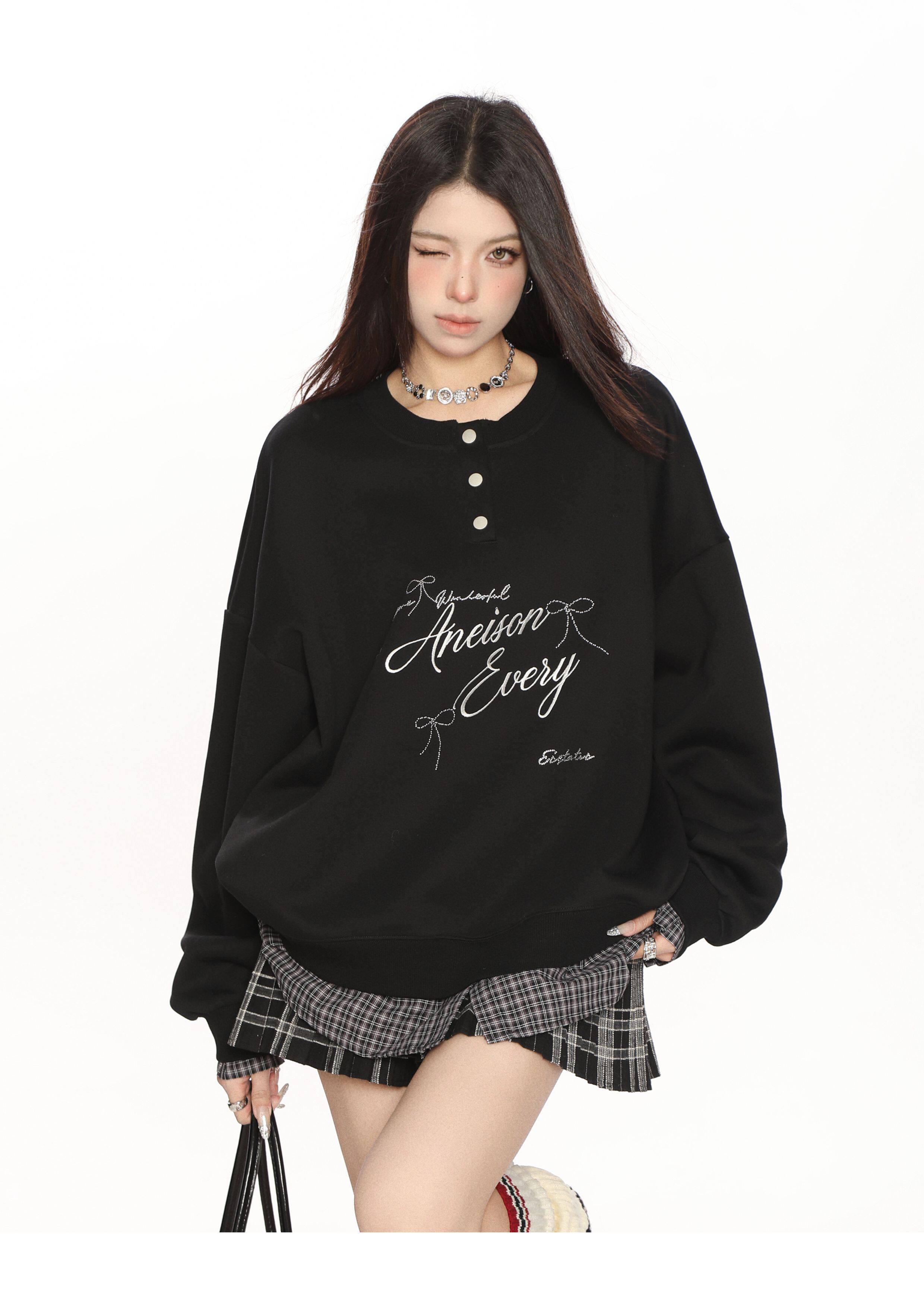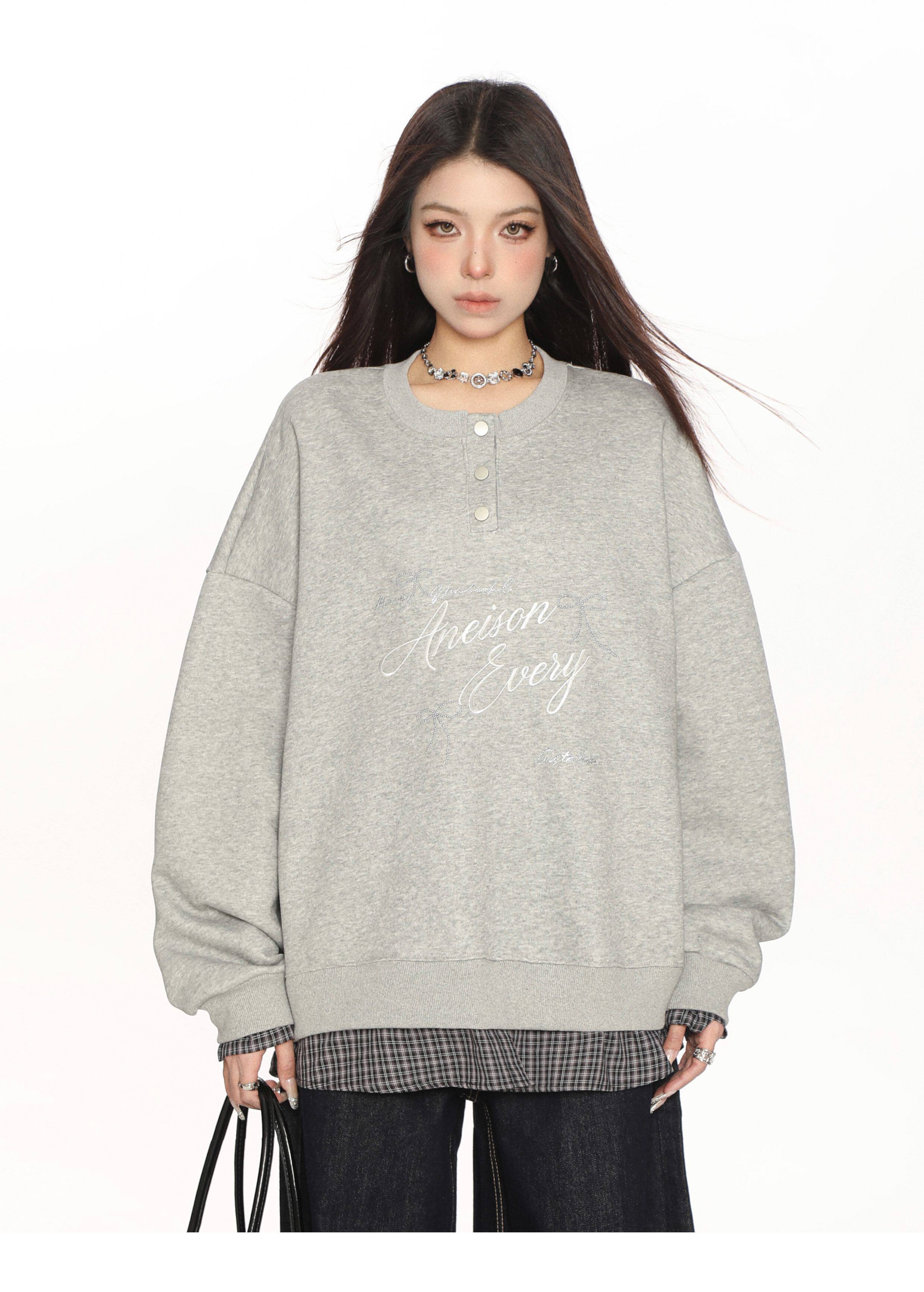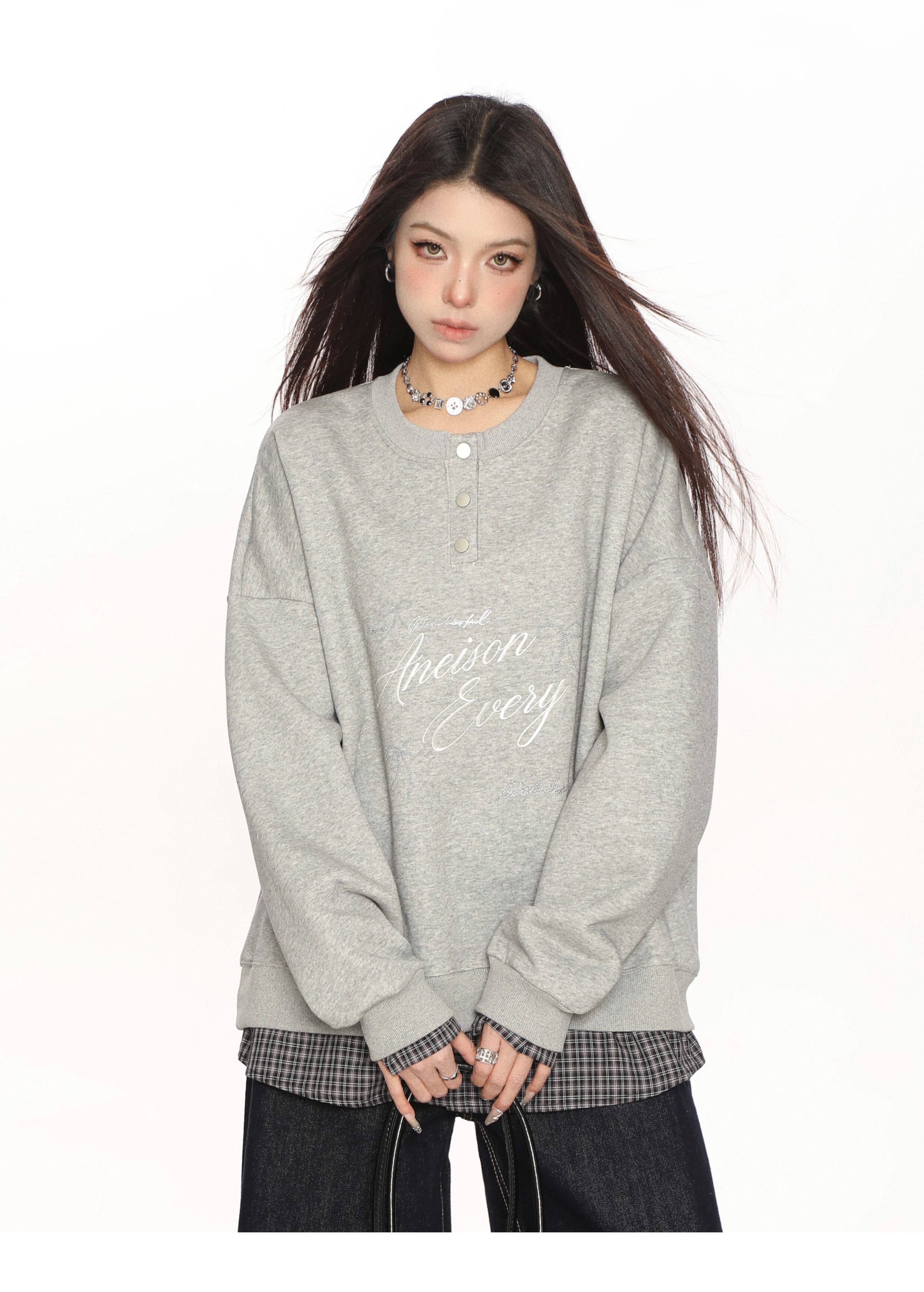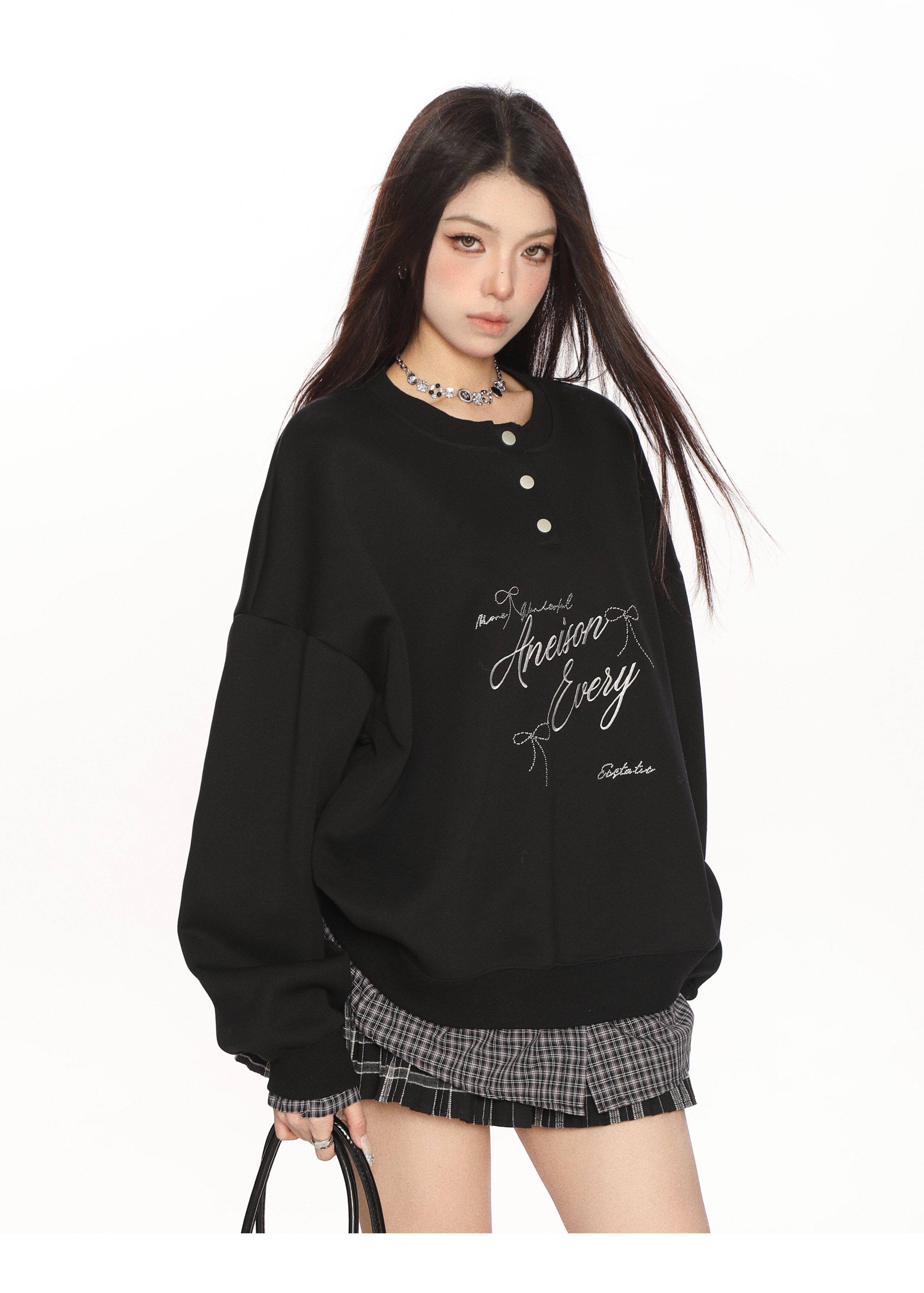 學院風假兩件拼接刺繡字母衛衣女春秋慵懶風休閑寬松上衣