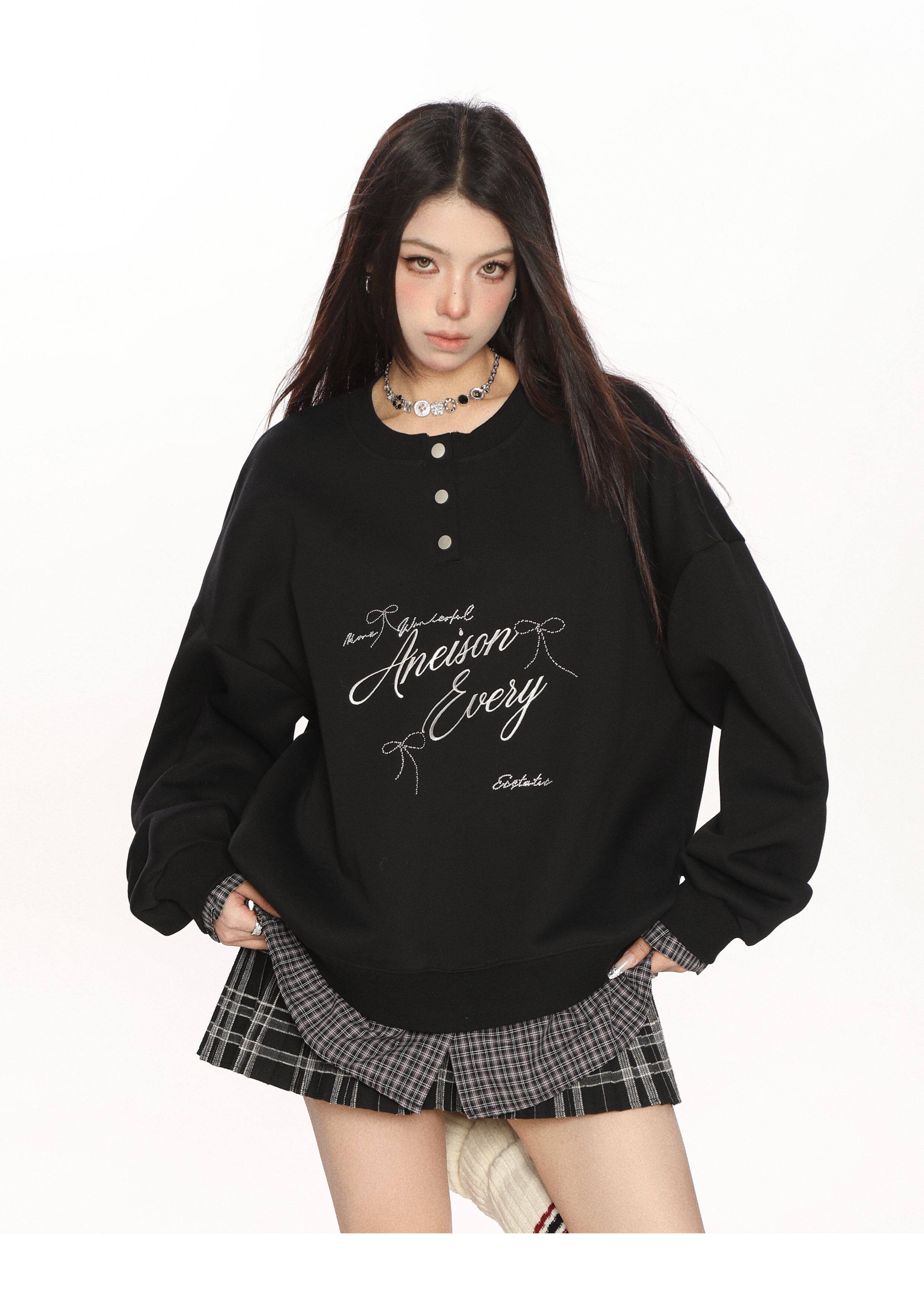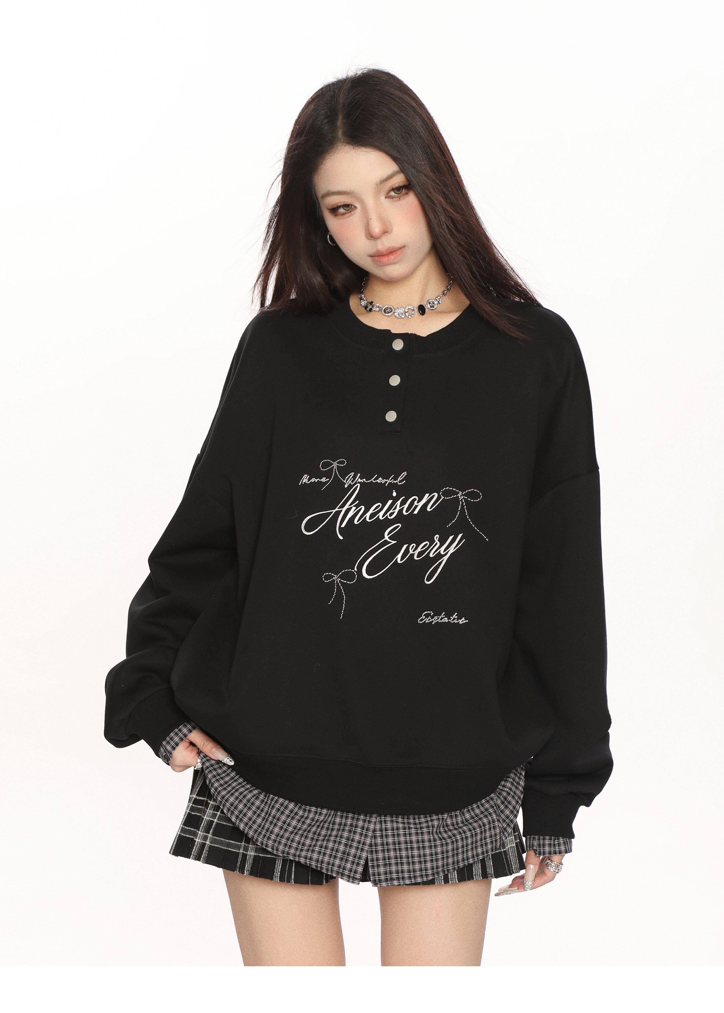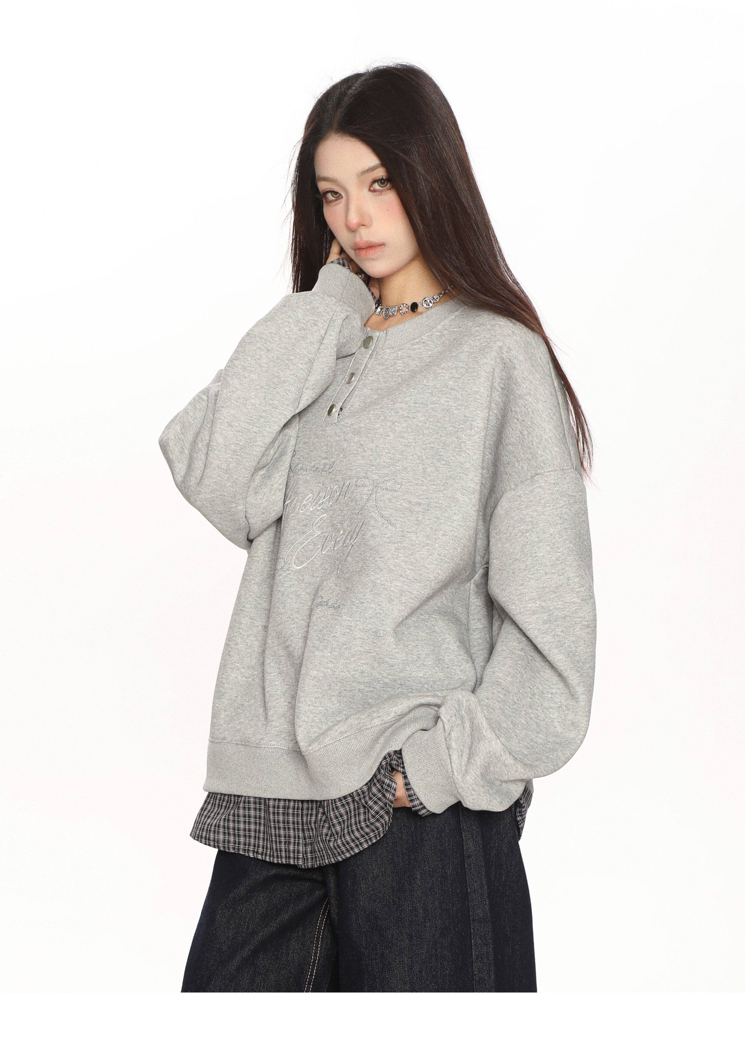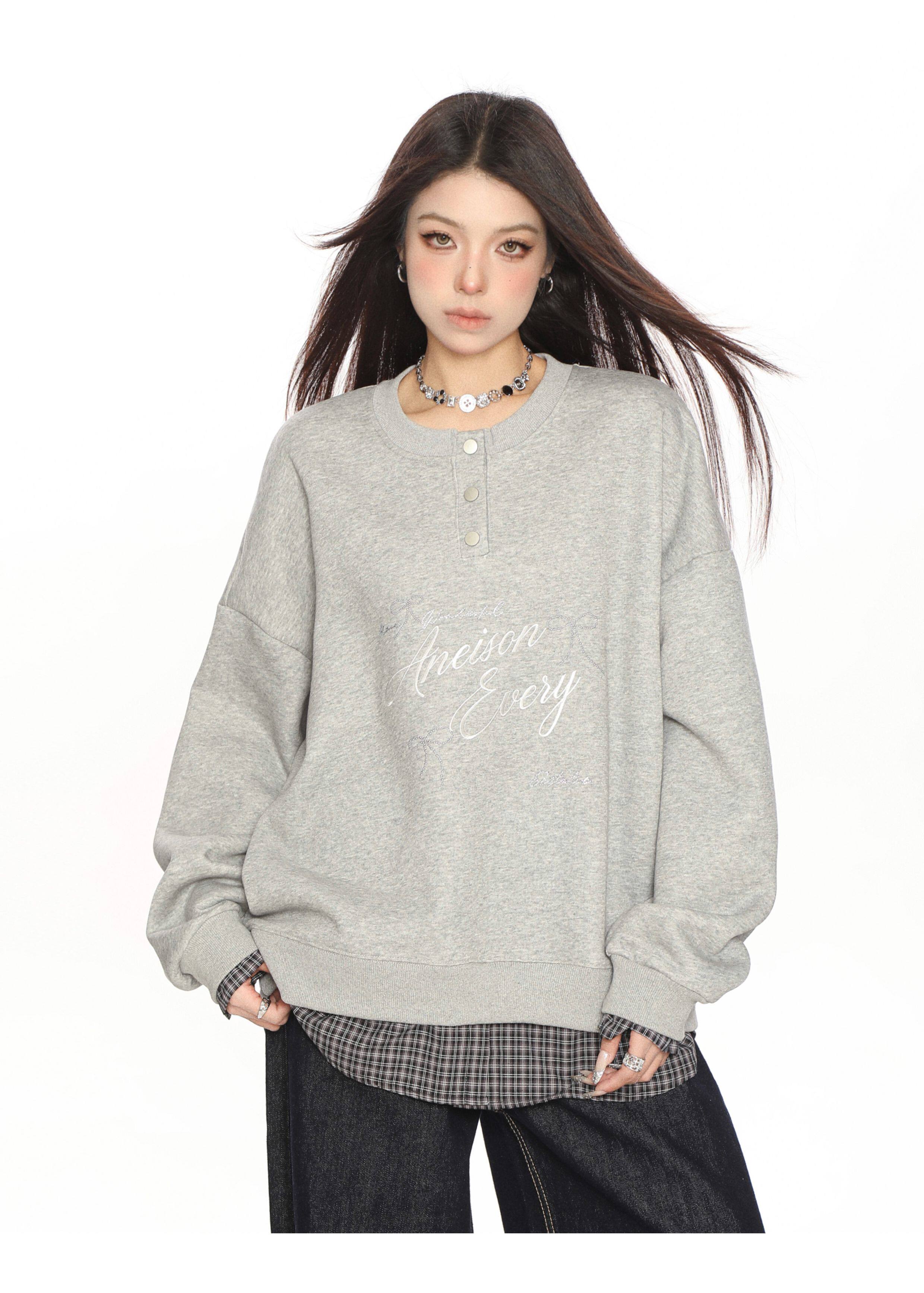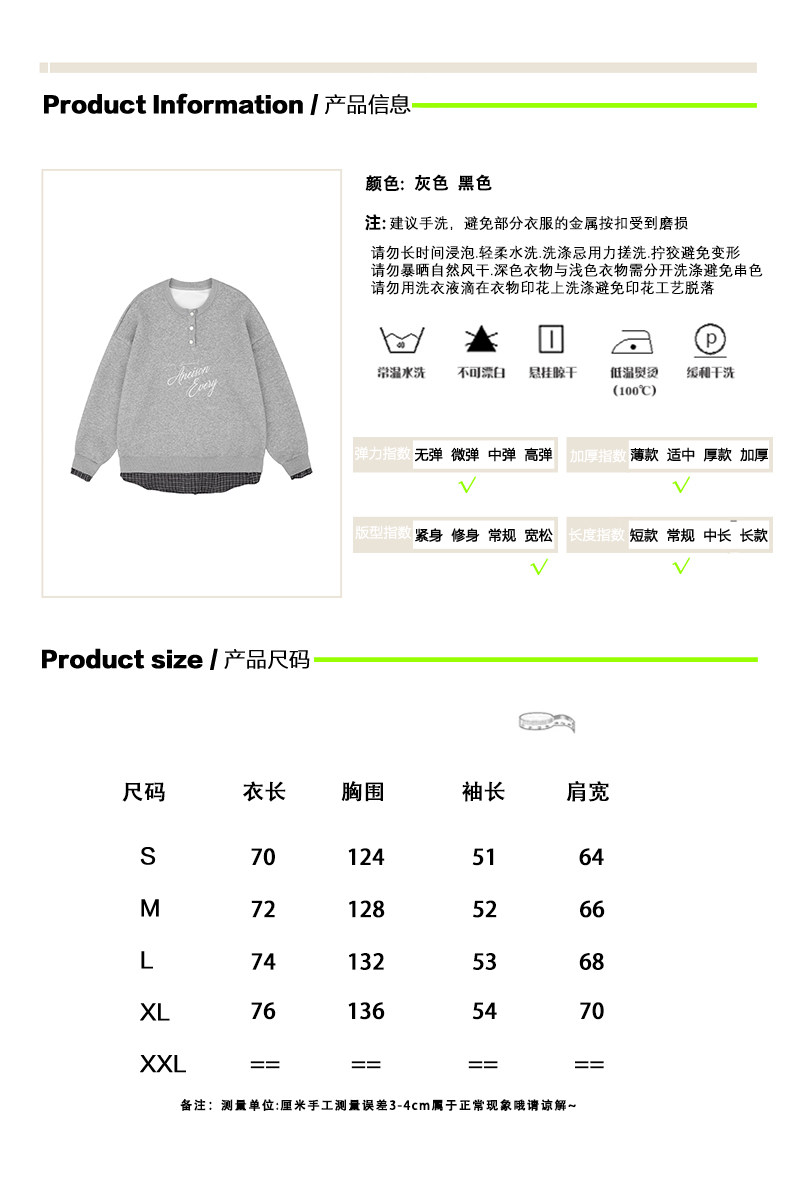 學院風假兩件拼接刺繡字母衛衣女春秋慵懶風休閑寬松上衣