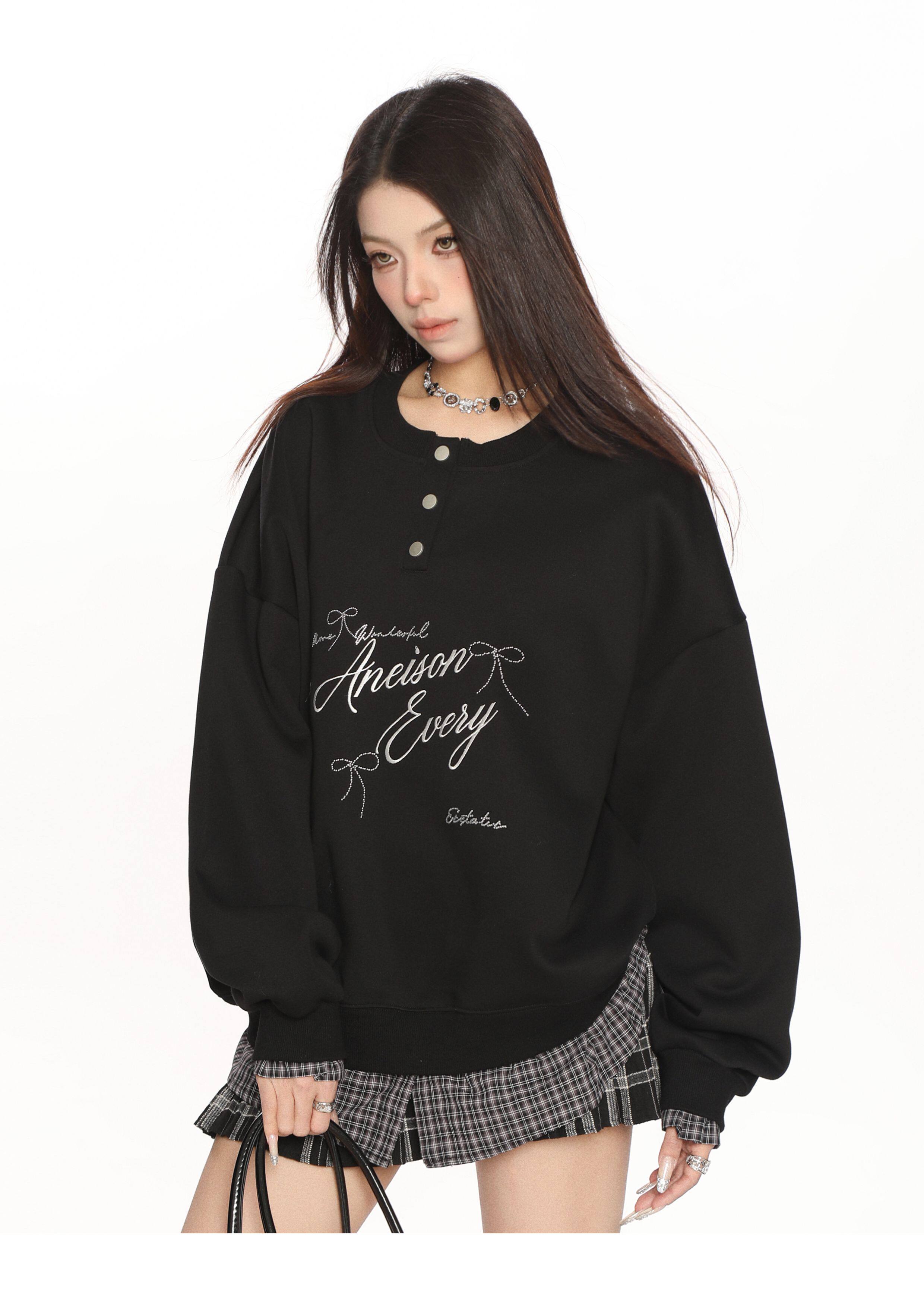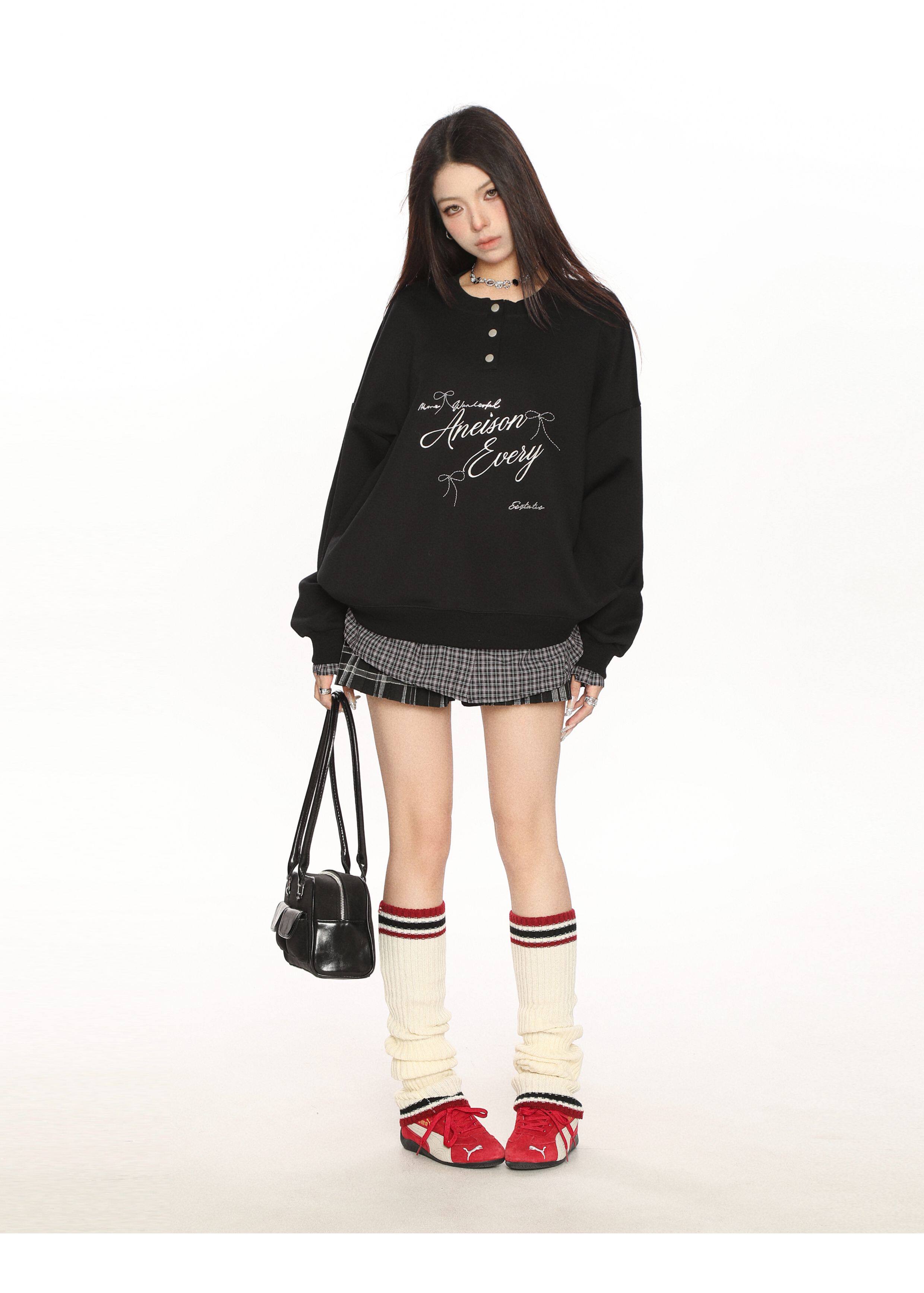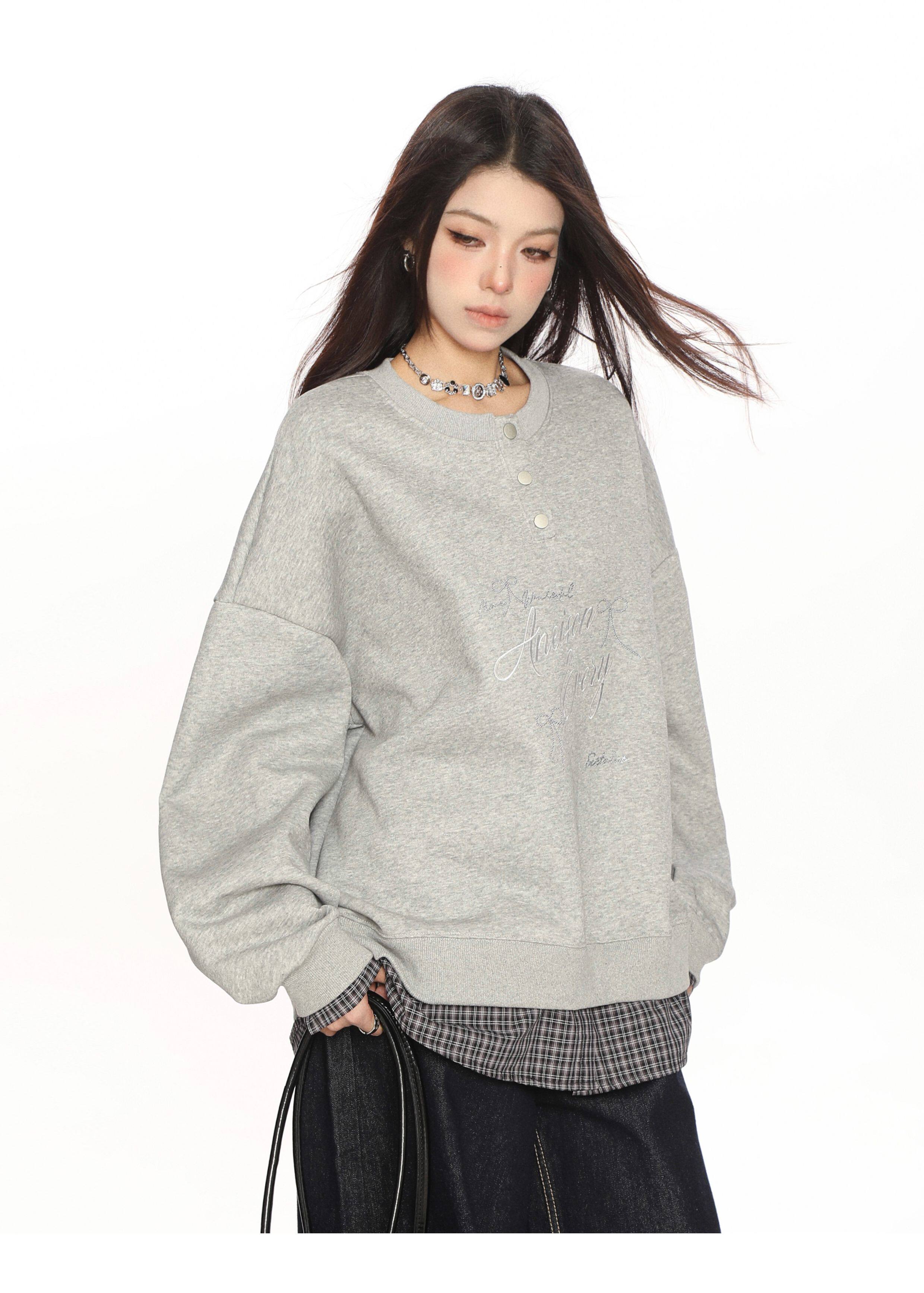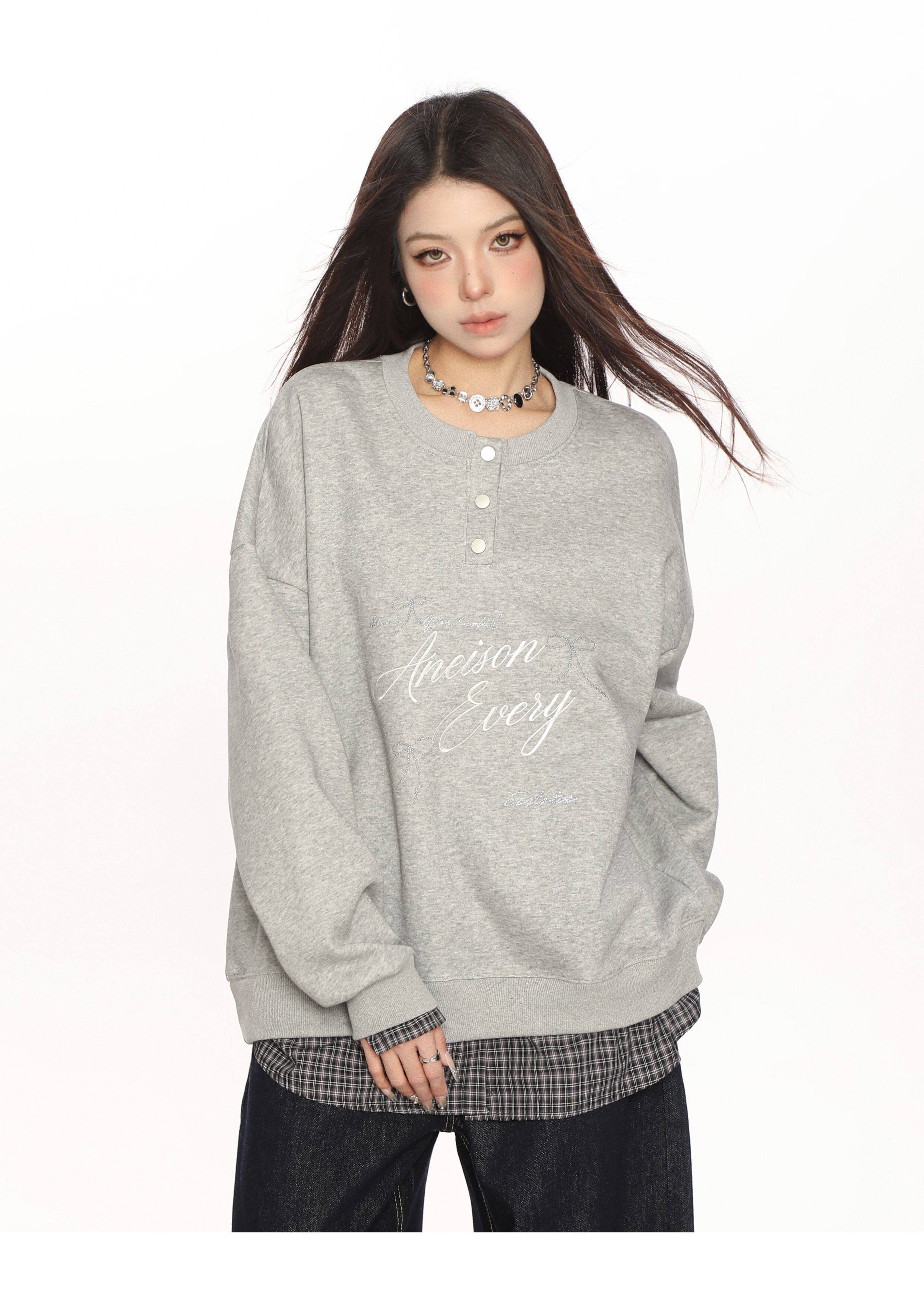 學院風假兩件拼接刺繡字母衛衣女春秋慵懶風休閑寬松上衣