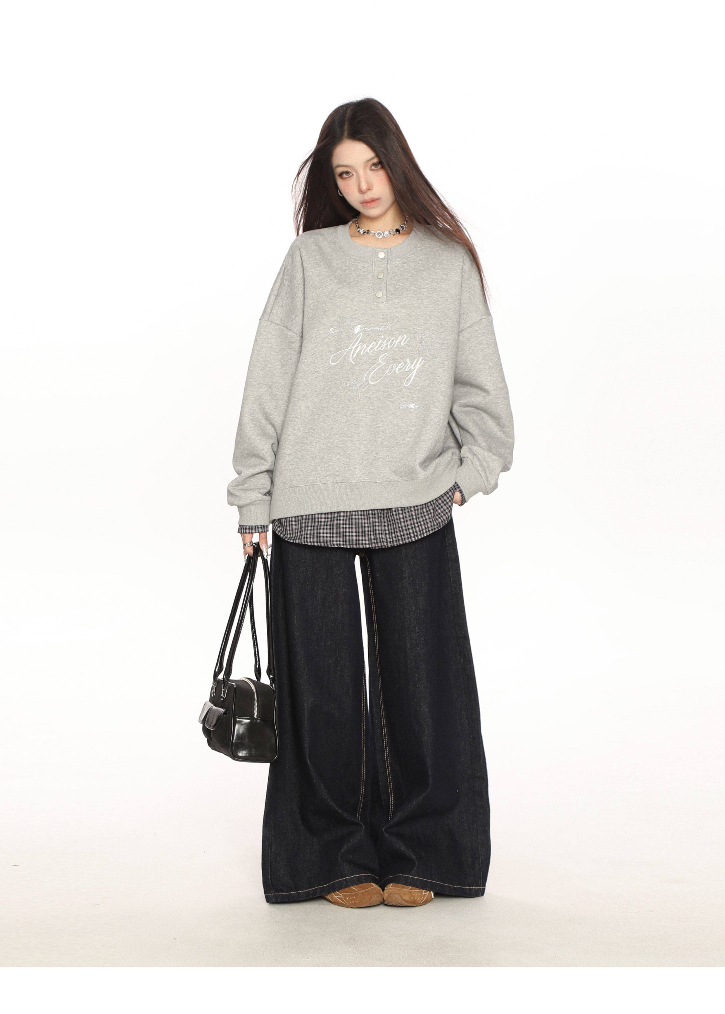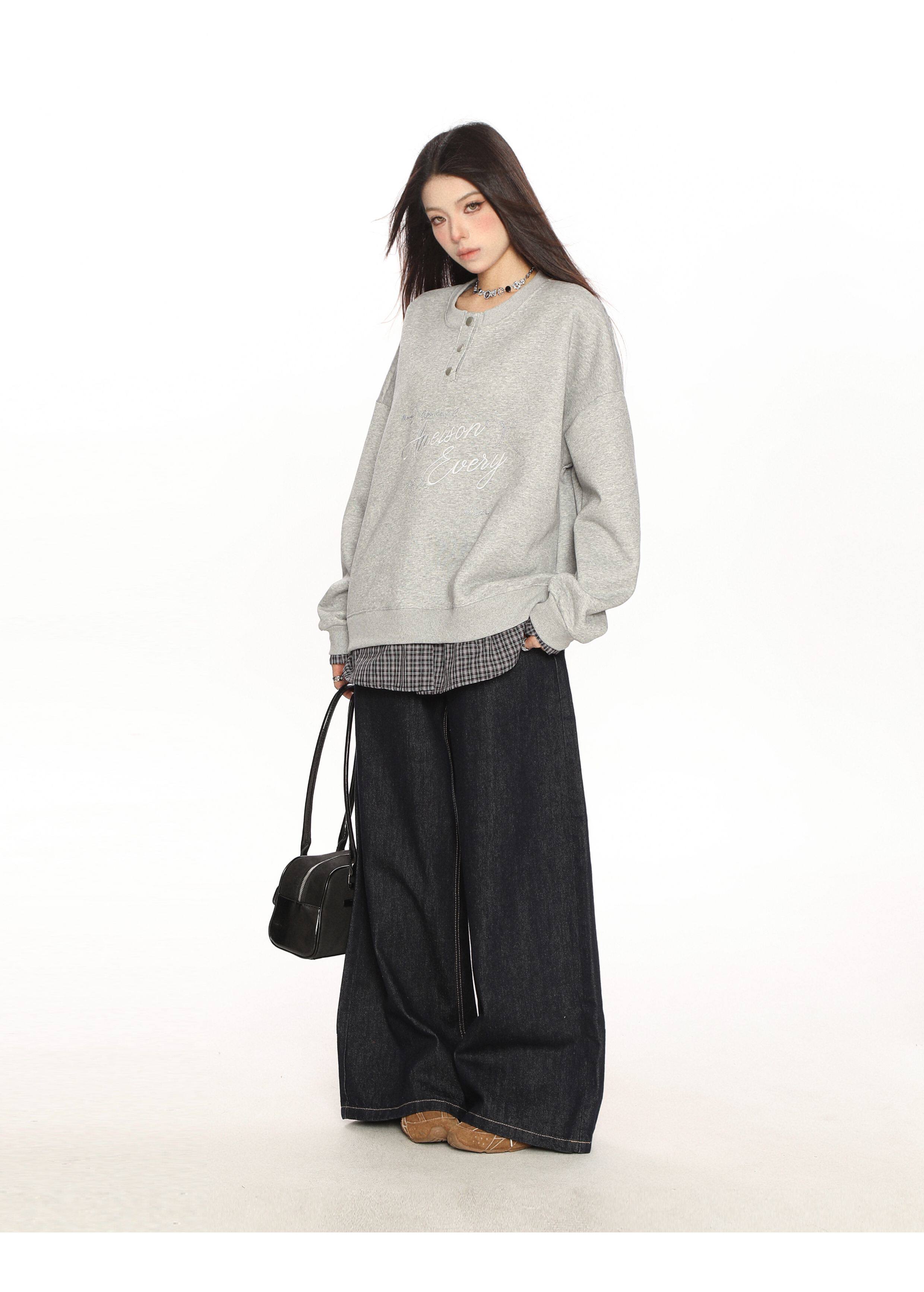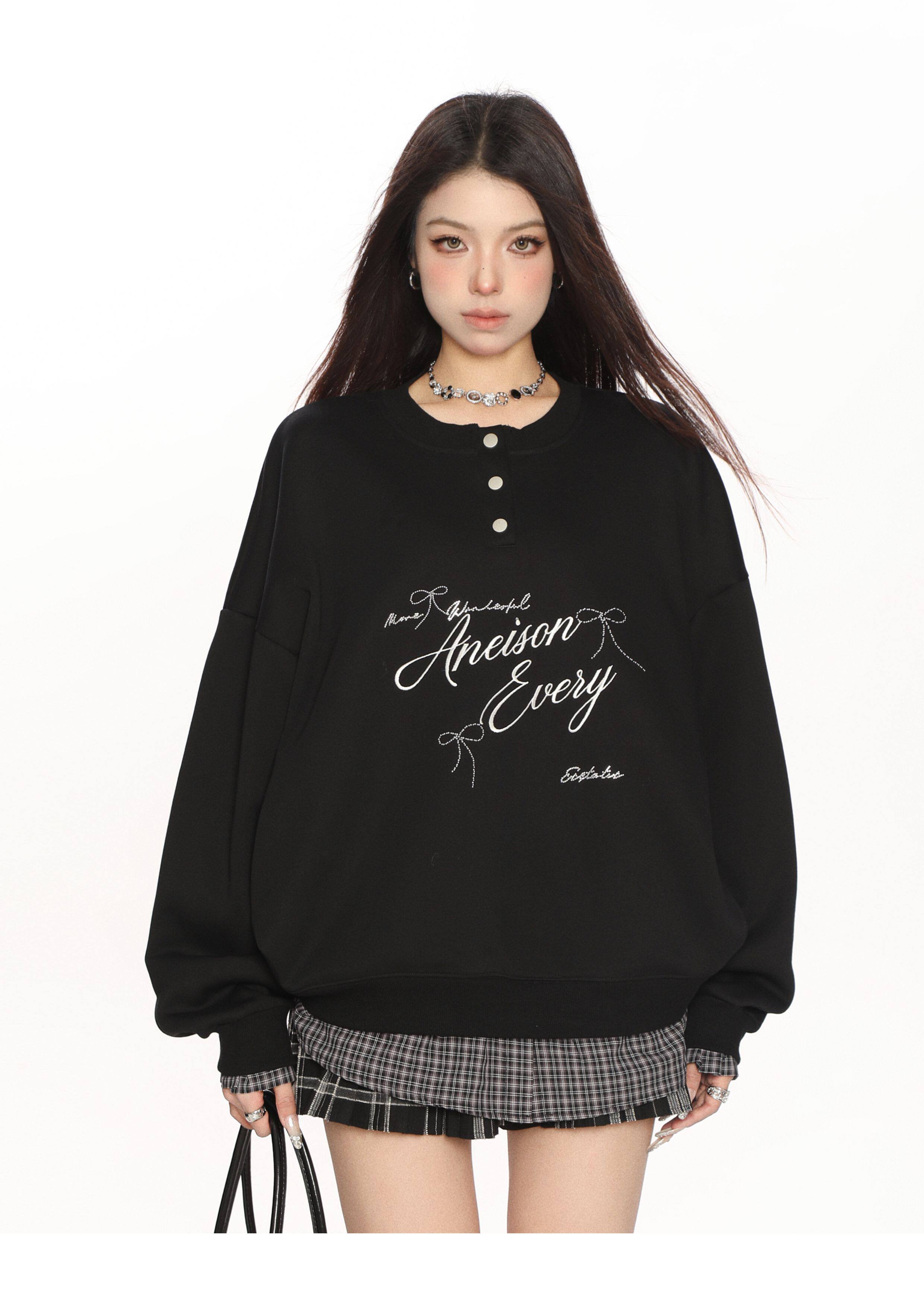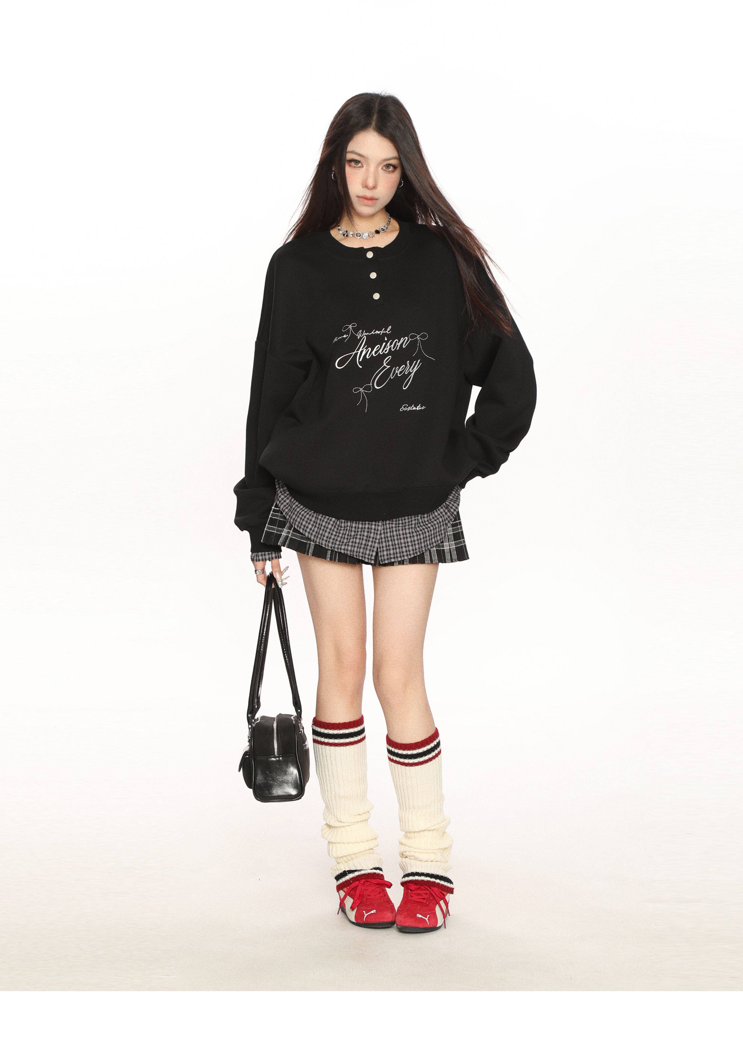 學院風假兩件拼接刺繡字母衛衣女春秋慵懶風休閑寬松上衣