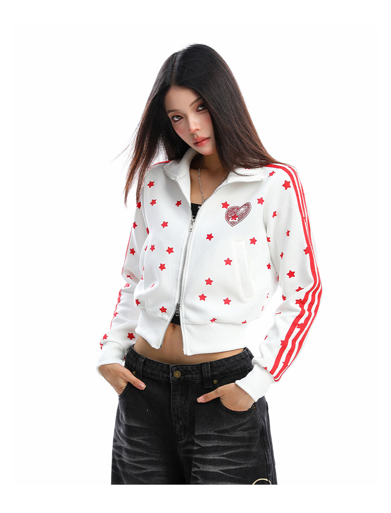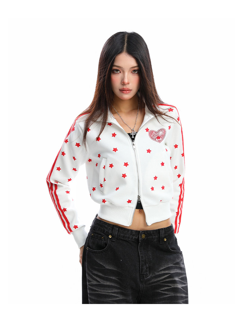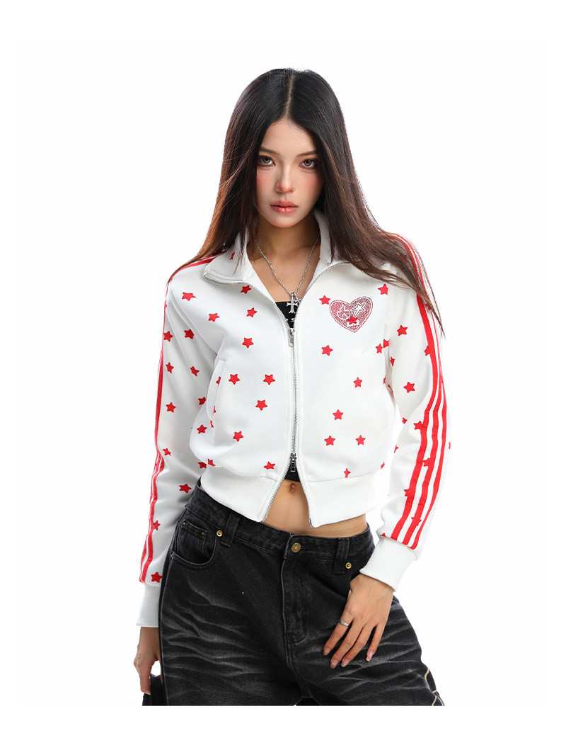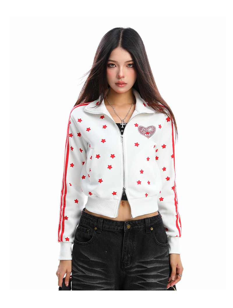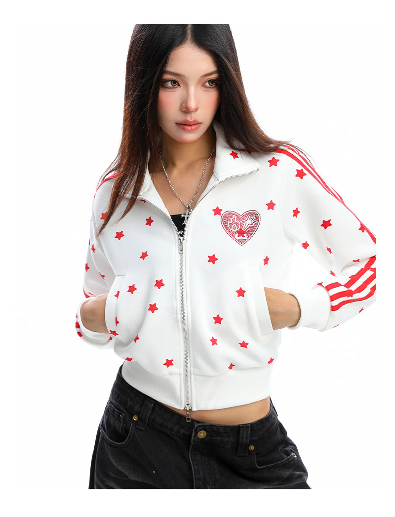 美式燙鉆星星杠條立領衛衣女秋季設計感顯瘦短款拉鏈外套