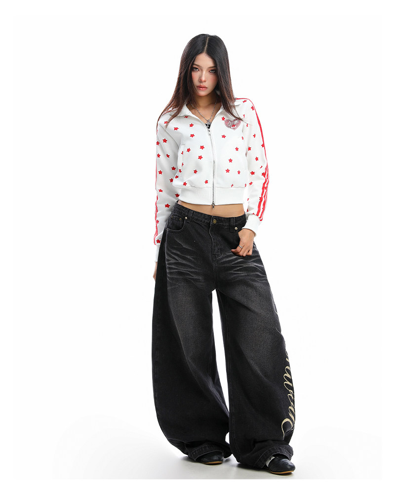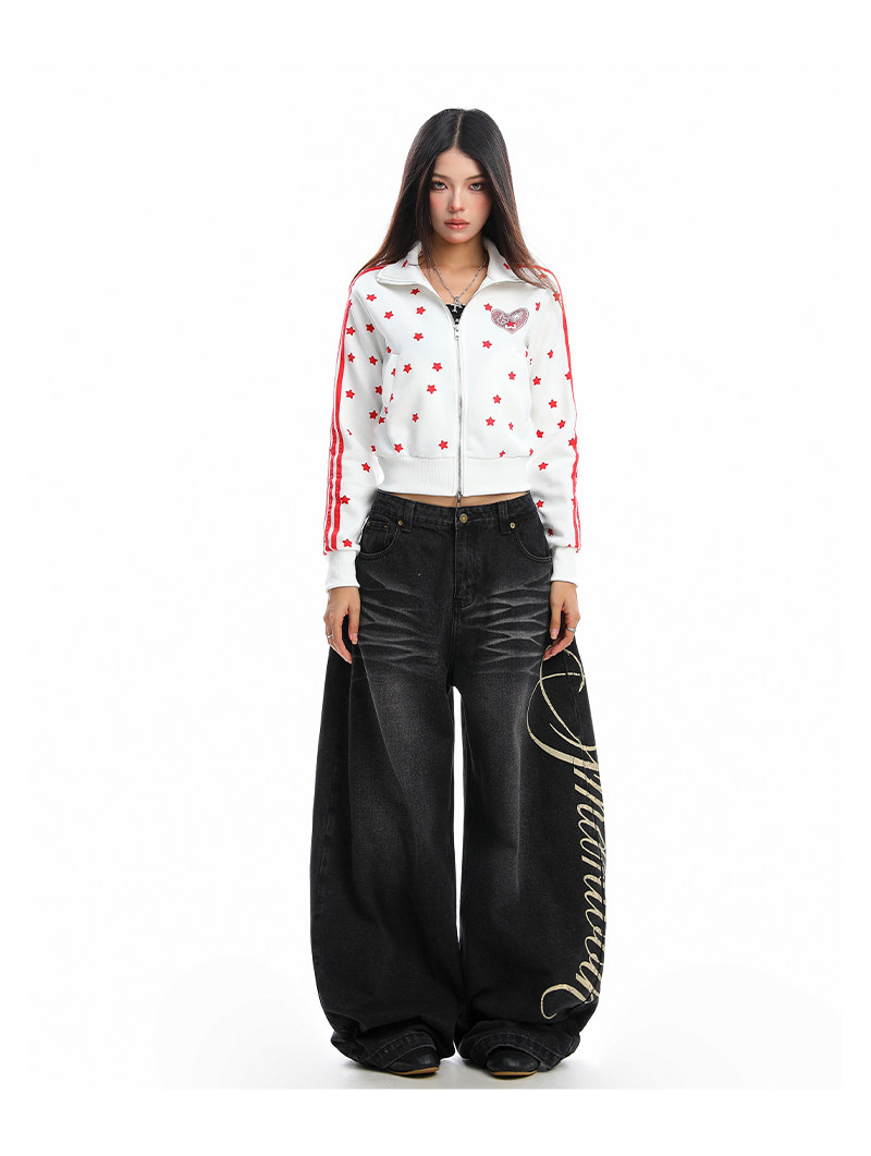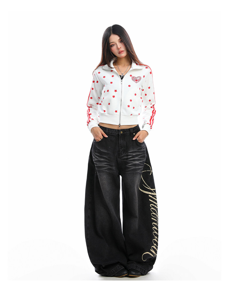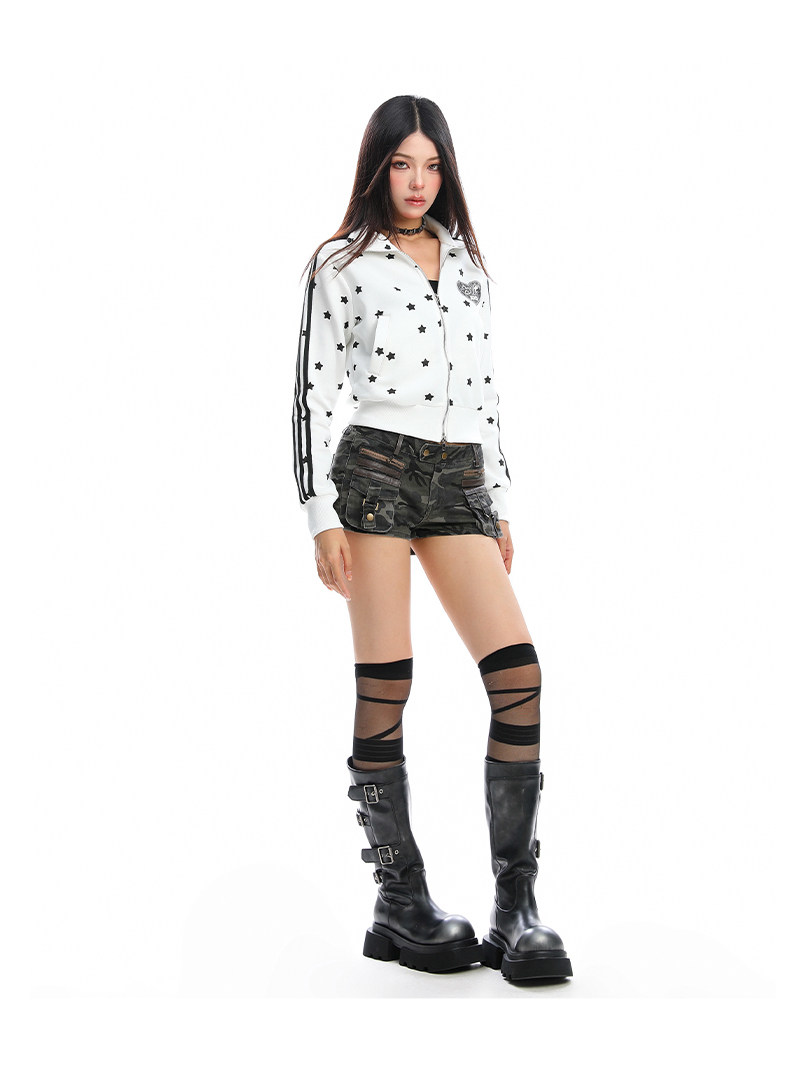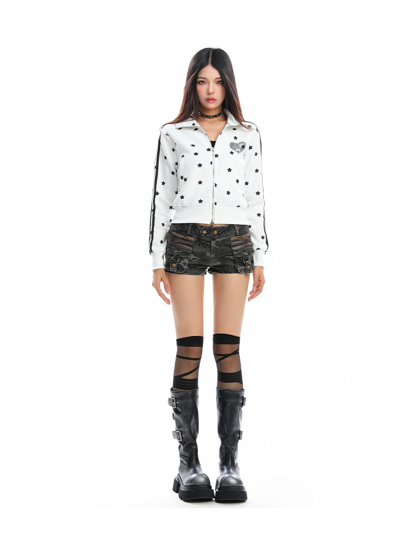 美式燙鉆星星杠條立領衛衣女秋季設計感顯瘦短款拉鏈外套