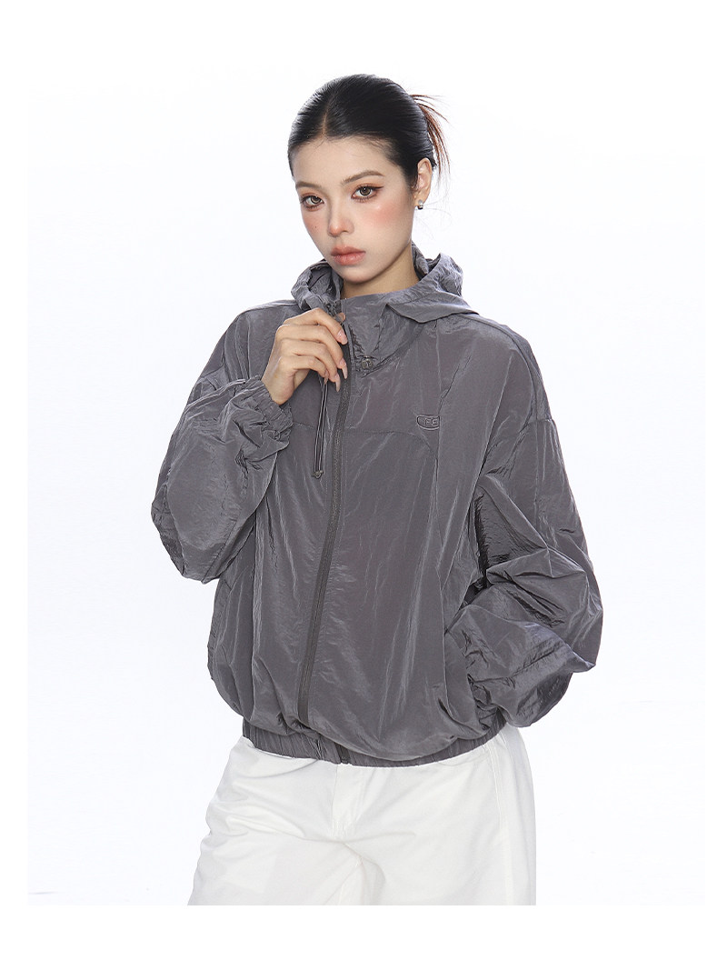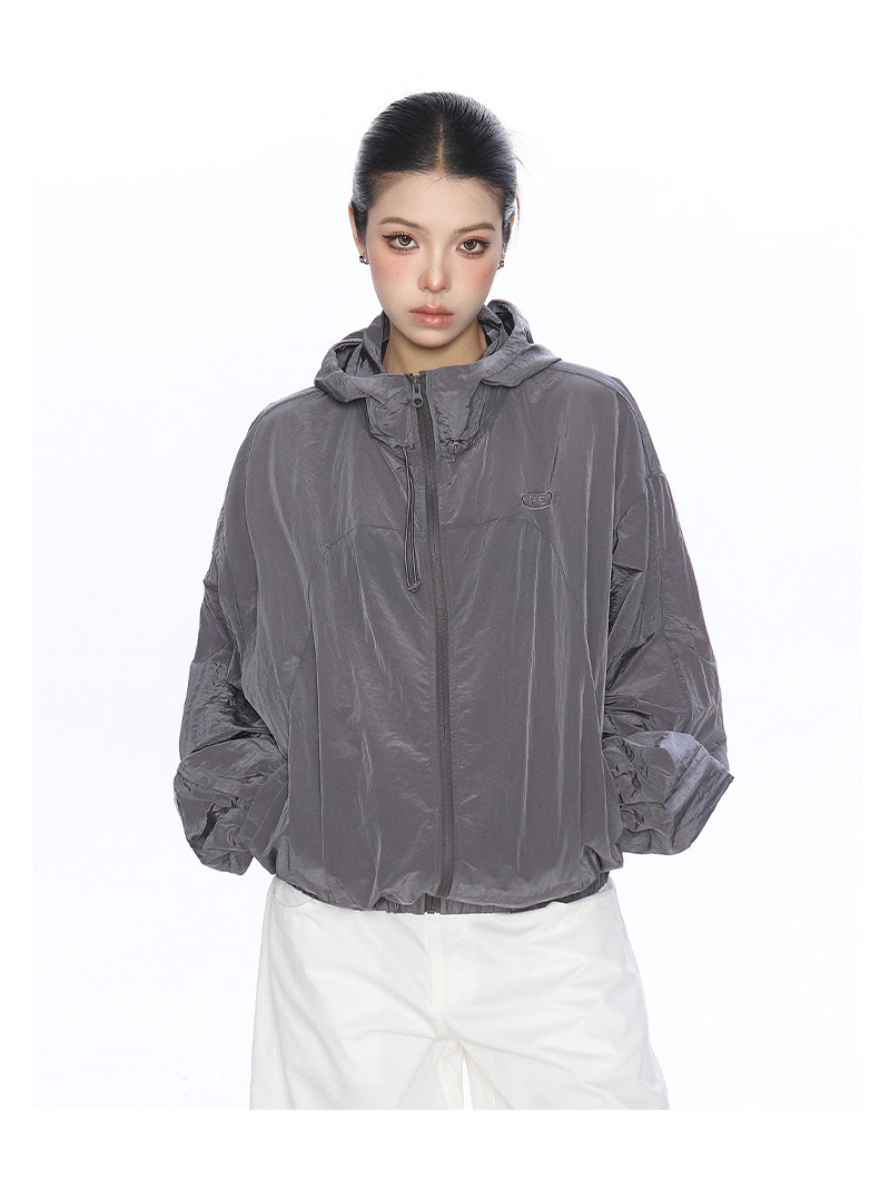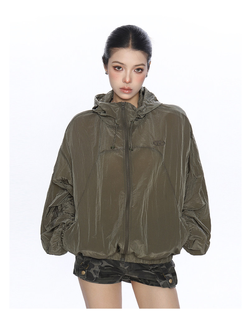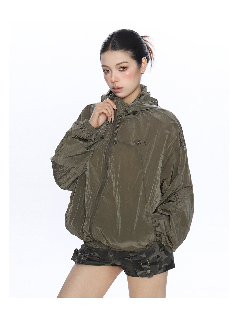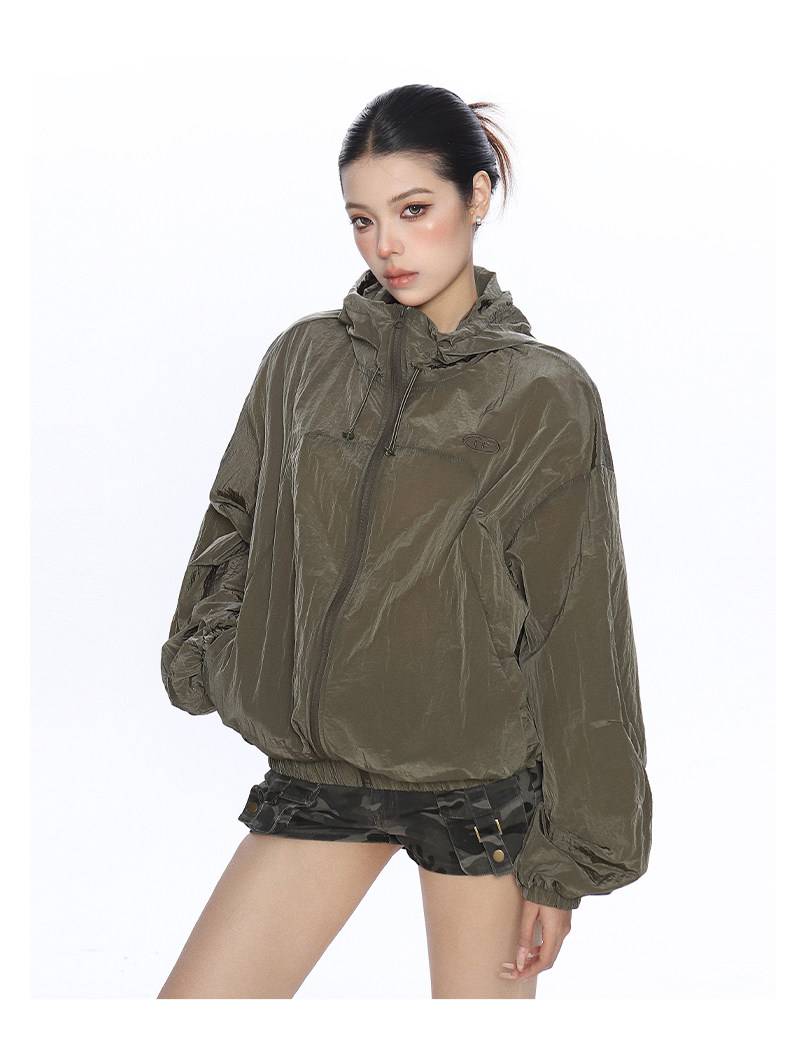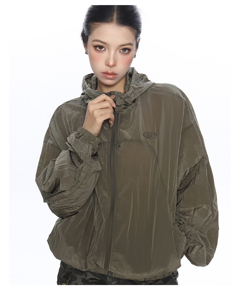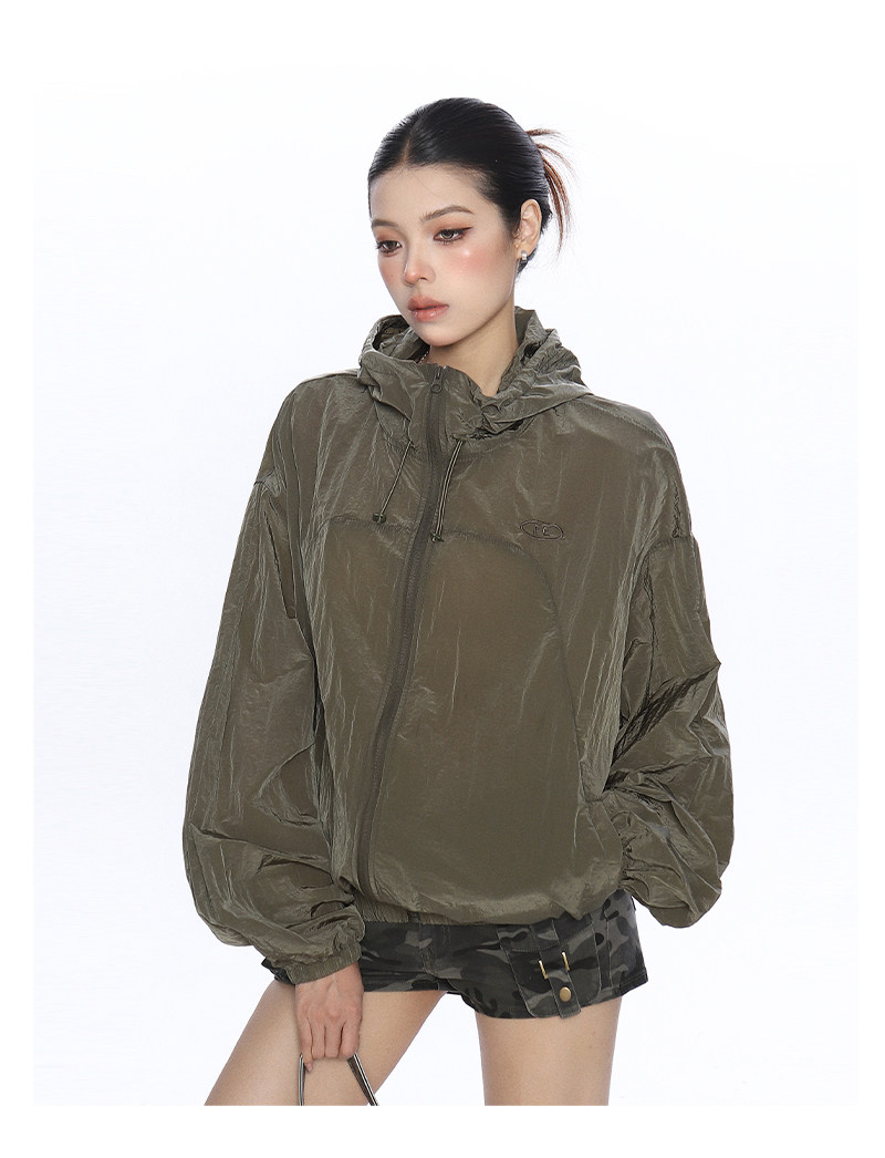 美式設計感連帽薄款透氣防曬衣女夏季戶外防風工裝外套潮