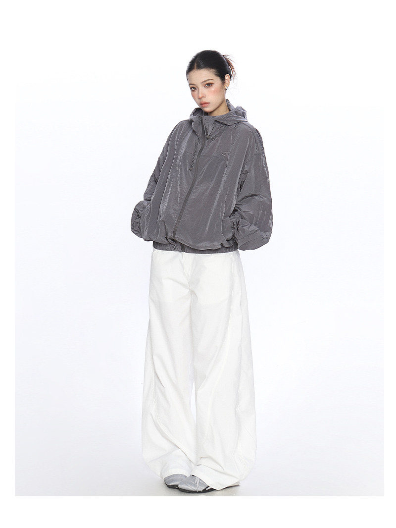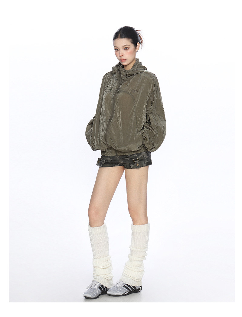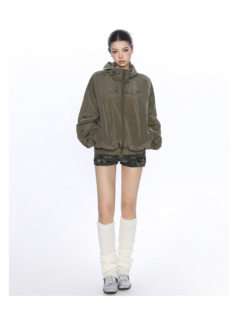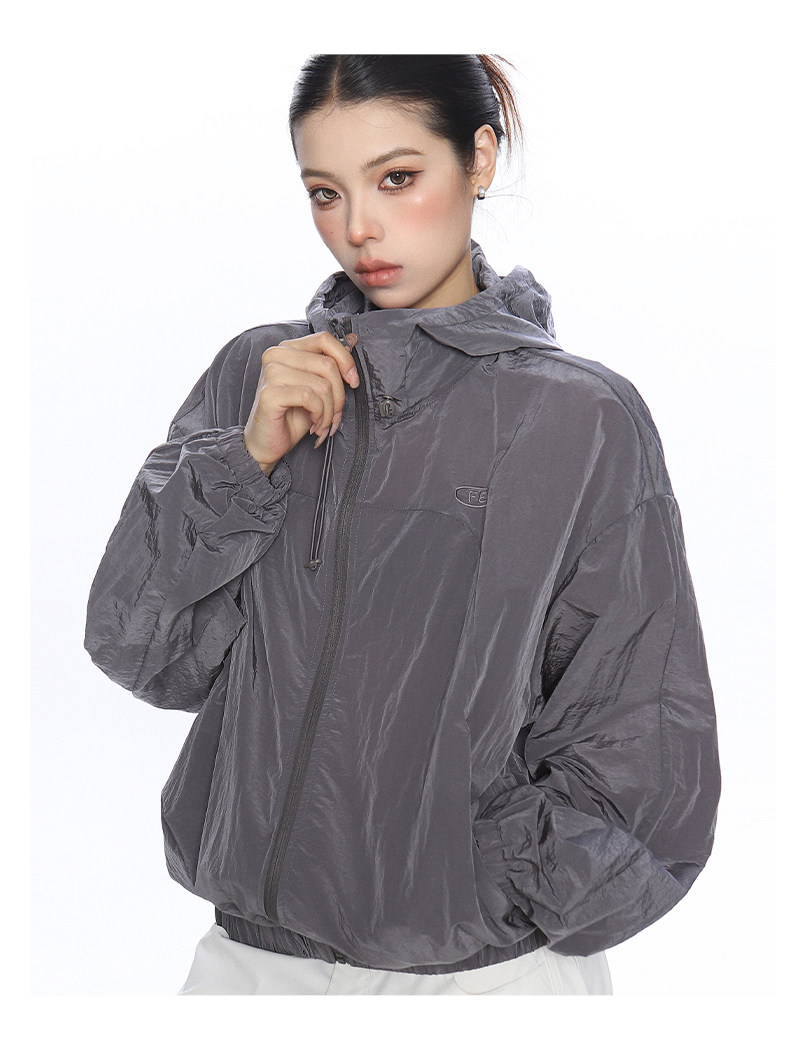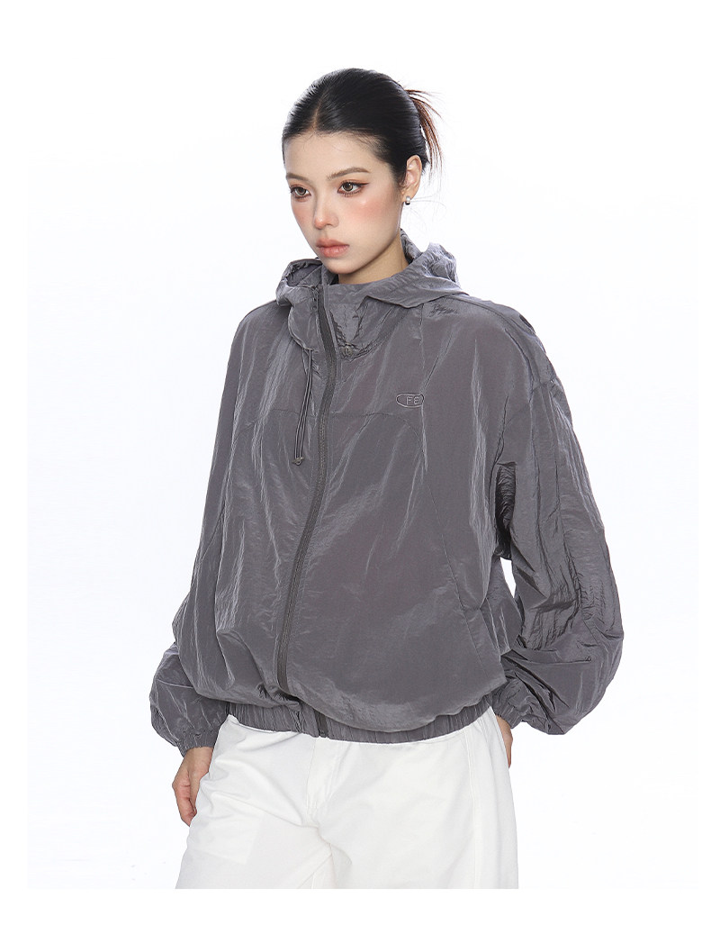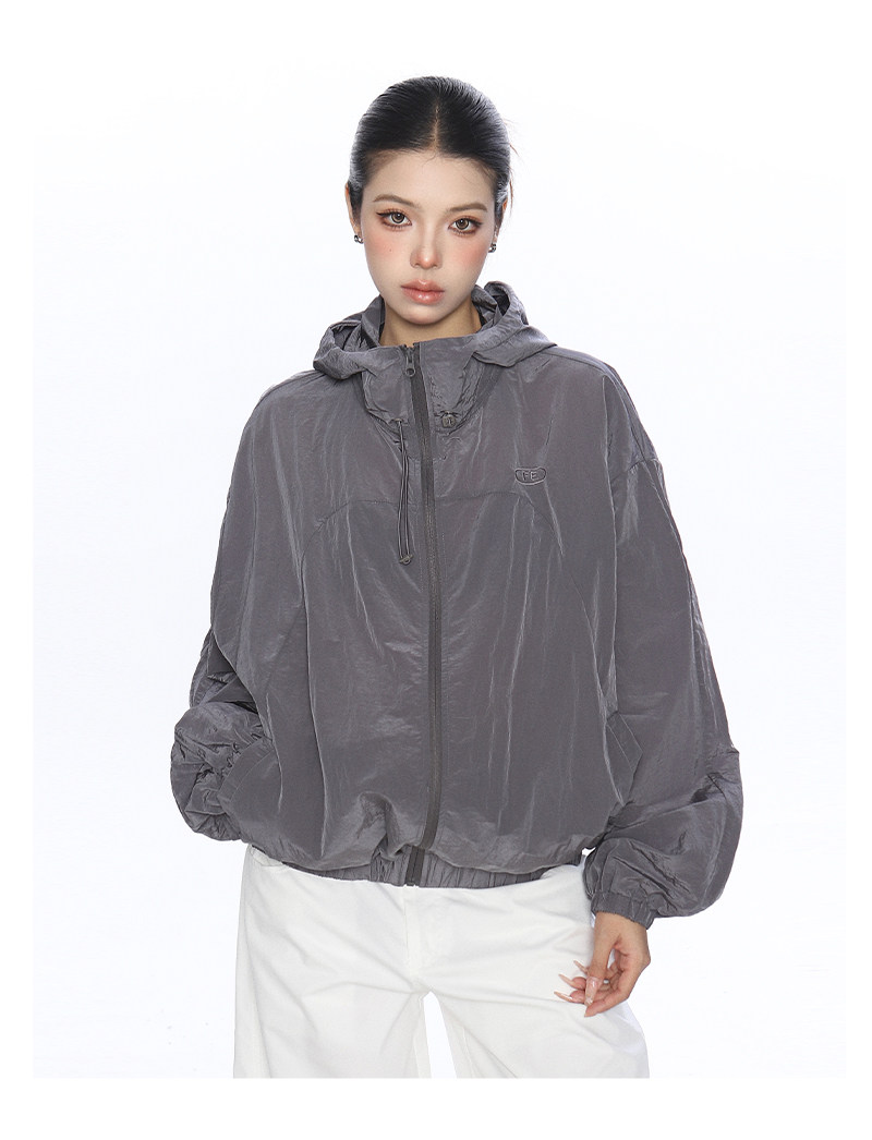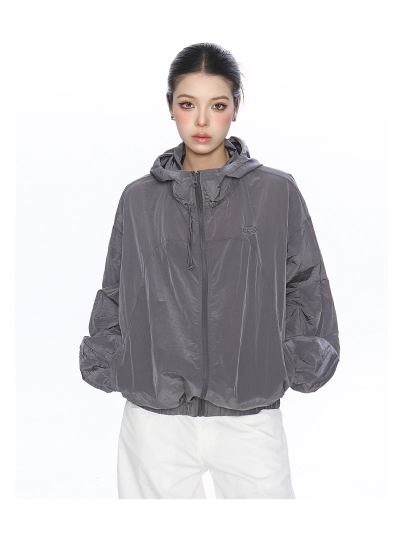 美式設計感連帽薄款透氣防曬衣女夏季戶外防風工裝外套潮