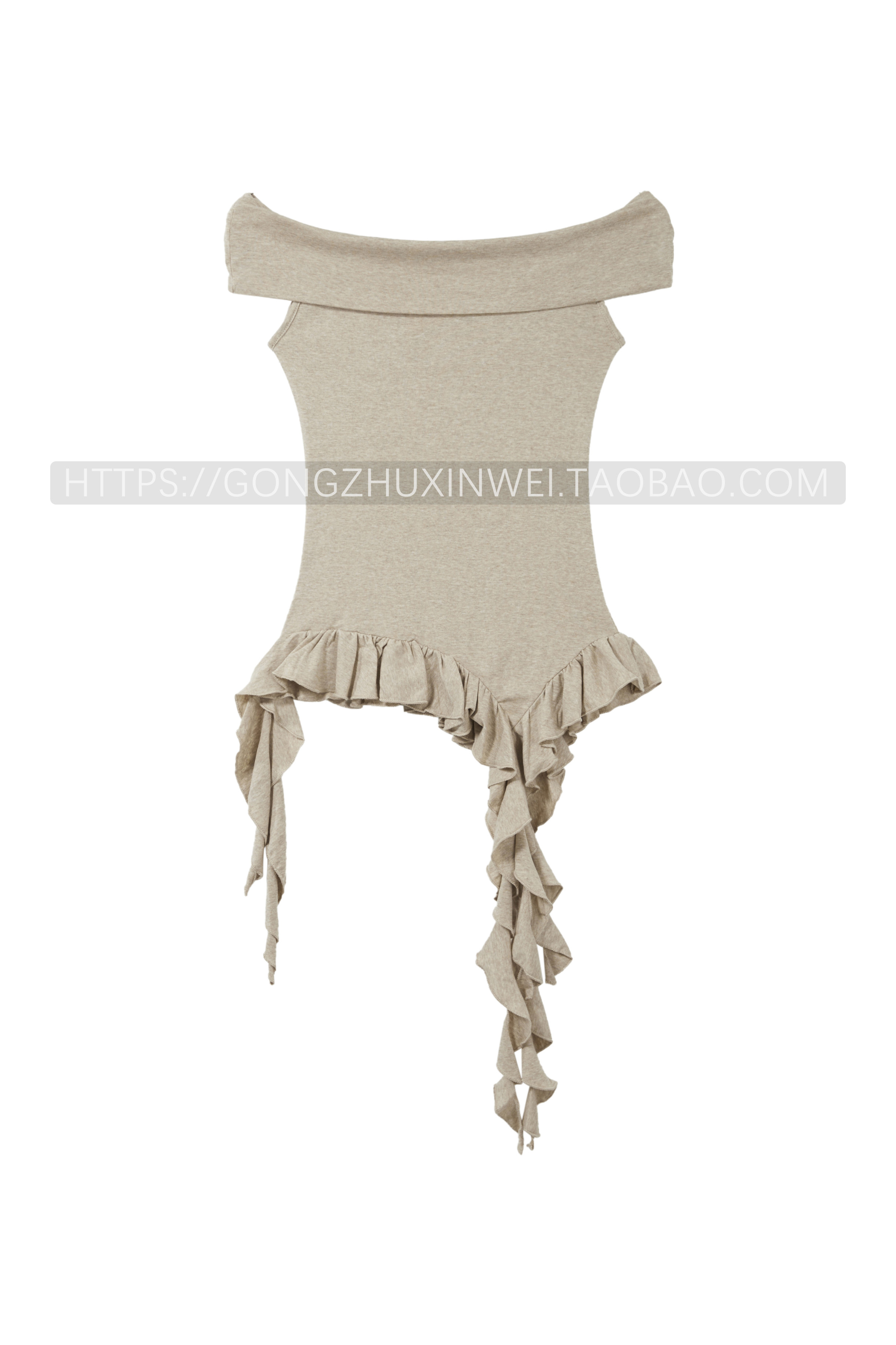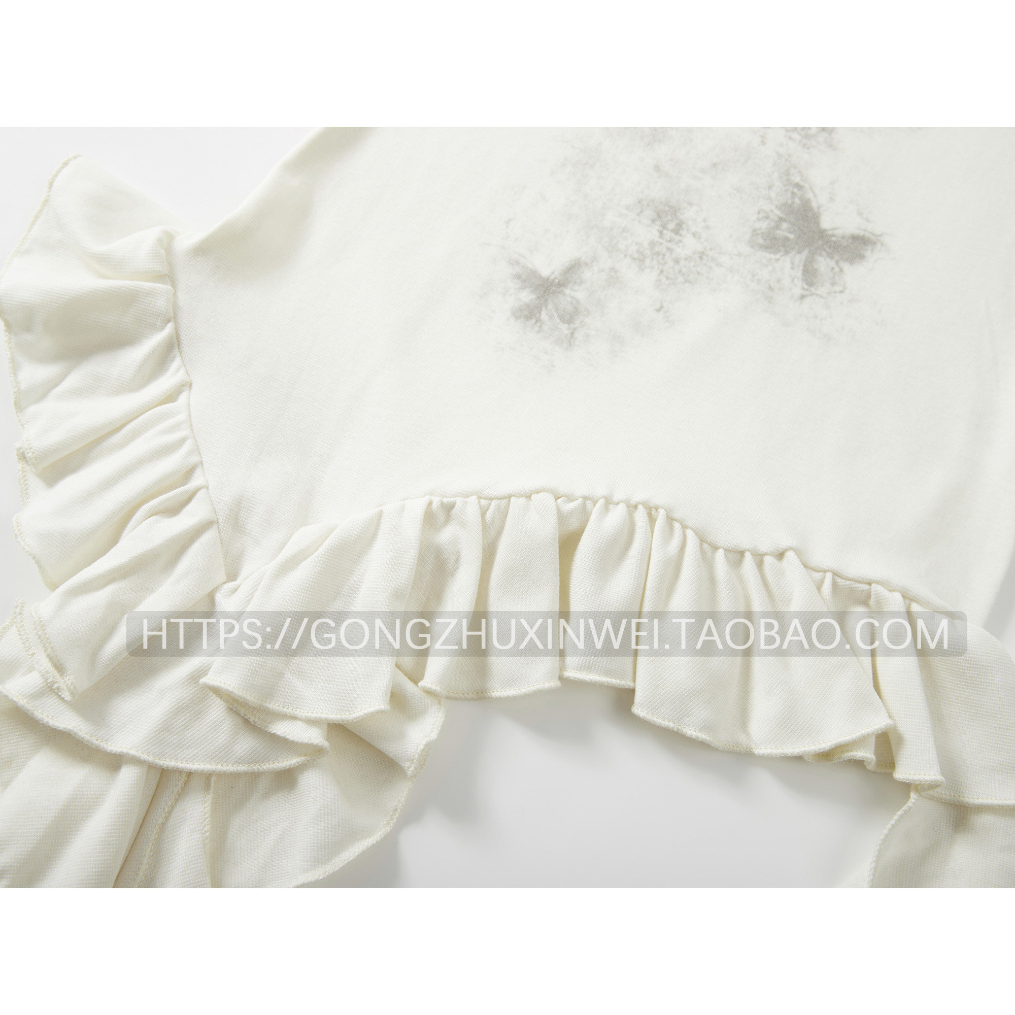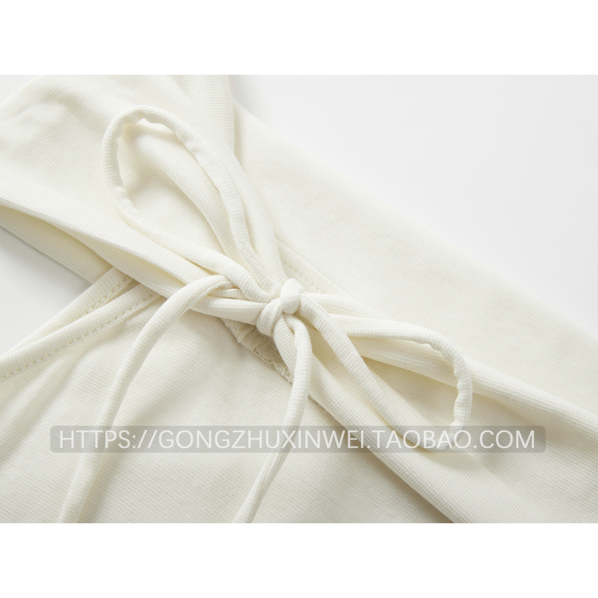 系帶蝴蝶結一字肩短袖T恤女2025春夏新款休閑修身飄帶印花上衣