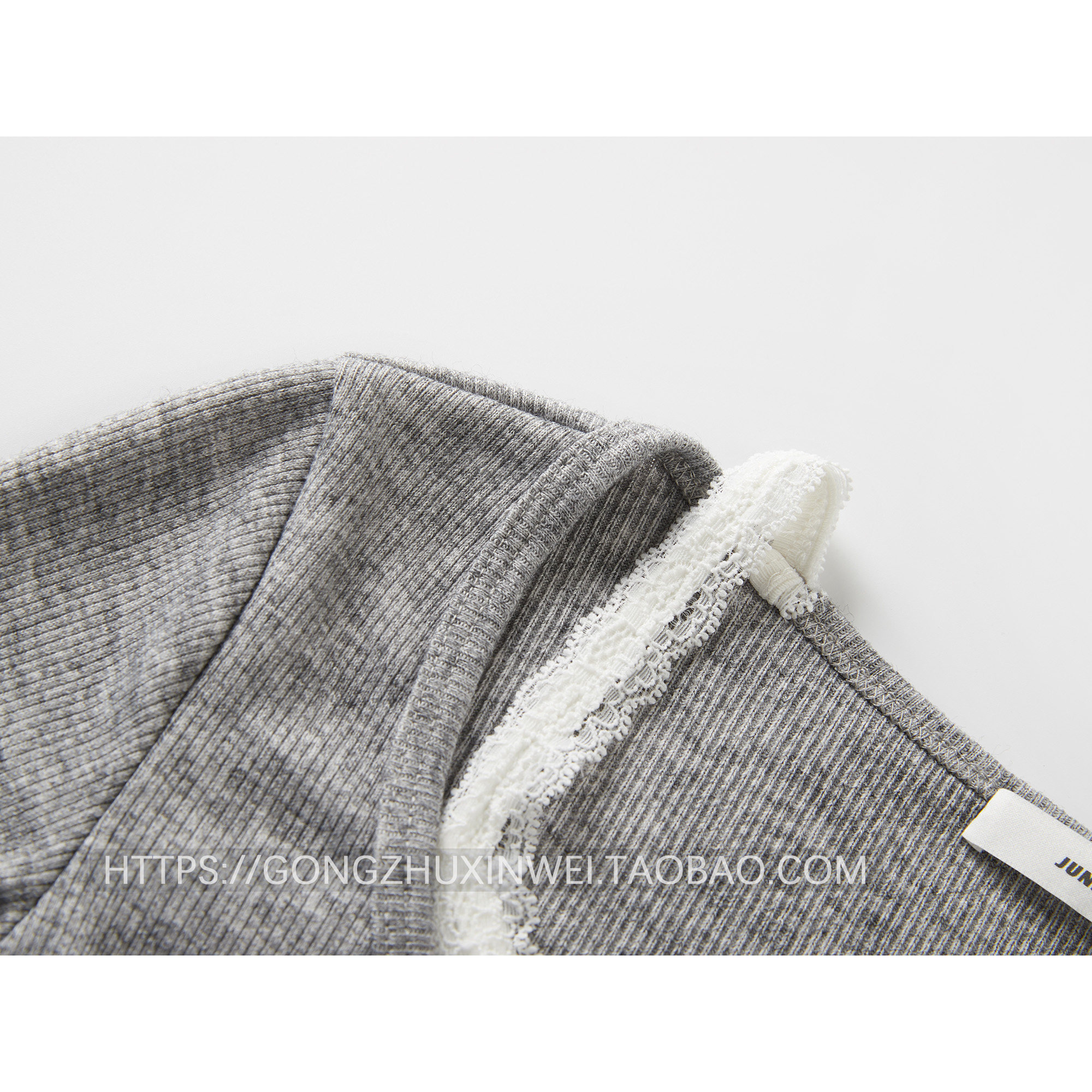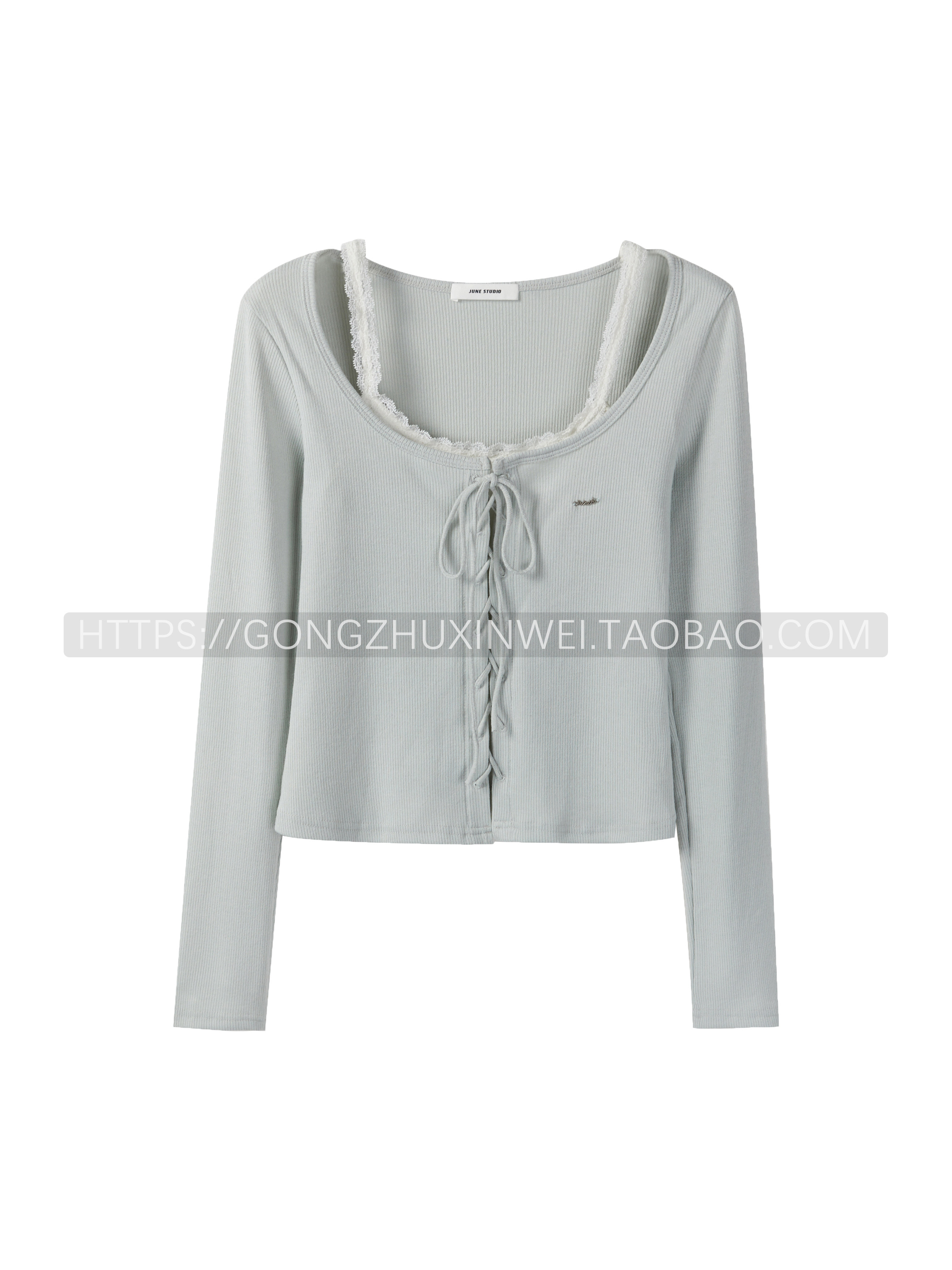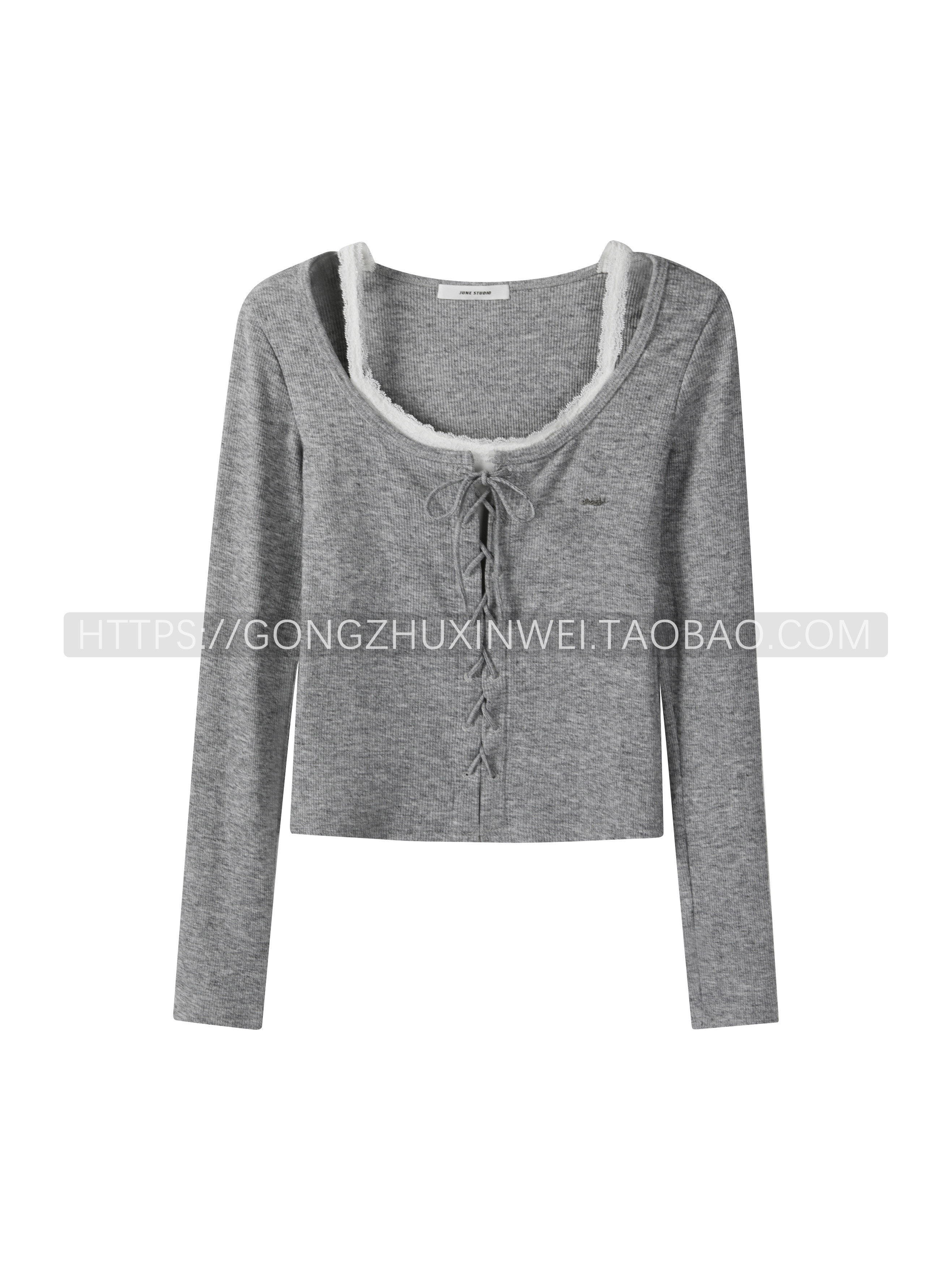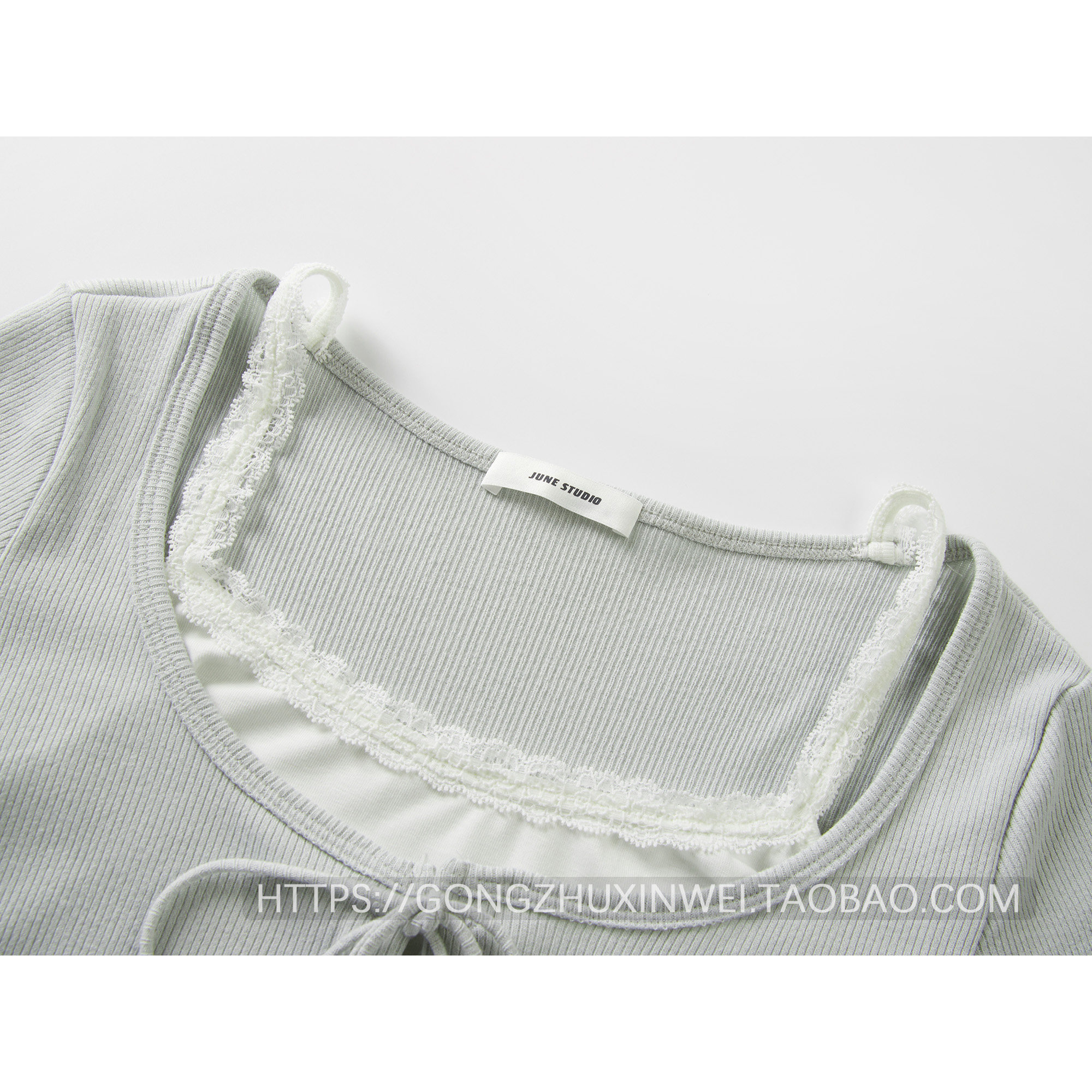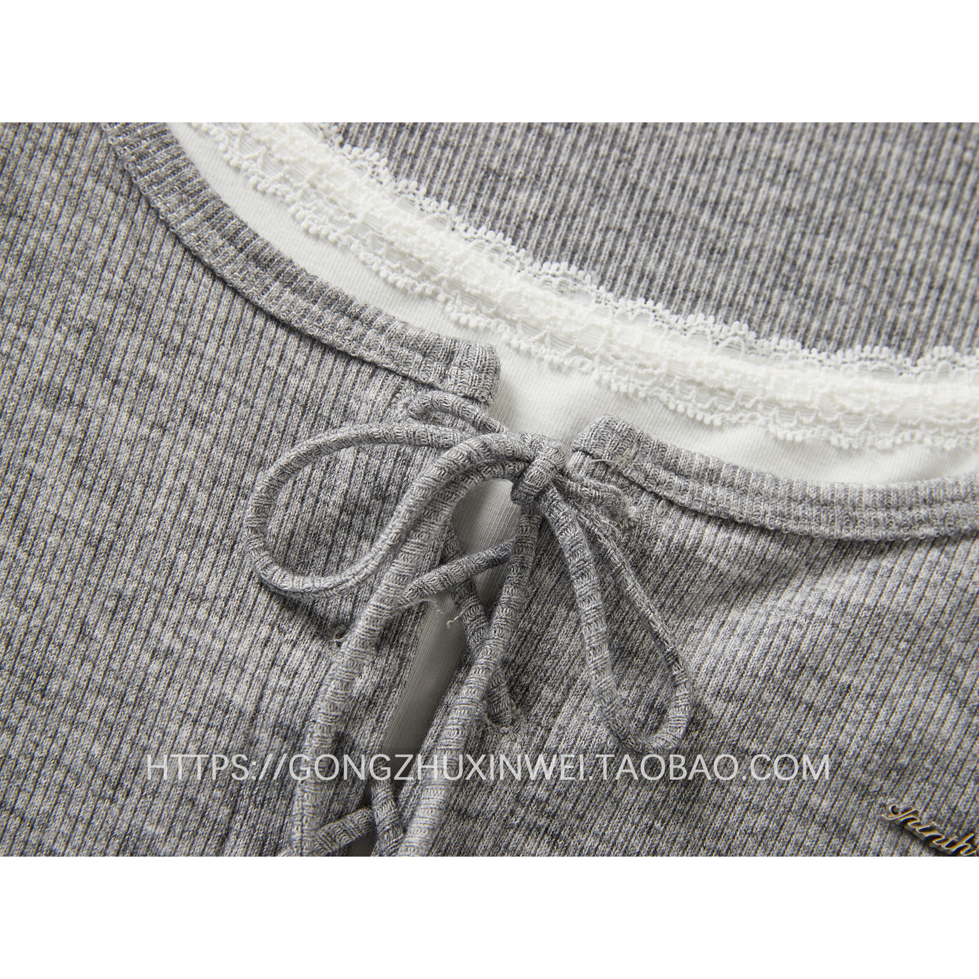 辣妹甜美蕾絲拼接假兩件長袖t恤女秋季新款修身修身顯瘦打底上衣