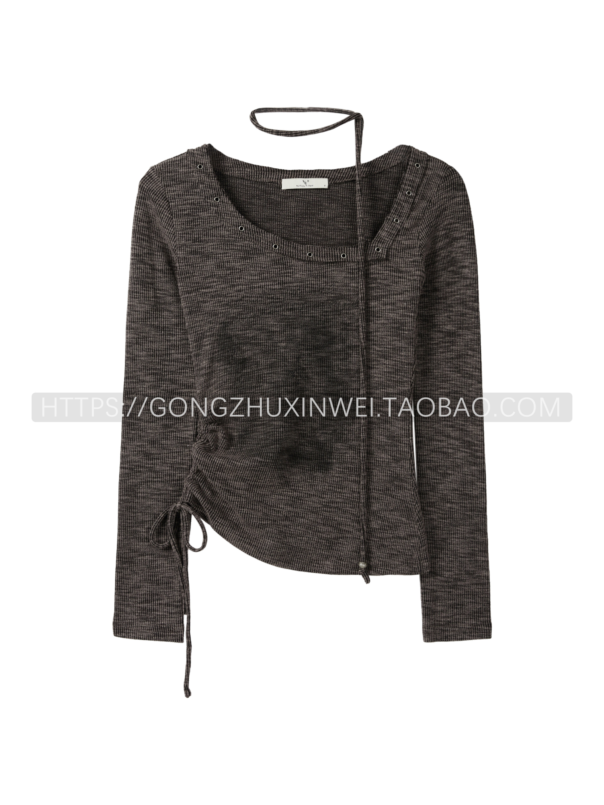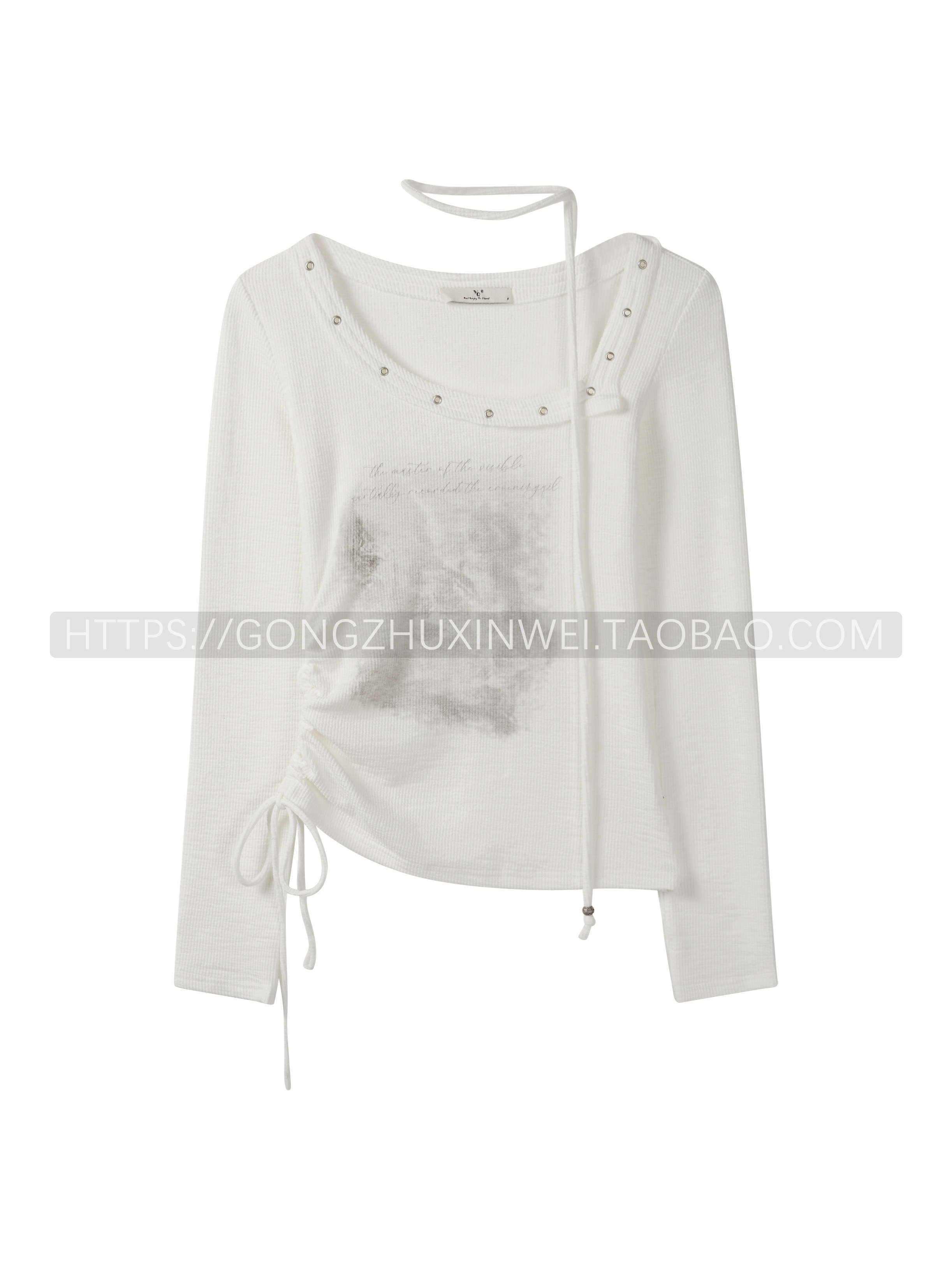 秋季新款不規則復古廢土風辣妹小眾長袖斜領T恤女印花修身上衣