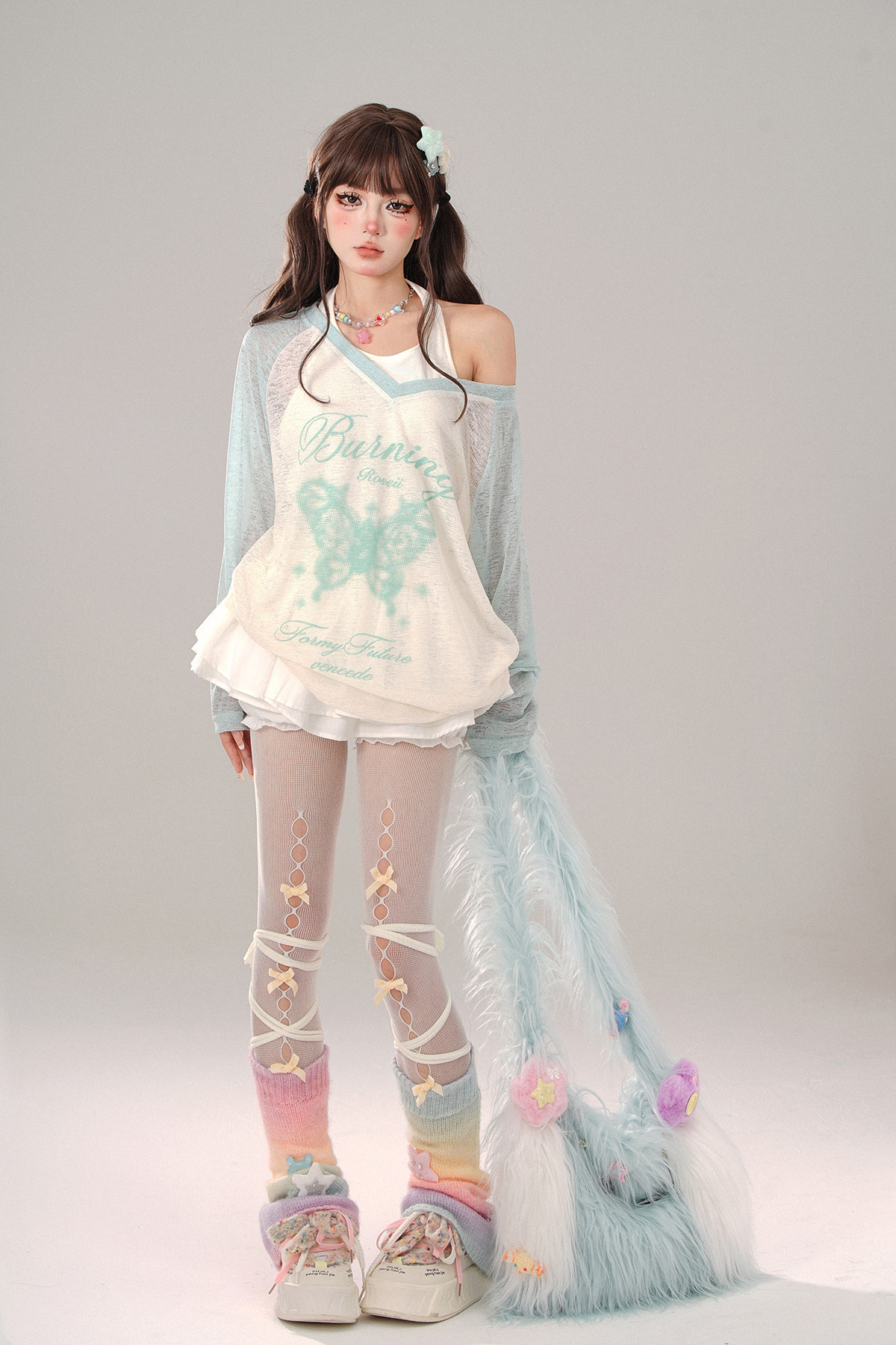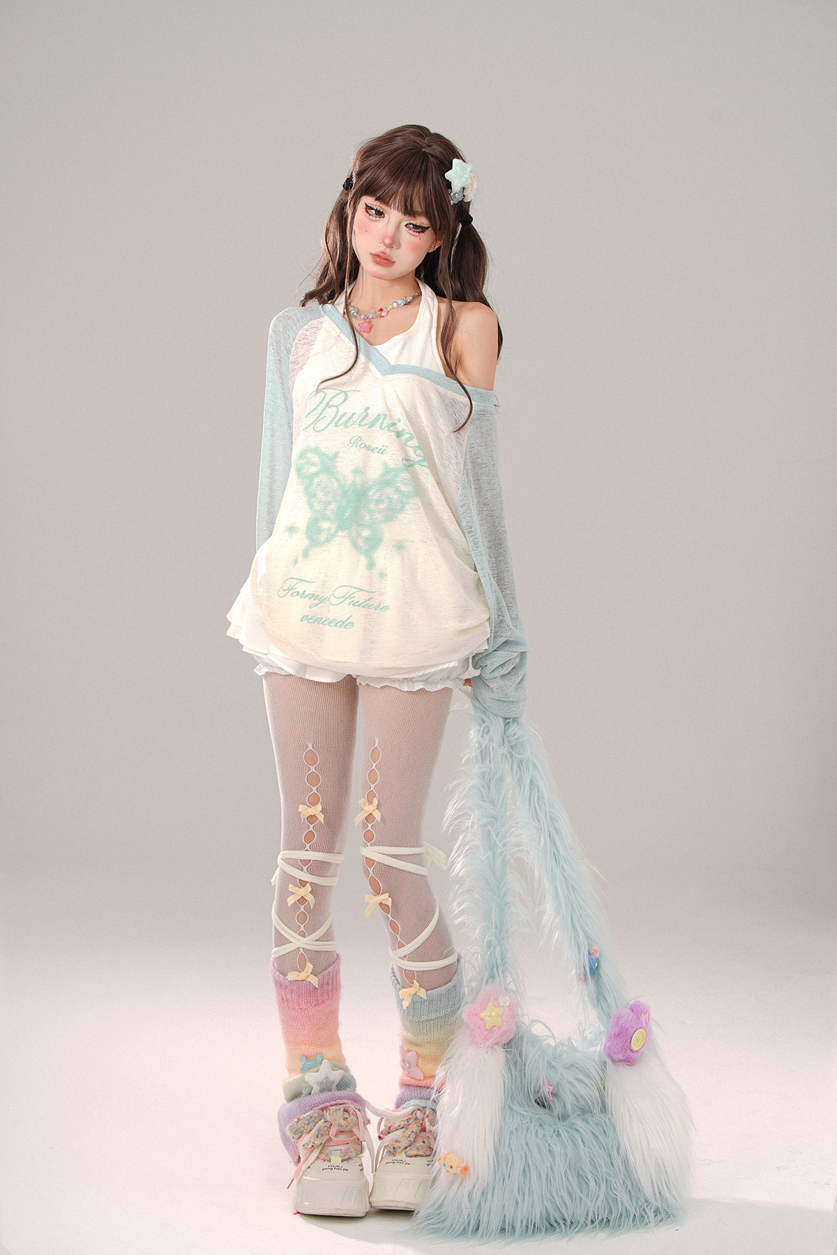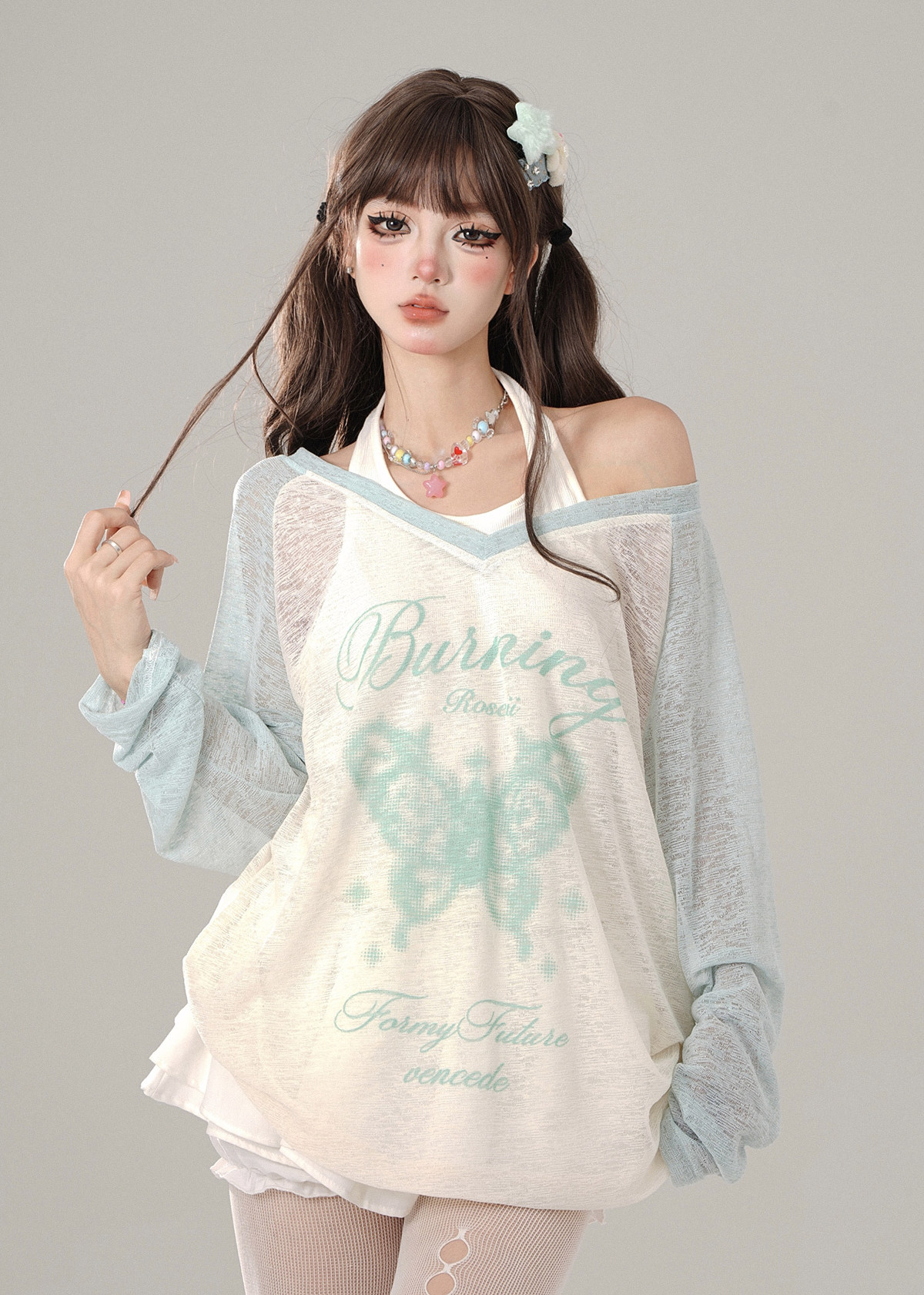 碧波蕩漾 薄荷綠T恤女外穿夏季寬松上衣防曬罩衫兩件套
