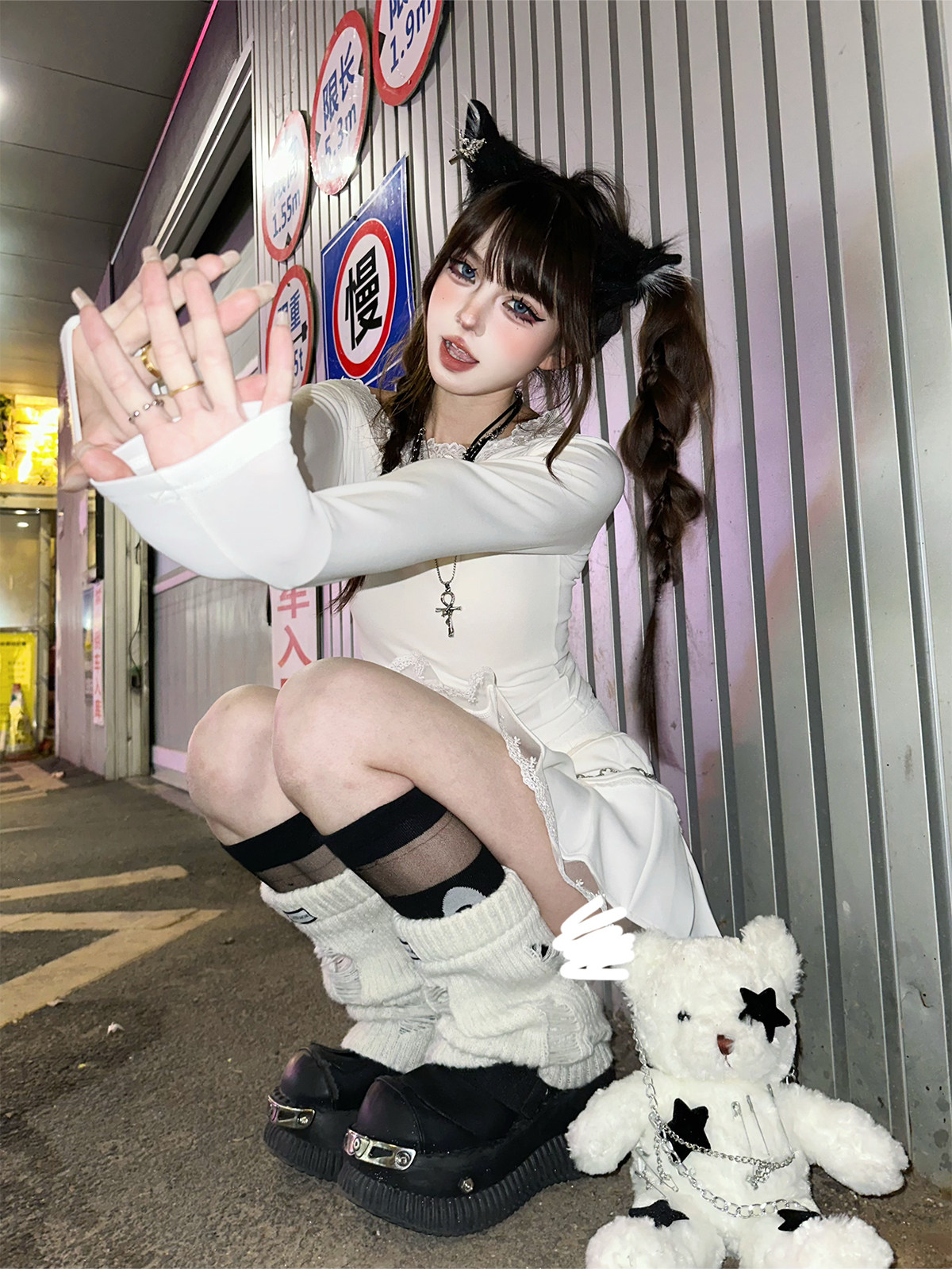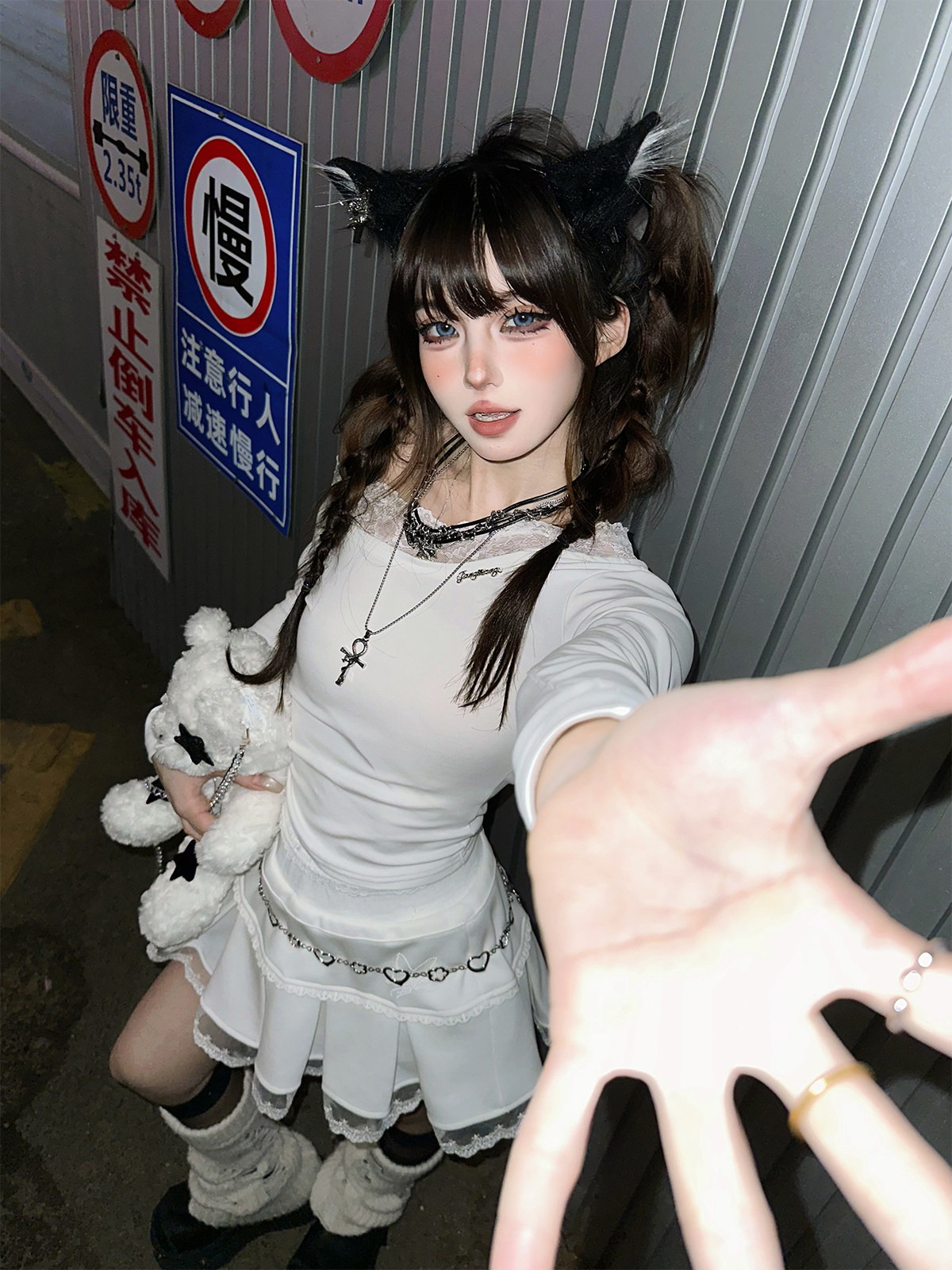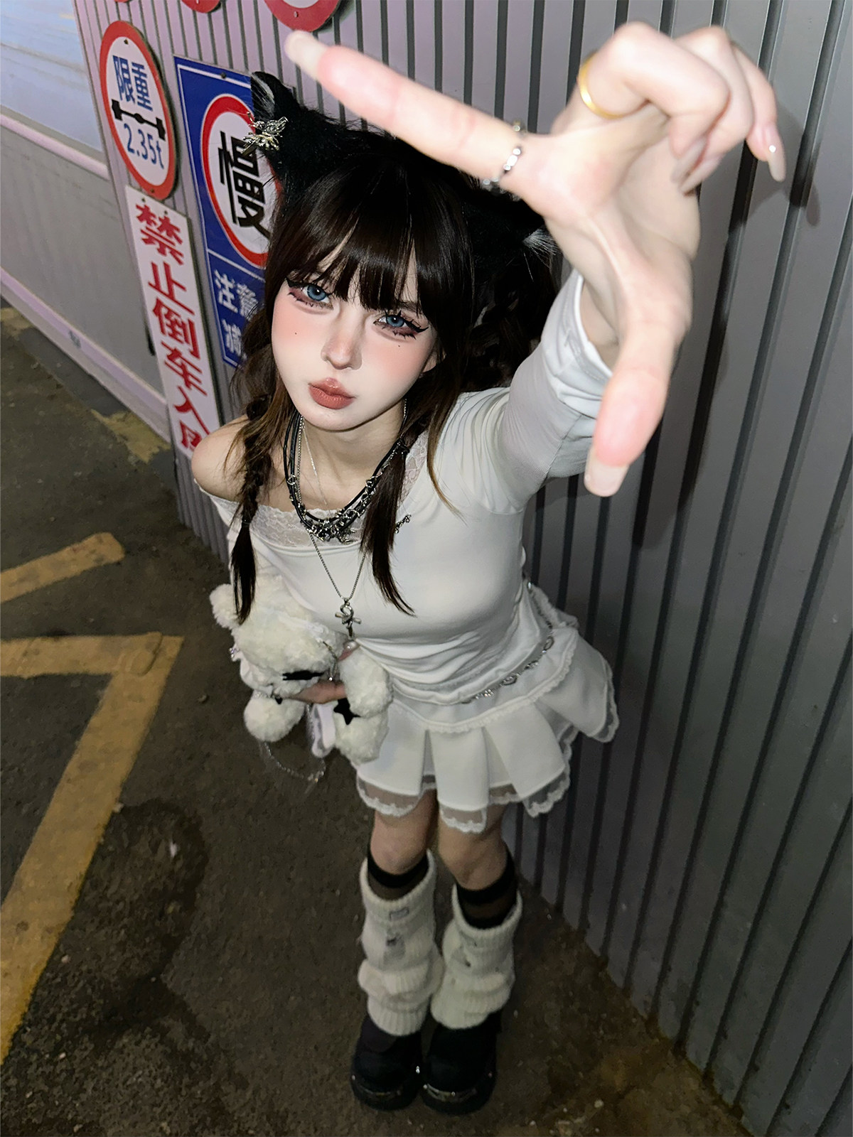 危險遊戲 一字肩辣妹蕾絲拼接T恤女春夏長袖顯瘦上衣