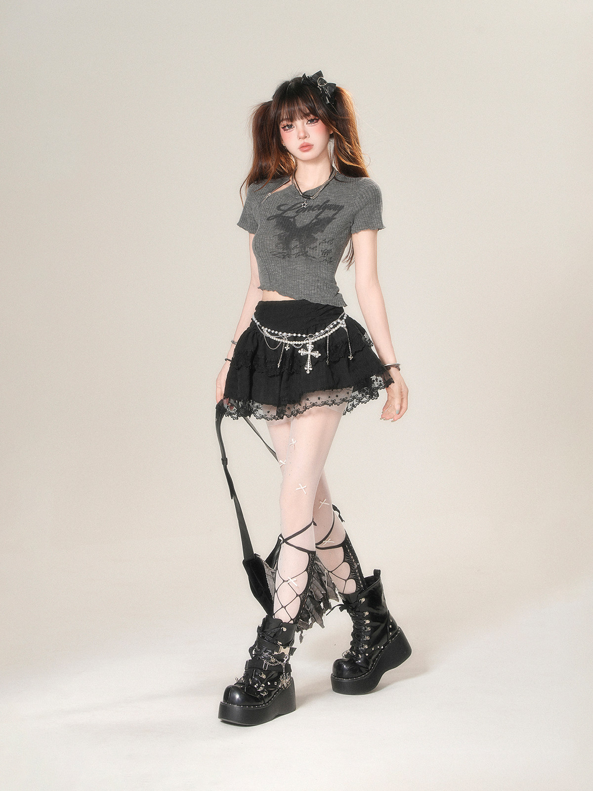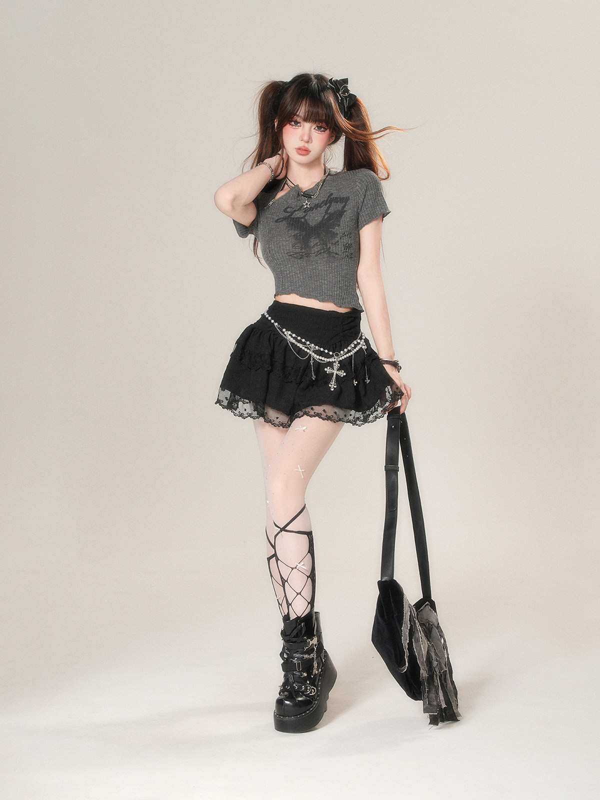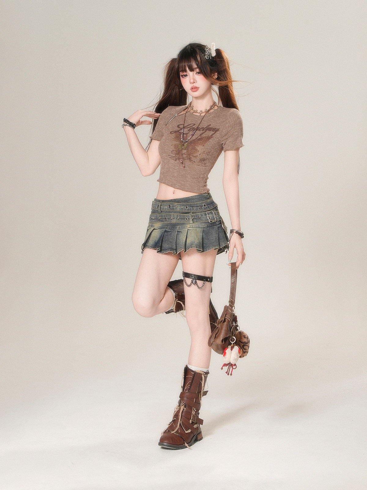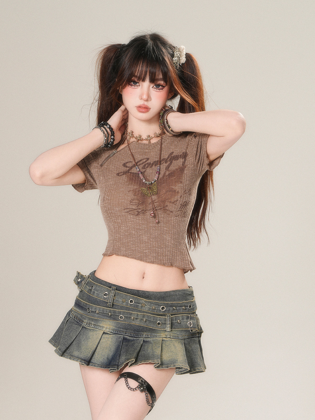 特調摩卡 正肩短袖辣妹T恤女夏修身顯瘦純欲短款上衣