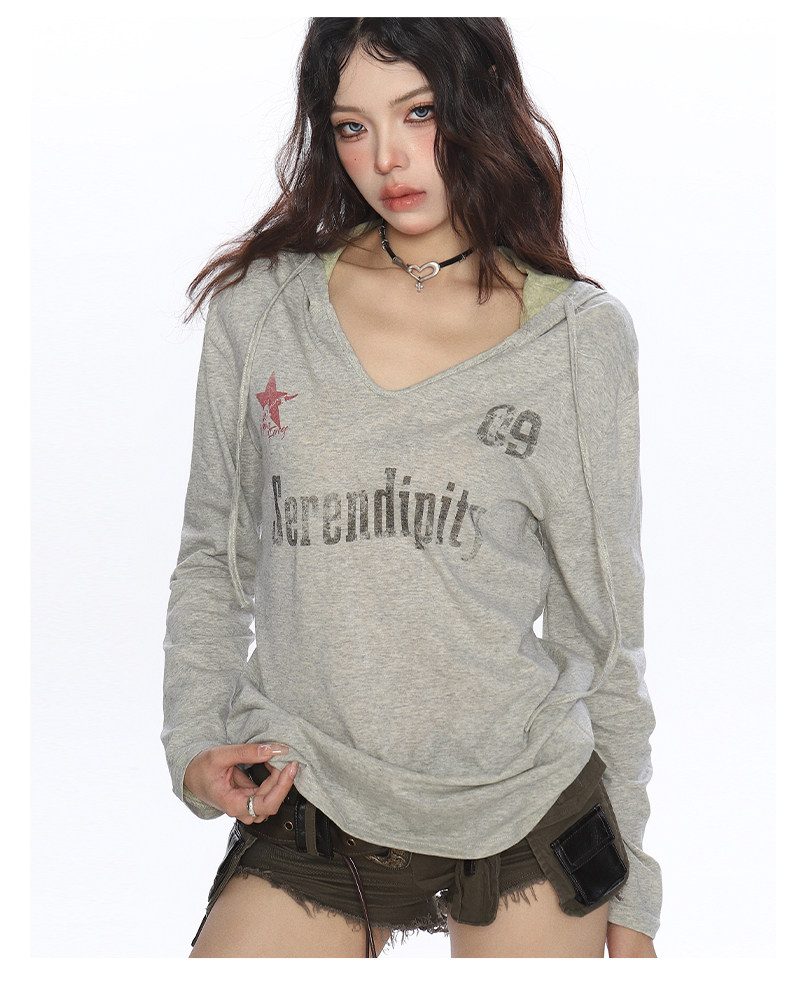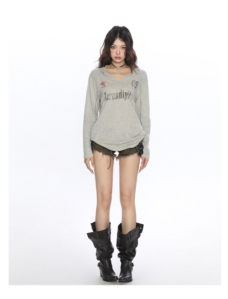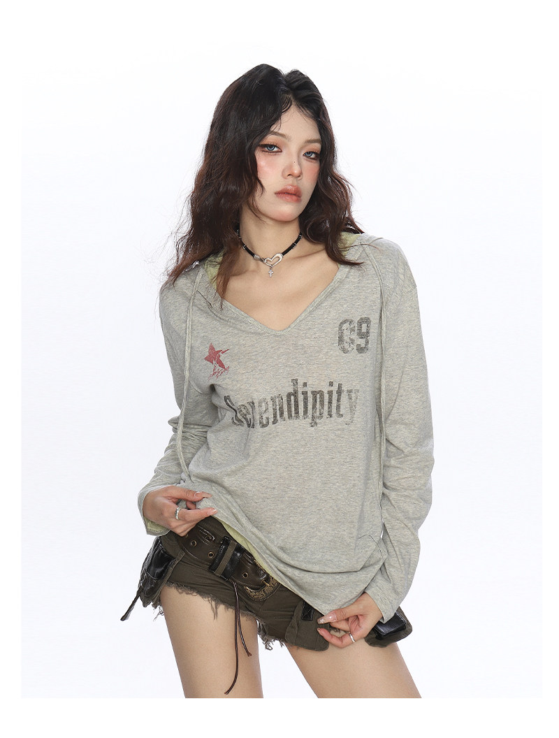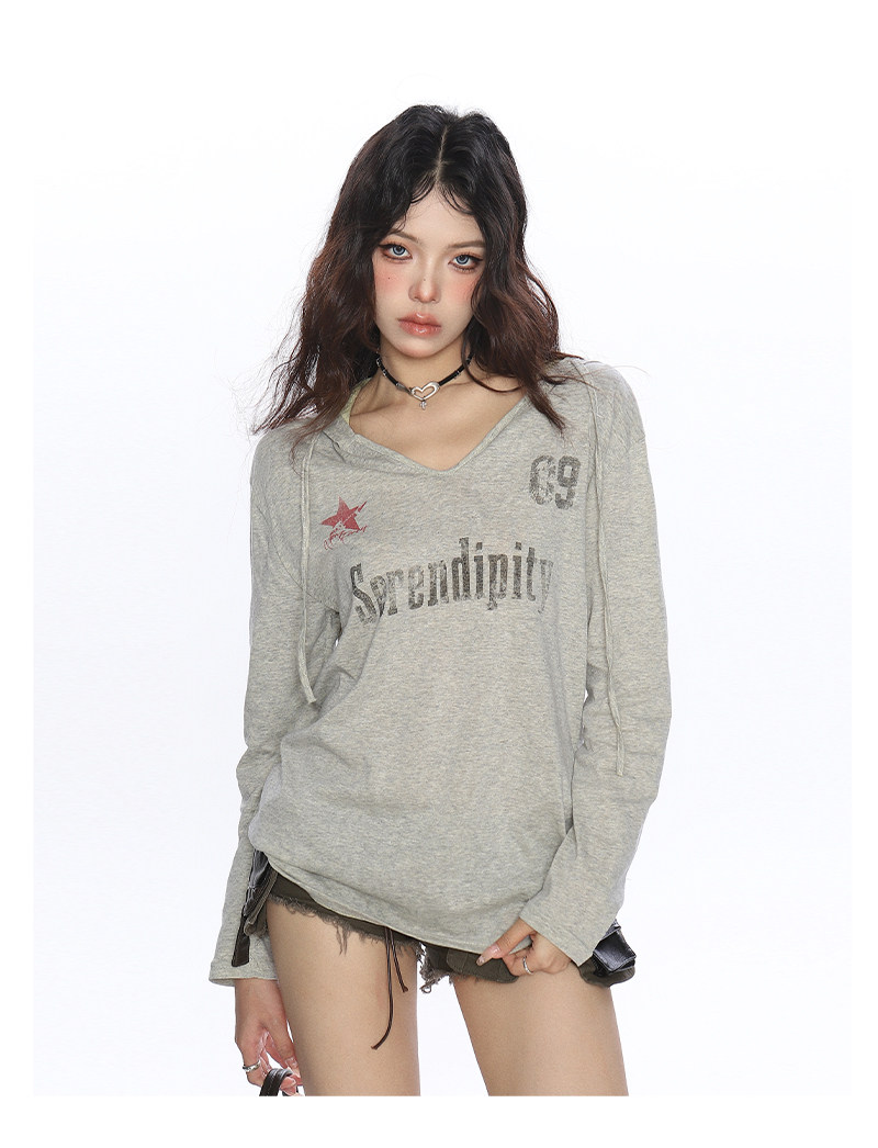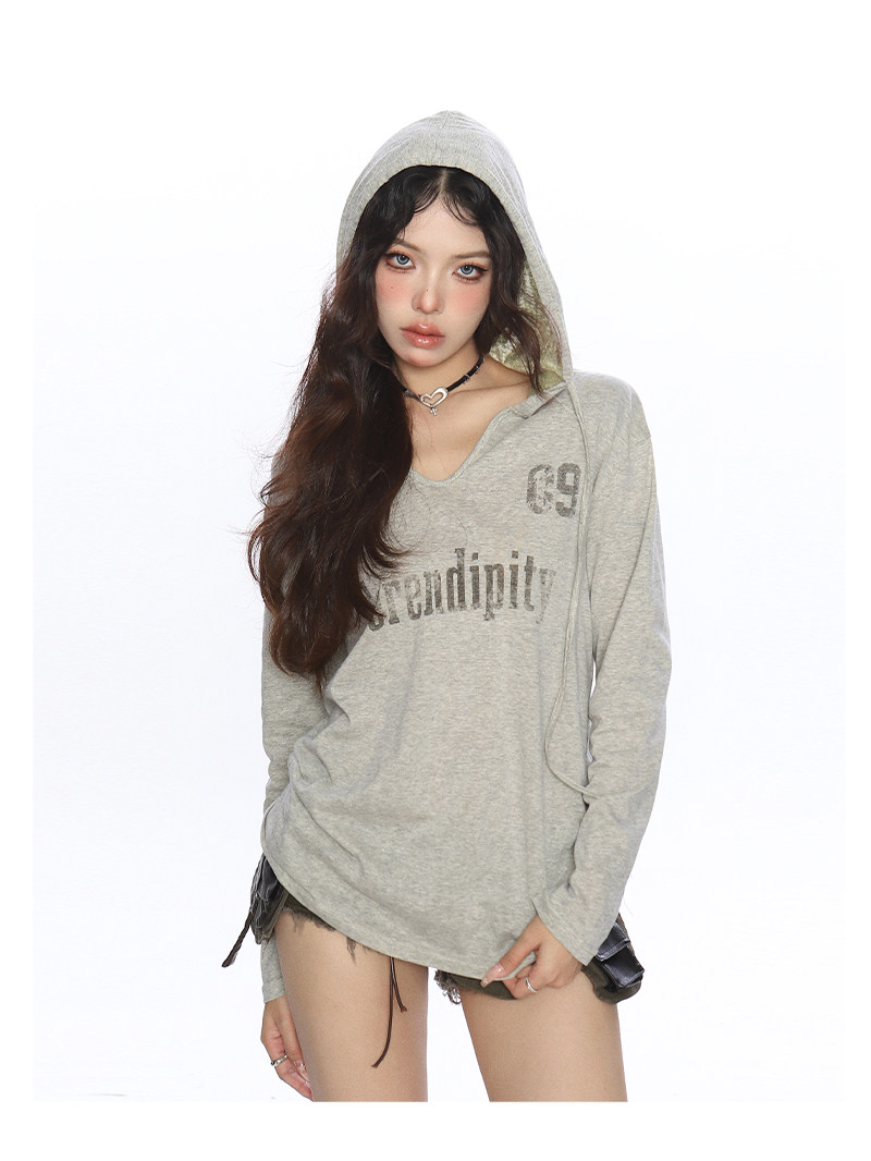 美式字母印花連帽長袖T恤女夏季慵懶風防曬罩衫辣妹上衣潮