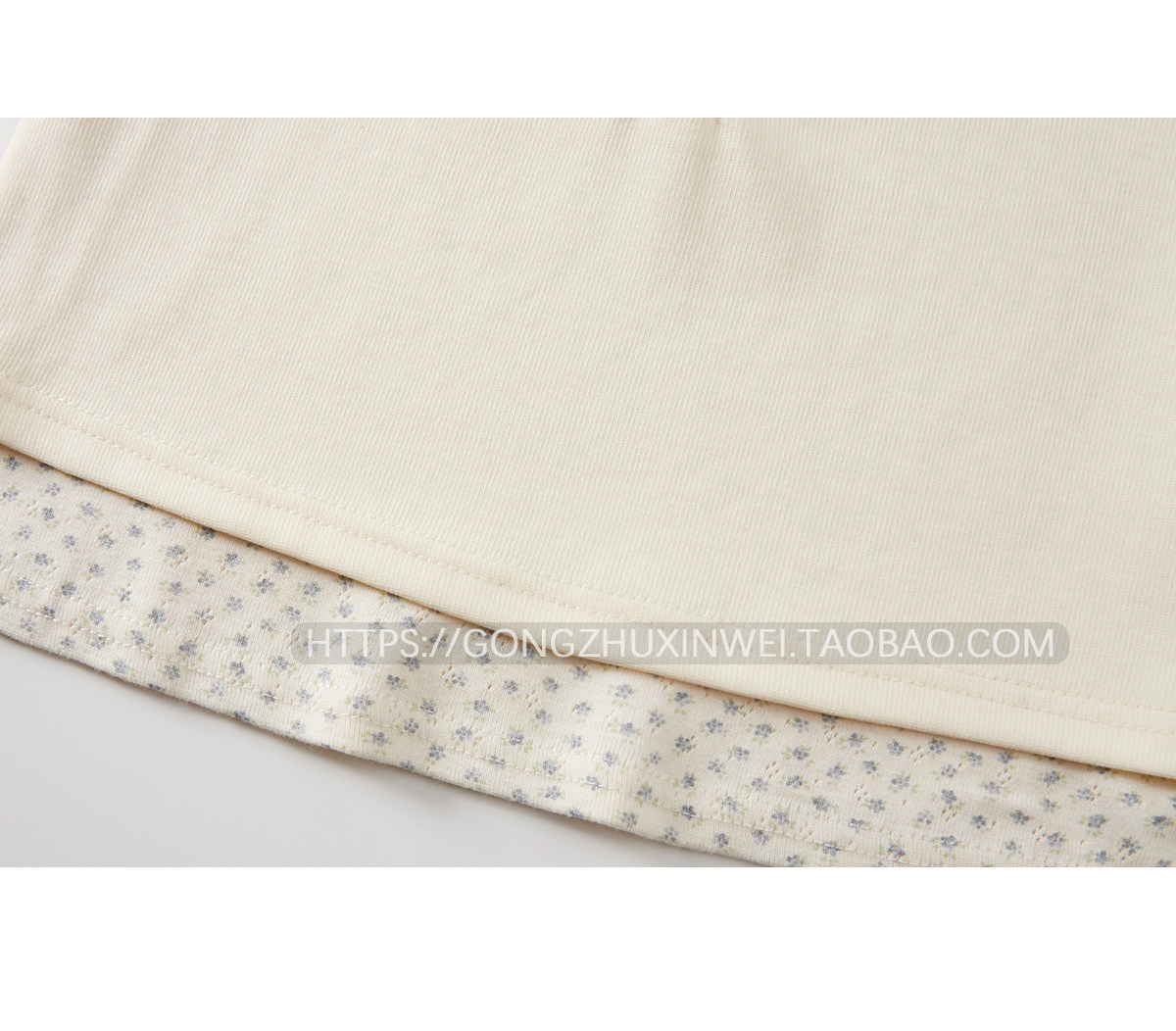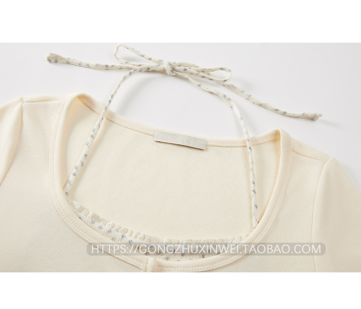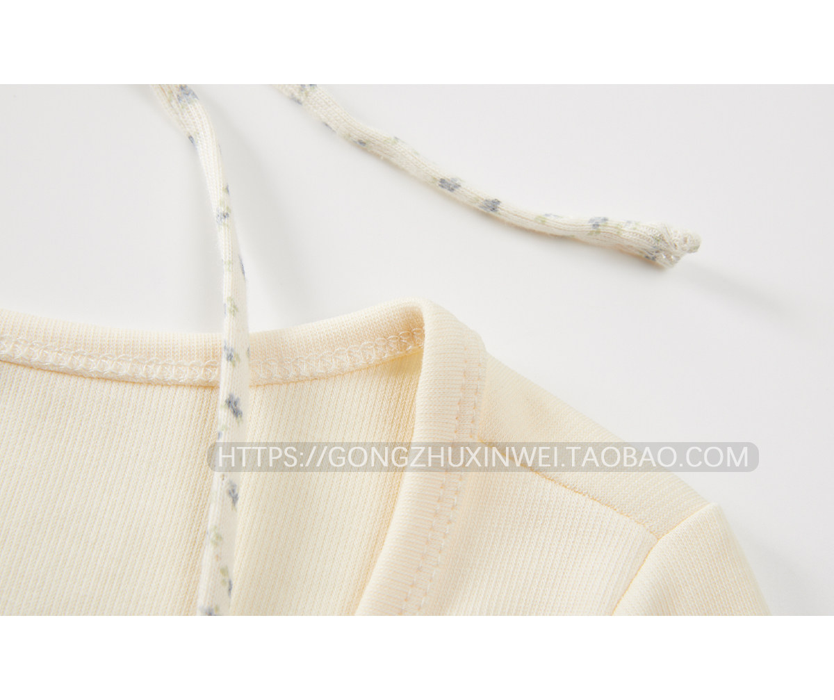 純欲甜辣假兩件拼接短袖掛脖T恤女夏季新款碎花U領短款上衣