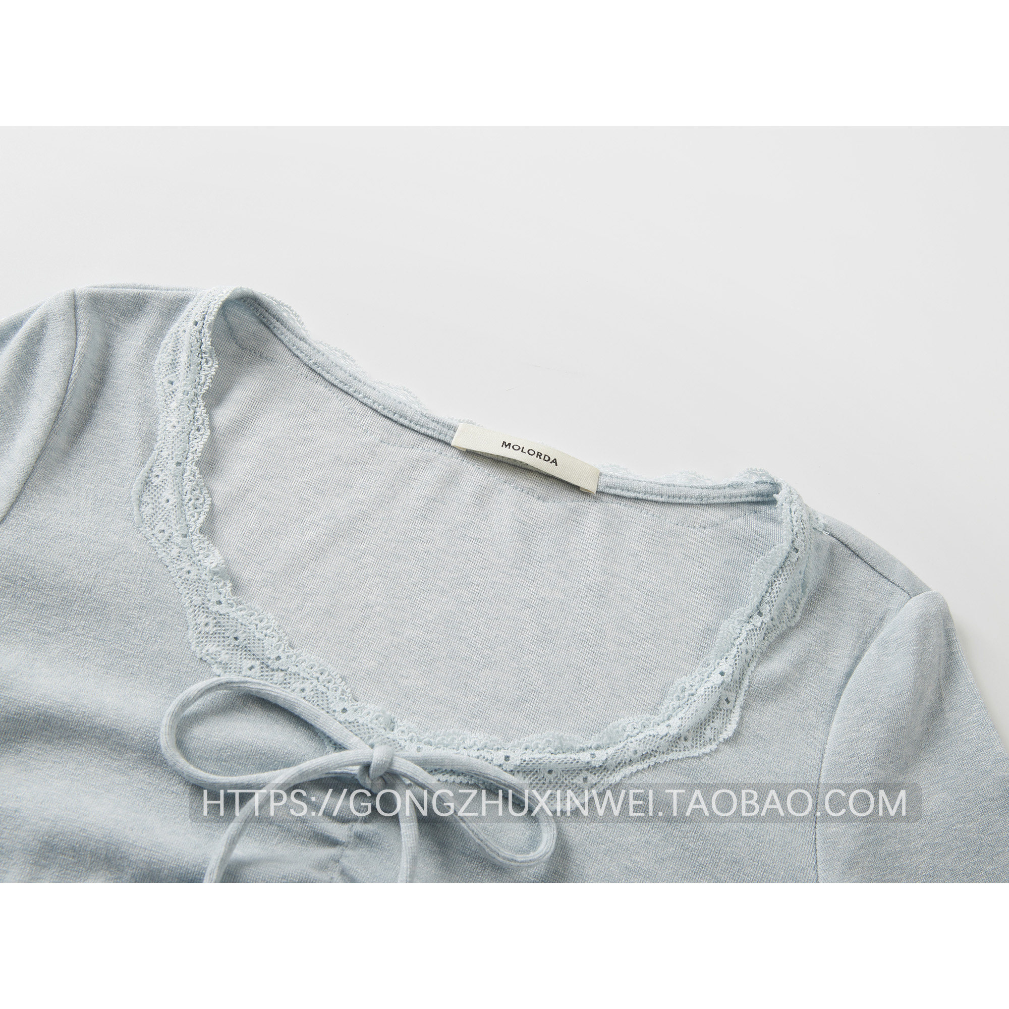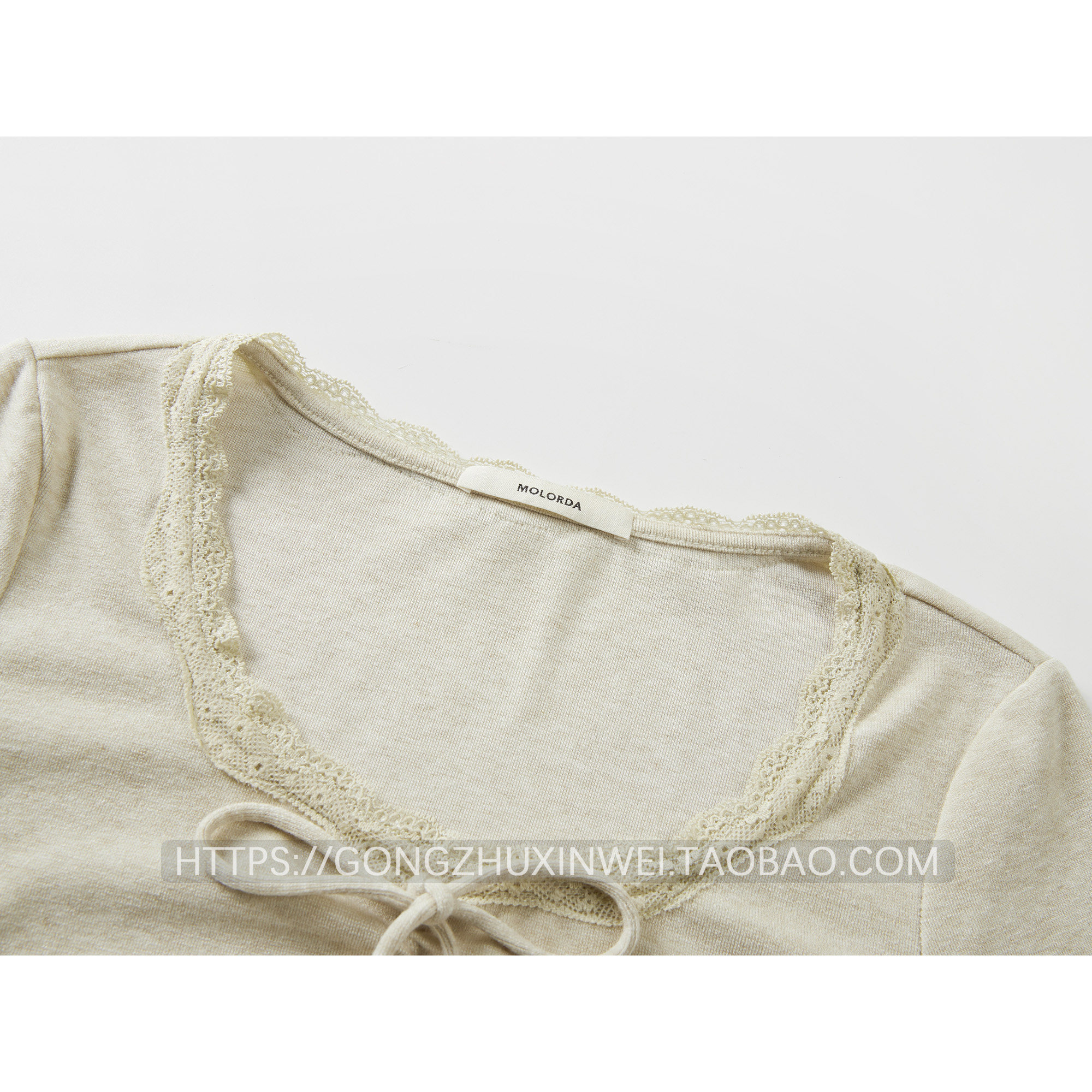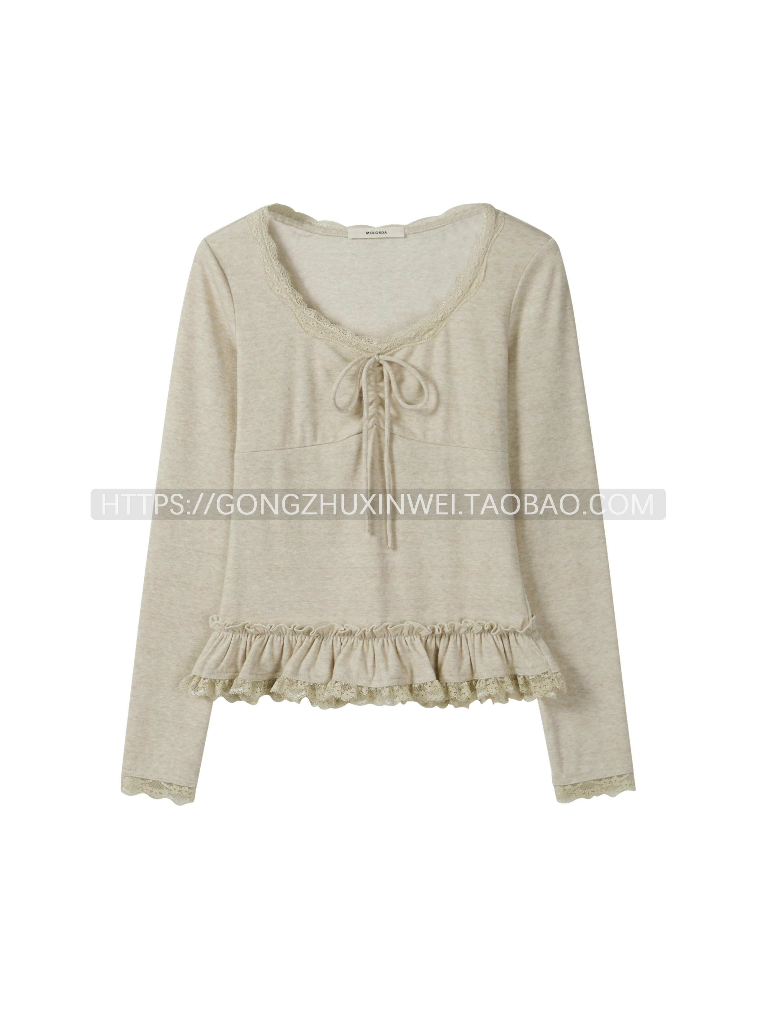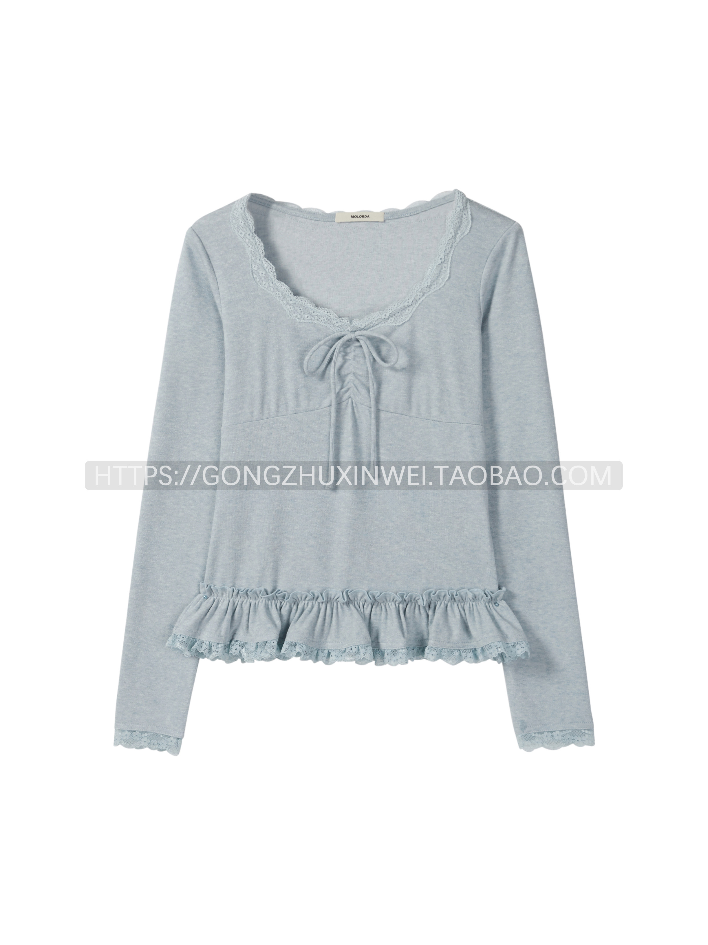 韓系甜美V領蕾絲系帶拼接長袖T恤女2025秋季新款休閑百搭打底衫
