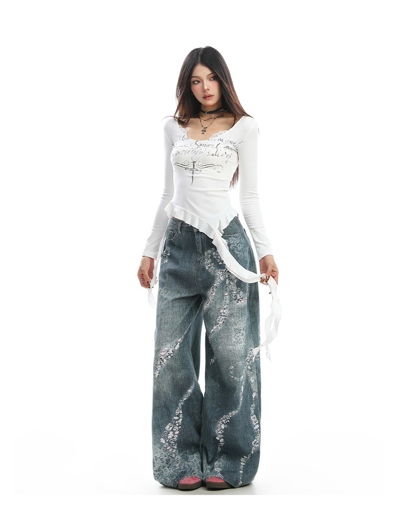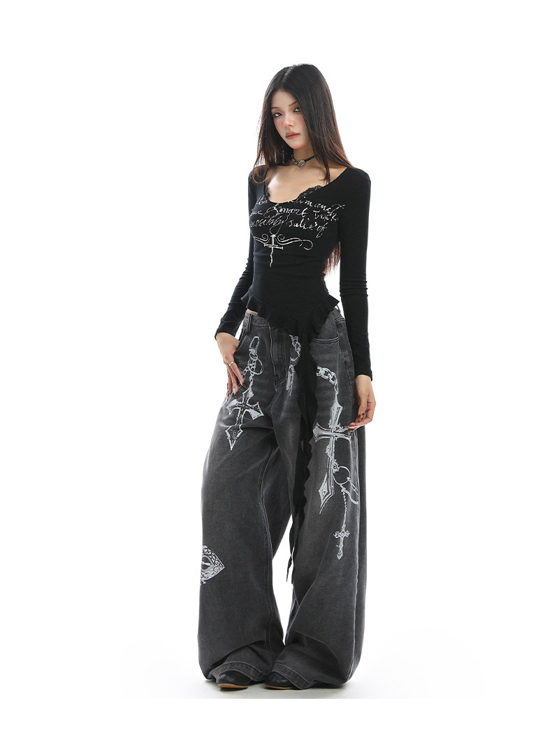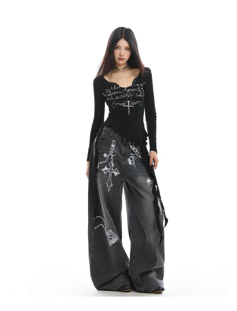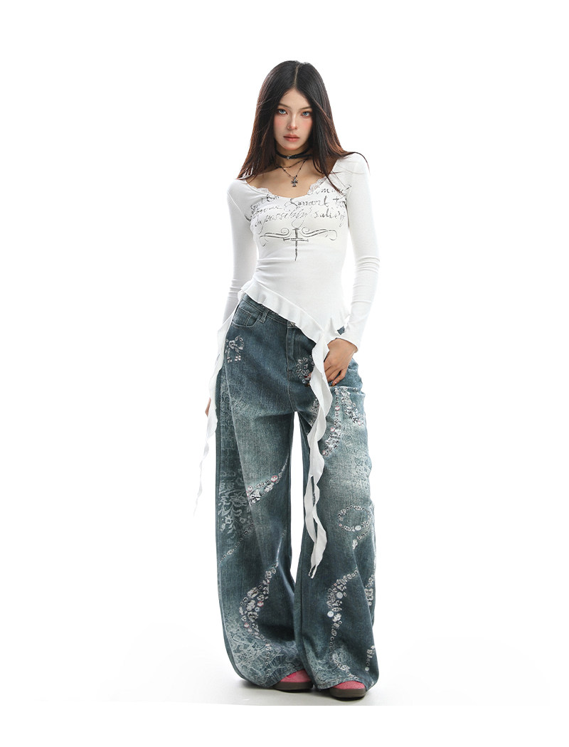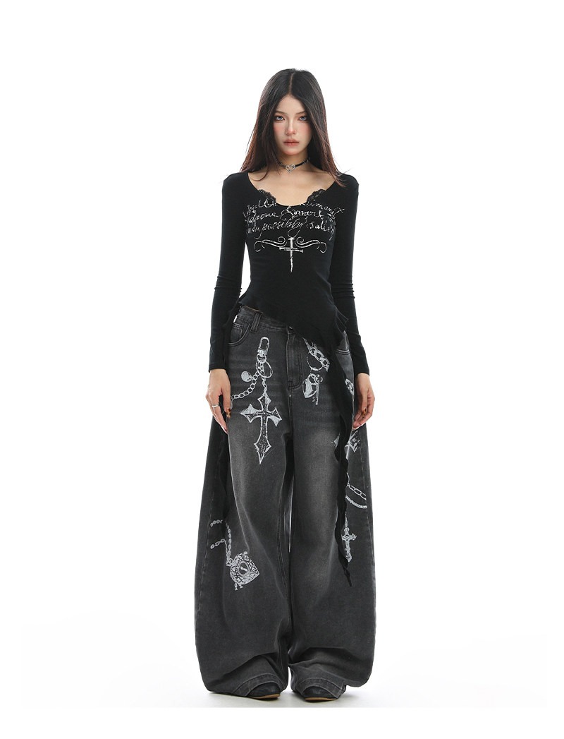 不規則設計感v領蕾絲邊長袖T恤女秋季辣妹顯瘦內搭上衣潮